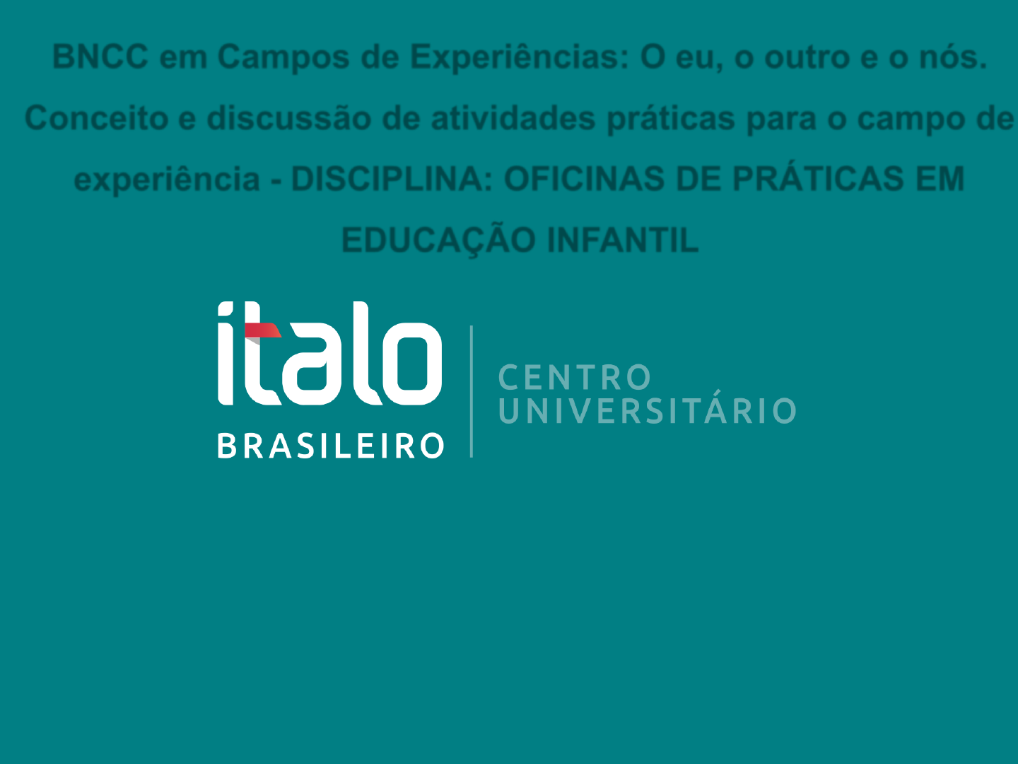 BNCC em Campos de Experiências: O eu, o outro e o nós. Conceito e discussão de atividades práticas para o campo de experiência - DISCIPLINA: OFICINAS DE PRÁTICAS EM EDUCAÇÃO INFANTIL Professora Especialista Eugenia Hatsue Kato eugenia.kato@italo.edu.br “A Base Nacional Comum Curricular (BNCC) é um documento de caráter normativo que define o conjunto orgânico e progressivo de aprendizagens essenciais que todos os alunos devem desenvolver ao longo das etapas e modalidades da Educação Básica, de modo a que tenham assegurados seus direitos de aprendizagem e desenvolvimento […]”. (BRASIL, 2017, p.7) Fonte: <http://basenacionalcomum.mec.gov.br/abase/> http://basenacionalcomum.mec.gov.br/a-base Na Educação Infantil está na definição de seis direitos fundamentais para as crianças de 0 a 5 anos: 1.conviver; 2.brincar; 3.participar; 4.explorar; 5.expressar; 6.conhecer-se. •Textos introdutórios (geral, por etapa e por área); •Competências gerais que os alunos devem desenvolver ao longo de todas as etapas da Educação Básica; •Competências específicas de cada área do conhecimento e dos componentes curriculares; •Direitos de Aprendizagem ou Habilidades relativas a diversos objetos de conhecimento (conteúdos, conceitos e processos) que os alunos devem desenvolver em cada etapa da Educação Básica (da Educação Infantil ao Ensino Médio). O primeiro Campo de Experiência proposto pela Base Nacional Comum Curricular: “O eu, o outro e o nós”. O processo de convivência faz a criança se diferenciar do restante do mundo e a importância do eu e do outro para formar o nós enquanto cultura Fonte: <http://www.sme.goiania.go.gov.br/dcgyn/wp-content/uploads/2019/03/2-1-o-eu-o-outro-e-o-nos.pdf> A Base entende uma competência como mobilização de conhecimentos, habilidades, atitudes e valores para que o estudante esteja apto para resolver as demandas do cotidiano, do exercício da cidadania e do mundo do trabalho. Ou seja, é por meio da competência que os estudantes desenvolvem plenamente as habilidades e aprendizagens essenciais estipuladas pela BNCC. Dessa forma, as competências indicam à escola e ao estudante O QUE deve ser aprendido e COM QUE FINALIDADE a competência deve ser desenvolvida. • CONHECIMENTOS (saberes) • HABILIDADES (saber-fazer relacionado à prática do trabalho mental) • ATITUDES (saber- ser- aspectos éticos, cooperação, solidariedade, participação) De acordo com a BNCC, as habilidades são as aptidões desenvolvidas pelo estudante ao longo da vida escolar e que são essenciais para que ele desenvolva tanto as competências gerais, como as específicas. HABILIDADES - Associadas ao saber fazer: ação física ou mental que indica a capacidade adquirida. Exemplos: identificar variáveis; compreender fenômenos; relacionar informações; analisar situações problema, sintetizar . julgar e correlacionar. As habilidades devem ser desenvolvidas na busca das competências De acordo com o exemplo, o código EI02TS01 diz respeito ao primeiro objetivo proposto no campo de experiências “Traços, sons, cores e formas” para o grupo das crianças bem pequenas. Portanto, as crianças deste grupo etário devem desenvolver a habilidade de “Criar sons com materiais, objetos e instrumentos musicais para acompanhar diversos ritmos de música”, entre diversas outras. Campos de Experiências - Efetivando direitos e aprendizagens na Educação Infantil <https://issuu.com/fmcsv/docs/campos- experiencias-direitos-aprend> Para crianças que possuem a idade acima mencionada, são propostos os seguintes objetivos de aprendizado e desenvolvimento: •Perceber que suas ações têm efeitos nas outras crianças e nos adultos, as possibilidades e os limites de seu corpo nas brincadeiras e interações; Interagir com crianças da mesma faixa etária e adultos; •Reconhecer as sensações de seu corpo em momentos de alimentação, higiene, brincadeira e descanso; •Construir formas de interação com outras crianças da mesma faixa etária e adultos, adaptando-se ao convívio social; •Demonstrar sentimentos de afeição pelas pessoas com as quais interage; •Desenvolver confiança em si, em seus pares e nos adultos em situações de interação. Para estes fins, podem-se realizar atividades que estimulem a interação com outras crianças e também com adultos, priorizando a autoconfiança e confianças em terceiros. Alguns exemplos são atividades em conjunto na brinquedoteca, dinâmicas ao ar livre com outras pessoas e estímulos sensoriais por meio de diferentes objetos, materiais e até mesmo por meio da música. Neste grupo, os objetivos educacionais estão focados em estimular e desenvolver os aspectos a seguir: Demonstrar atitudes de cuidado e solidariedade na interação com crianças e adultos, além de uma imagem positiva de si e confiança em sua capacidade para enfrentar dificuldades e desafios; Compartilhar os objetos e os espaços com crianças da mesma faixa etária e adultos; Comunicar-se com os colegas e os adultos, buscando compreendê-los e fazendo-se compreender; Habituar-se a práticas de cuidado com o corpo, desenvolvendo noções de bem-estar; Respeitar regras básicas de convívio social nas interações e brincadeiras; Valorizar a diversidade ao participar de situações de convívio com diferenças; Resolver conflitos nas interações e brincadeiras, com a orientação de um adulto. Algumas dicas para trabalhar as habilidades propostas incluem o aprendizado necessário para ter autonomia em pequenas tarefas, como se alimentar, lavar as mãos e vestir a própria roupa. A criança também precisa ser incentiva a verbalizar os seus sentimentos e resolver conflitos de maneira pacífica com o auxílio de um adulto. O educador também deve estimular a troca de brinquedos entre os alunos, contar histórias cujas narrativas são diversas da realidade em que ela está inserida, além de promover atividades artísticas como d
