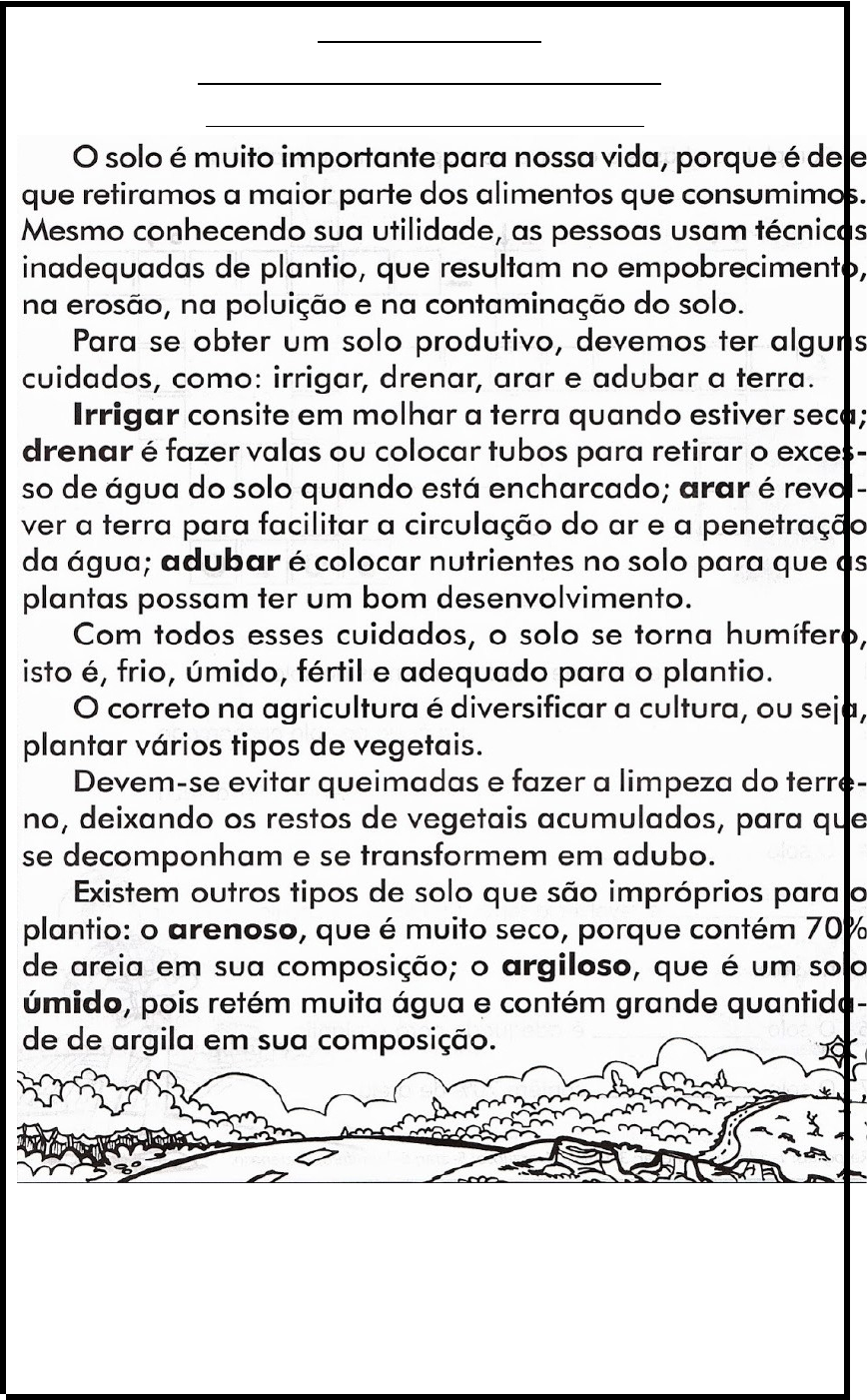 Tipos de solo. Solo produtivo e improdutivo. Irrigar, adubar, drenar e arar.