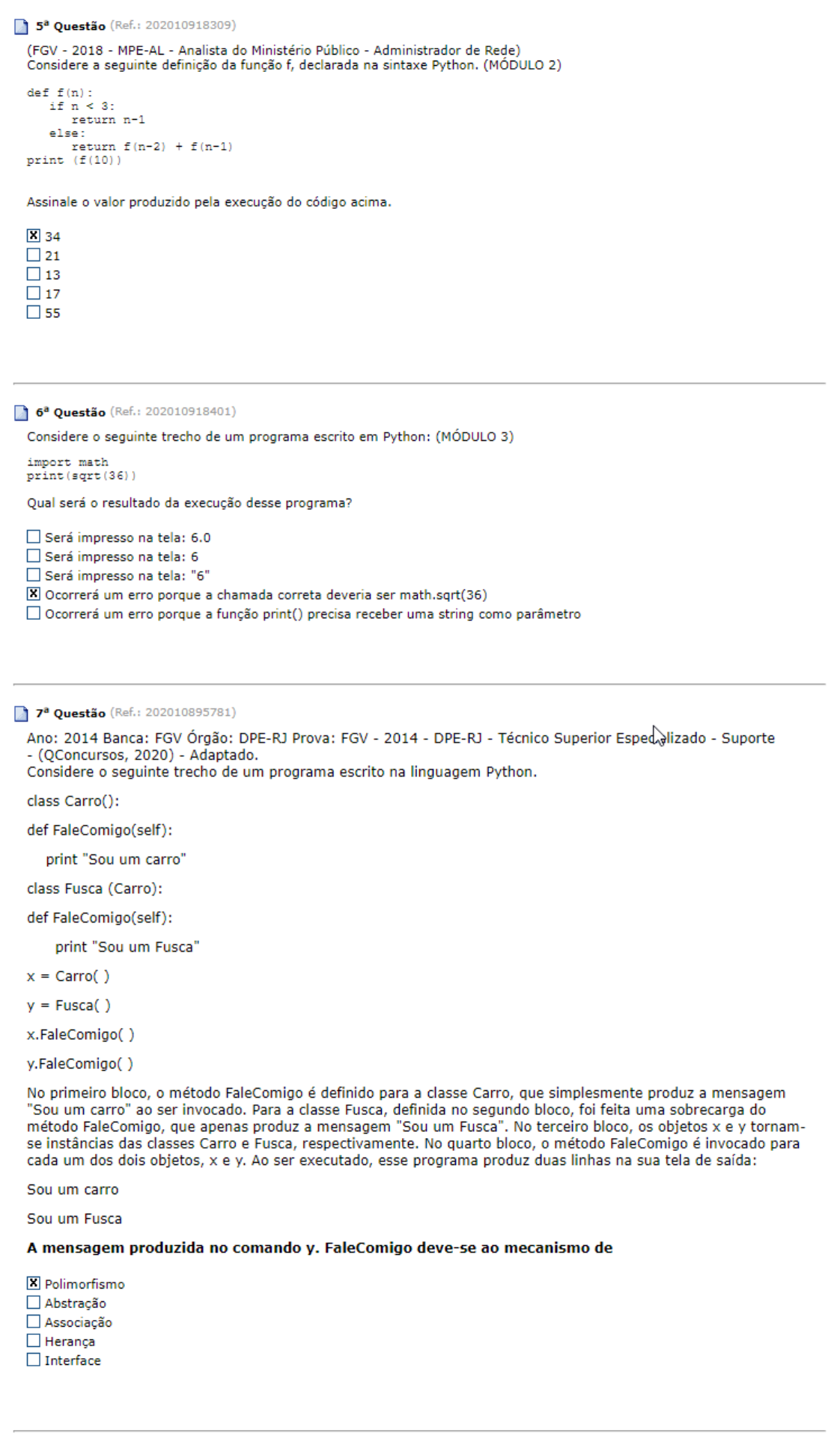 Considere o seguinte trecho de um programa escrito em Python: {MÓDULO 3)