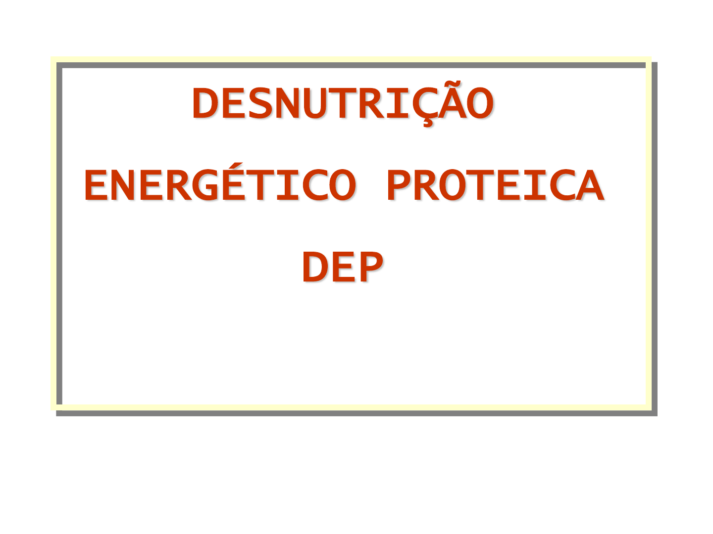 DESNUTRIÇÃO ENERGÉTICO PROTEICA DEP “Desequilíbrio entre o suprimento de nutrientes e de energia e a demanda do organismo para assegurar sua manutenção, seu crescimento e suas funções metabólicas” (Sarni & Souza, 2014) É uma doença de natureza clínico-social, multifatorial, cujas raízes se encontram na pobreza¨ (BRASIL, 2005). Evolução de indicadores na população de 10-19 anos de idade, por sexo – Brasil – períodos 1974-75, 1989, 2002-2003 e 2008- 2009 DEP PRIMÁRIA (origem nutricional) • Ingestão deficiente de energia (inferior às necessidades) • Não há outra doença associada (relacionada à insegurança nutricional) DEP SECUNDÁRIA • Quando há doença relacionada (geralmente por baixa ou inadequada ingestão alimentar; por alteração na absorção ou por necessidades aumentadas e/ou perdas aumentadas de nutrientes. • Ex: DEP associada a cardiopatias congênitas, doença celíaca ou SIDA FORMA CLÍNICA • Indivíduos emagrecidos (wasted) e / ou com parada do crescimento (stunted), conforme figura abaixo: DEP MODERADA E GRAVE DEP GRAVE: MARASMO Parada de crescimento - comum em lactentes - perda marcante de tecido adiposo subcutâneo - perda marcante de tecido muscular (atrofia) Pode apresentar: abdome globoso cabelo fino e escasso, quebradiço e às vezes descolorido. A criança é irritadiça e apática DEP GRAVE: KWASHIORKOR Lesões típicas de pele: lesões hipo e hipercrômicas, com descamação Cabelos: descoloridos e facilidade em soltar do couro cabeludo Apatia ou irritabilidade, anorexia, edema de face, presente em > 2 anos, hipoalbuminemia, ascite, hepatomegalia (esteatose) fígado aumentado e gorduroso, estresse oxidativo com aumento da permeabilidade endotelial por ação de radicais livres circulantes. DEP GRAVE: KWASHIORKOR KWASHIORKOR Descrito por Williams, em 1933, que se passou a reconhecer o quadro como desnutrição. A etimologia da palavra, na língua de Ghana, significa “doença do primogênito, quando nasce o segundo filho”. DEP GRAVE: KWASHIORKOR versus MARASMO KWASHIORKOR: acomete crianças acima de 2 anos; caracteriza- se por alterações na pele (lesões hipercrômicas, hipocrômicas ou descamativas); acometimento de cabelos (textura, coloração, facilidade de soltar o couro cabeludo; hepatomegalia (esteatose); ascite, face de lua, edema de membros inferiores e/ou anasarca e apatia. MARASMO: acomete crianças menores de 12 meses, com emagrecimento acentuado, baixa atividade, irritabilidade, atrofia muscular e subcutânea, com desaparecimento da bola de Bichat (último depósito de gordura a ser consumido, localizado na região malar), o que favorece o aspecto envelhecido, com costelas visíveis e nádegas hipotróficas. O abdome pode ser globoso e raramente com hepatomegalia. DIAGNÓSTICO Fome por escassez de recursos econômicos (p.ex, região Nordeste e alguns bolsões de pobreza das grandes cidades): prevalecem as formas graves tipo marasmo. Riqueza de recursos naturais (fauna e flora – como na região Norte, Amazônia), mas com desconhecimento da oferta adequada de alimentos regionais disponíveis para as crianças. Práticas inadequadas: oferta de mingaus contendo apenas água e farinha, pobres em proteínas e micronutrientes (insegurança alimentar): prevalecem as formas graves tipo Kwashiorkor. Deficiência de micronutrientes: fome oculta. AVALIAÇÃO NUTRICIONAL Medidas antropométricas: Peso atual: pode não representar o peso real na presença de edema, desidratação, tumores sólidos, visceromegalias volumosas, etc. Nesses casos, pode-se optar pelo peso usual ou peso mais recente, anterior a essas alterações. Crianças internadas: pesar pelo menos três vezes por semana Altura: reflete o estado nutricional atual e pregresso e o seu comprometimento indica agravo crônico. A recuperação pode ser completa quando a correção ocorre até os primeiros anos de vida. Aferir 1x/sem Até dois anos de idade: posição deitada Após dois anos de idade: posição supina Perímetro cefálico: medir até os 3 anos de idade Dobras cutâneas e circunferência do braço: Circunferência do braço: (CB) representa o perímetro ocupado pelos tecidos ósseo e muscular + adiposo. Circunferência muscular do braço: (CMB) avalia a massa muscular (reserva proteica). Dobras mais utilizadas: tricipital e a subescapular Valores de referências: tabelas de Frisancho (1-19 anos de idade) e OMS (0-5 anos de idade) Índices antropométricos Peso/idade: demonstra a situação global atual. Estatura/idade: analisa o crescimento linear, sendo afetado por agravos prolongado. Ou seja, define se a alteração nutricional é aguda ou crônica. Peso/estatura: indica harmonia do crescimento, sendo comprometido por agravos agudos. Local Manifestações físicas/clínicas Carências Cabelo Perda de brilho, seco, quebradiço Proteína, zinco Faces Seborreia nasolabial, edema de face Proteína, ferro e vitamina B2 Olhos Palidez conjuntival, xerose, blefarite Ferro, vitaminas A, B2 e B6 Lábios Estomatite angular, queilite Vitamina B2 Língua Glossite Vitamina B2, B3, folato e B12 Gengiva Sangramento Vitamina C Pele Xerose, petéquias, hiperceratose folicular Vitamina A,C, e K Unhas Coiloníquias, quebradiças Ferro Avaliação física/clínica nas carências nutricionais: Avaliação bioquímica: Hemograma completo Proteína C reativa (PCR) Proteína total e frações Cálcio, fósforo, potássio, magnésio e fosfatase alcalina Vitaminas / minerais Colesterol e frações Relacionados a função renal e hepática Pré albumina e proteína ligadora de retinol: apresentam maior sensibilidade para avaliação nutricional, porém são influenciadas pelas concentrações de vitamina A e zinco. Albumina e transferrina são proteínas que se alteram na fase aguda de agressões infecciosas, inflamatórias e traumáticas e devem ser acompanhadas pela dosagem de PCR como parâmetro da resposta inflamatória. • Pré-natal e puericultura ausentes ou i