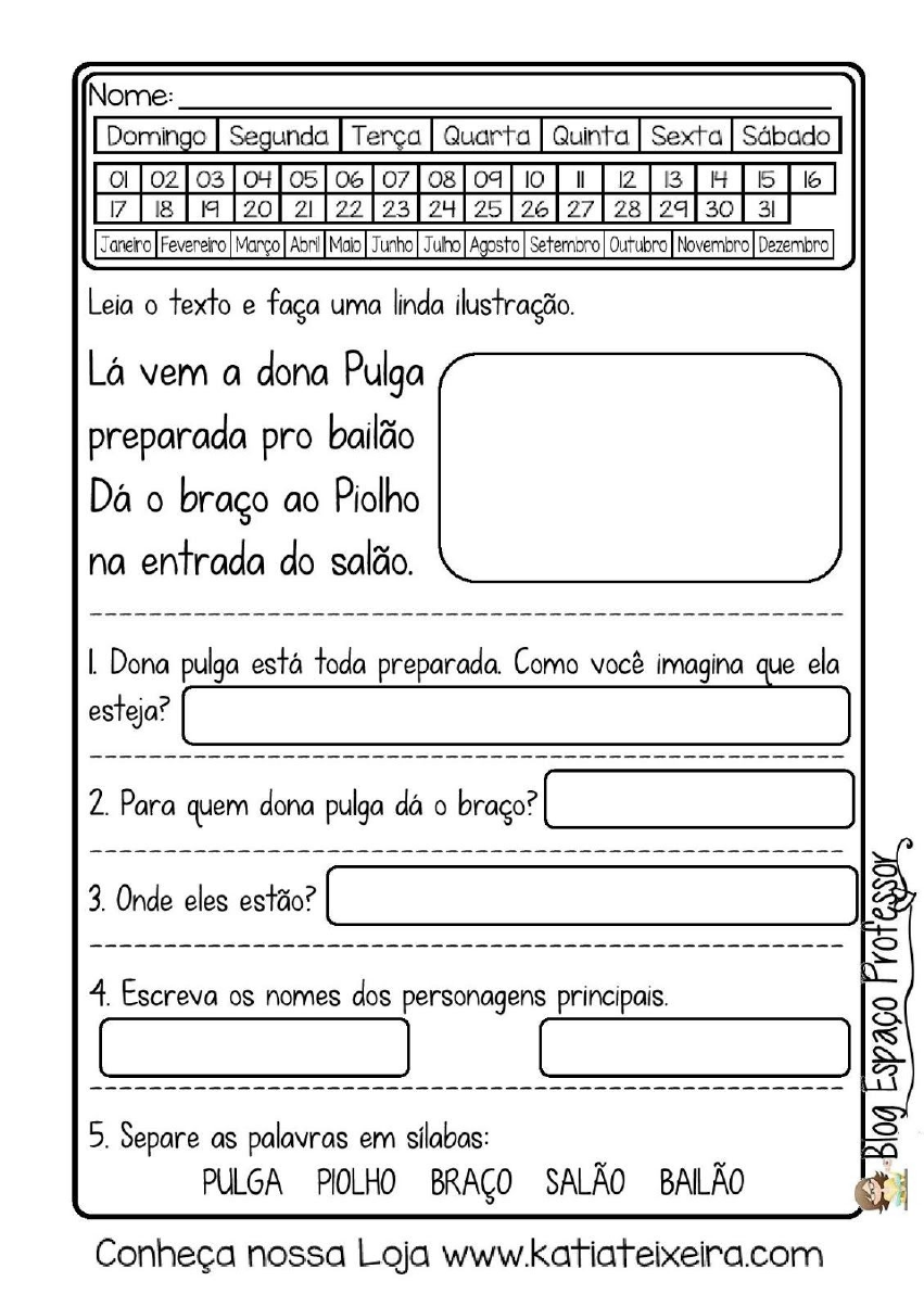 3ª QUESTÃO: CARLOS E ARTHUR ALÉM DE SE DIVERTIREM MUITO NA FEIRA NÃO ESQUECERAM DAS SUAS FRUTAS PREFERIDAS. FAÇA UMA LISTA DE NOMES DE FRUTAS QUE ELES COMPRARAM. 2ª QUESTÃO: 1- LIGUE-SE NO GRÁFICO JOÃO É O DONO DA BARRAQUINHA DE PASTEL NA FEIRA, OBSERVE NO GRÁFICO O NÚMERO DE PASTEL QUE ELE VENDEU EM UMA SEMANA E DEPOIS RESPONDA: A) QUANTOS SALGADOS JOÃO VENDEU NOS TRÊS PRIMEIROS DIAS DA SEMANA?_________________ B) QUE DIA DA SEMANA ELE VENDEU MAIS SALGADOS?______________________________________ C) QUANTOS SALGADOS ELE VENDEU NESSA SEMANA?______________________________________ D) SE ELE VENDESSE ESSE MESMO NÚMERO DESALGADOS EM DUAS SEMANAS, QUANTOS ELE VENDERIA?___________________________ E) SE NESSA SEMANA FOSSE FERIADO NA 4ª FEIRA, QUANTOS SALGADOS JOÃO VENDERIA?________________________________ 1ª QUESTÃO: TARDE DIVERTIDA CARLOS E ARTHUR FORAM COM SEUS PAIS À FEIRA. ELES TOMARAM SORVETE, COMERAM PASTEL E ANDARAM NA RODA GIGANTE. CARLOS FALOU PARA ARTHUR: _A TARDE NA FEIRA FOI DIVERTIDA. VAMOS ENTENDER O TEXTO, MARCANDO COM X A RESPOSTA CORRETA: 1) OS MENINOS FORAM À FEIRA (A) À NOITE (B) DOMINGO (C) À TARDE (D) PELA MANHÃ 2) QUAL SALGADO OS MENINOS COMERAM? (A) SORVETE (B) PASTEL (C) BATATA (D) AÇAÍ 3) A PALAVRA SORVETE POSSUI QUANTAS SÍLABAS? (A) 3 (B) 7 (C) 4 (D) 6