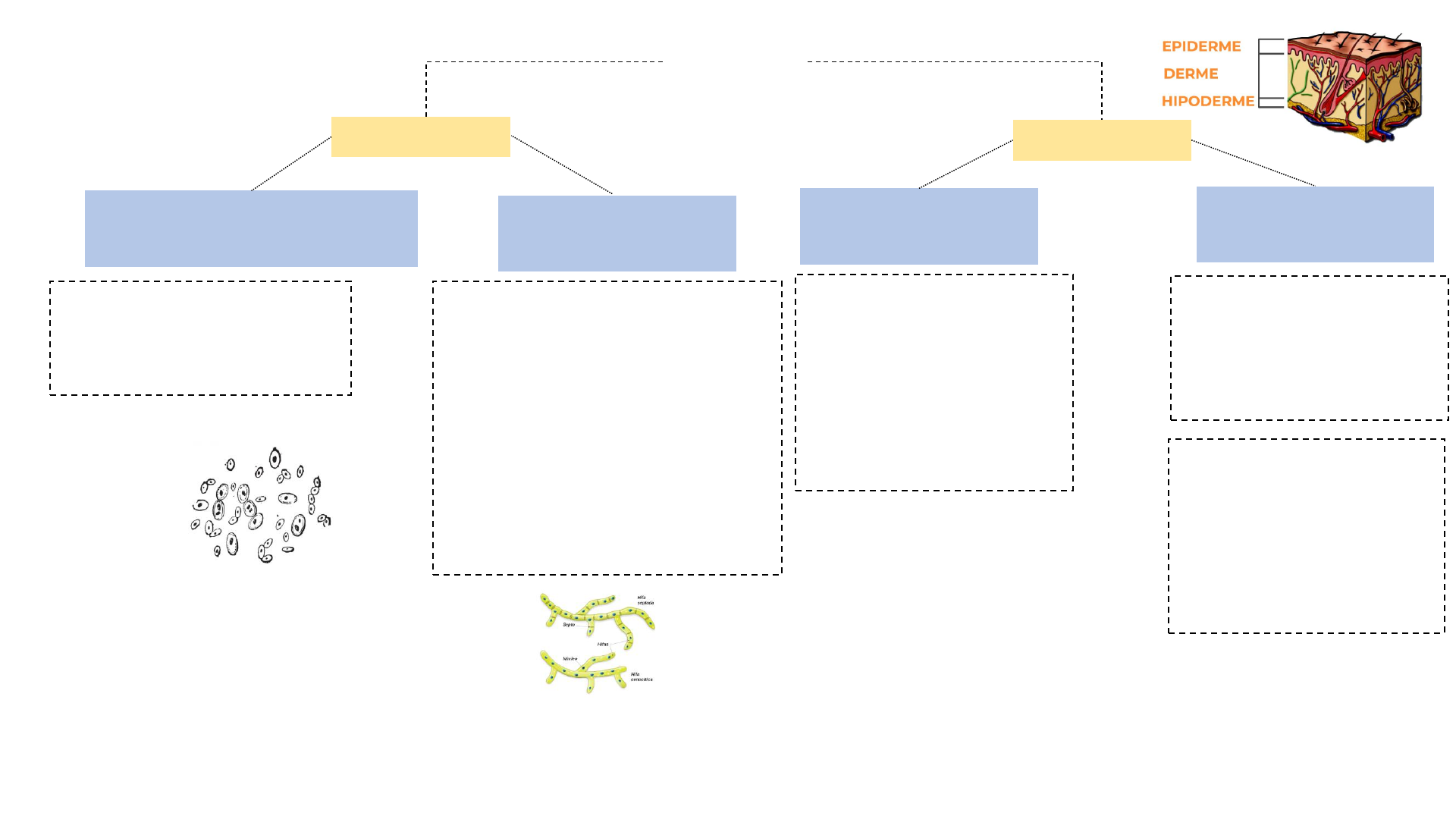 MICOSES SUPERFICIAIS PROPRIAMENTE DITAS SUPERFICIAIS CUTÂNEAS SUBCUTÂNEAS SISTÊMICAS 1. Ptíriase versicolor 2. Piedra Branca 3. Piedra Preta 4. Tinha negra 1. Tinha de couro cabeludo 2. Tinha da Barba 3. Tinha do corpo 4. Tinha Inguinocrural 5. Tinha da unha 6. Tinha do pé 7. Tinha da mão 8. Candidose: cutânes, unha (onicomicose, paroníquia)., oral, vaginal, sistêmica. 1. Esporotricose 2. Cromomicose 3. Eumicetoma 4. Doença de Jorge Lobo 5. Entomoftoromicose 6. Feo-Hifomicose 7. Hialo-Hifomicose 8. Micetoma SUPERFICIAIS PROFUNDAS 1. Paracoccidiomicose 2. Histoplamose 3. Blastomicose 4. Coccidioidomicose 5. Esporotricose Fungos Oportunistas 1. Criptococose 2. Candidíase 3. Mucormicose 4. Feo-hifomicoese 5. Hialo-Hifomicose Ceratofitoses = proliferam-se na camada córnea da pela e sobre hastes dos pêlos. Não causam resposta inflamatória significativa Dermatofitoses = Invadem a camada córnea (queratinofílicos) → resposta inflamatória Fungos (solo/plantas) por via transepidémirca se depositam no subcutâneo Lesão papulosa/nodulosa → abceder e ulcerar Leveduriformes Fungos unicelulares, que se reproduzem por brotamento e causam as micoses. Filamentosos Hifas multicelulares, que se reproduzem por meio de esporos e causam as micoses superficiais. Este tipo de fungo está espalhando pelo ambiente, como: cogumelo comestíveis. MAISSA TORRES
