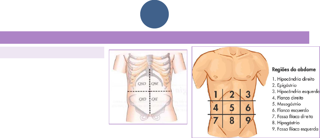 SEMIOLOGIA EM CLÍNICA MÉDICA II 1 AULA 5 - SEMIOLOGIA ABDOMINAL II (DRA ISABELA) EXAME FÍSICO ABDOMINAL: Sequência do exame: 1. Inspeção 2. Ausculta 3. Percussão 4. Palpação Parâmetros anatômicos: saber descrever regiões. No quadrante superior direito (QSD) do abdome: Órgãos presentes na região: o Percepção da consistência amolecida do fígado, através da palpação da borda inferior na altura do rebordo costal direito. o Vesícula biliar e duodeno não são comumente palpáveis o Em um nível mais profundo pode ser percebido o polo inferior do rim direito, especialmente em pessoas magras com a musculatura abdominal relaxada. o Aorta abdominal geralmente apresenta pulsações visíveis - parte superior do abdome. No quadrante superior esquerdo (QSE) do abdome: Órgãos presentes na região: o Baço situa-se lateral e posteriormente ao estomago, recoberto pela 9, 10 e a 11 costela. Normalmente não é palpável. o O pâncreas é impalpável nos indivíduos hígidos. No quadrante inferior direito (QID) do abdome: Localizam-se as alças intestinais e o apêndice, na cauda do ceco, próximo à junção do intestino delgado com o intestino grosso. Estes órgãos não são palpáveis nos indivíduos hígidos. No quadrante inferior esquerdo (QIE) do abdome: Ao palpar perceber o firme, estreito e tubular colo sigmoide. Algumas porções do colo ascendente e do colo transverso também são palpáveis. Na parte inferior da linha média encontram-se a bexiga, o promontório da base do sacro, e nas mulheres o útero e os ovários. INSPEÇÃO: Estática: o Paciente posições ortostática (evidencia hérnias e abaulamentos) e decúbito dorsal. o Tipos de abdome o Abaulamentos, retrações, cicatrizes o Pele e anexos o Turgência venosa Dinâmica: o Hérnias (importância da inspiração e expiração forçada) – Manobra de valsala** o Respiração o Movimentos peristálticos o Pulsações (ex: dilatação aneurismática) A presença de peristaltismos visíveis em região mesogástrica no indivíduo magro com abdome flácido pode ser normal. Um abdome rígido + peristaltismo visível (ondas de Kussmaul) indicativo de OBSTRUÇÃO! Chamado de Síndrome de Koenig ou tumor fantasma – assistir vídeo do slide!! SEMIOLOGIA EM CLÍNICA MÉDICA II 2 AVALIAÇÃO DOS TIPOS DE ABDOMENS PRETUBERANTES: CICATRIZES ABDOMINAIS: Cicatriz de Kocher - associado com cirurgia de vesícula, esta localizada na região subcostal direita, geralmente resultante de uma colecistectomia. Cicatriz epigástrica mediana Cicatriz de McBurney – geralmente devida a apendicectomia. Cicatriz de flanco esquerdo – associada a cirurgias renais. Cicatriz paramediana esquerda Hipogástrica mediana – associada a histerectomia. Cicatriz de Pfannenstiel – em geral utilizada como corte cesariano Inguinal esquerda – típica de reparo de hérnia ABAULAMENTOS: Hérnias: o Umbilical – na região do umbigo (criança normalmente fecha – no adulto é caso cirúrgico) o Incisional – normalmente pós cirúrgicos o Epigastrica – abaulamento que aparece devido a abaulamento/fraqueza da linha Alba o Diastase – uma fraqueza da linha Alba por completo, ao se forçar o abdômen há a evidencia da linha media por completo. Pode ser pós gestacional. o Lipoma – pode aparecer em toda região abdominal, são nódulos elásticos. SEMIOLOGIA EM CLÍNICA MÉDICA II 3 AUSCULTA: Deve ocorrer em um ambiente tranquilo e num período de dois minutos, é recomendado que se faça em todos os quadrantes e se comece a ausculta na fossa ilíaca direita (devido a ser uma região de alta concentração de ruídos hidroaéreos). Recomenda-se executar a ausculta antes da palpação para evitar aumento involuntário do peristaltismo. Em patologias pode ser que se escute sopros – Ex: Aneurismas o Artéria aorta o Artéria renal o Artéria ilíaca o Artéria femoral PERCUSSÃO: Deve-se percutir todos os quadrantes (preferencialmente nesta ordem QID QIE QSE QSD) de acordo com a distribuição dos gases. Será observado o som timpânico em quase todo abdômen, com exceção do hipocôndrio direito que deve ser maciço por conta do fígado. Se o hipocôndrio direito esta timpânico – Sinal de Jobert: A presença de timpanismo na região da linha hemiclavicular direita onde normalmente se encontra macicez hepática, caracteriza pneumoperitônio. Espaço de Traube: Espaço semilunar do sexto ao décimo primeiro espaços intercostais, tendo como limites: gradeado costal, baço, pâncreas, cólon, rim e estômago. Normalmente quando percutido apresenta timpanismo. PALPAÇÃO: Superficial – feita com a mão fechada e espalmanda sobre o abdômen fazendo com movimentos circulares, buscando maças estranha e dor; Profunda (técnica deslizante) – mão espalmada sobre a outra, comprimir e deslizar, delimita órgão, pulsações e possíveis massas estranhas Manobras especiais o Descompressão brusca ou Sinal de Blumberg: Presença de peritonite provoca dor tanto à compressão quanto à descompressão podendo ser, por vezes, mais desconfortável à descompressão. Órgãos que só são palpados em condições patológicas: o Bexiga o Apêndice cecal SEMIOLOGIA EM CLÍNICA MÉDICA II 4 o Vesícula biliar o Flexuras do cólon o Delgado o Baço FIGADO: Percussão da amplitude hepática (hepatimetria) – Deve ser feita na linha hemiclavicular, primeiro faz-se a percussão na direção umbigo-mamilo, na qual será delimita a parte interior do fígado, no inicio do som maciço próximo ao rebordo costal. E depois a percussão na direção mamilo-umbigo, delimitando a parte superior no fígado. o Palpação o Técnicas o Posições Percussão dígito-digital intensamente dolorosa, localizada e circunscrita consiste em o Sinal de Torres-Homem, característico de abscesso hepático. – infecção purulenta dentro do fígado, o que distende a capsula hepática e gera dor a digito pressão. Tecnica de palpação de Lemos – Torres o A borda inferior do 