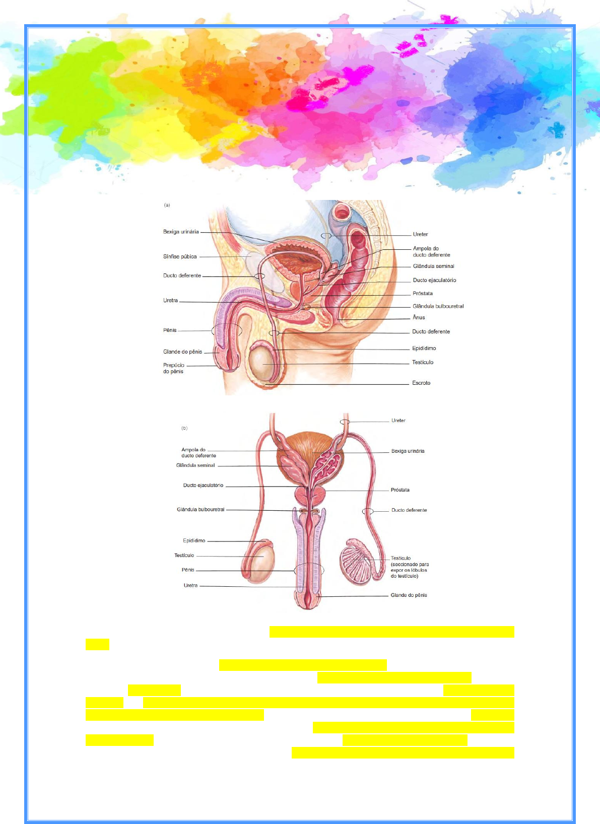 PRÓSTATA A próstata é firme, do tamanho e da forma de uma castanha. Tem aproximadamente 4 cm de largura e 3 cm de espessura, encontra-se imediatamente debaixo da bexiga urinária onde envolve a porção inicial da uretra. A próstata é recoberta por uma cápsula fibrosa e está dividida em lobos formados pela uretra e ductos ejaculatórios que se estendem através da glândula. Os ductos dos lobos se abrem na uretra. Extensos feixes de músculo liso situam-se ao longo da próstata para formar uma malha que sustenta o tecido glandular. A contração do músculo liso expele o conteúdo da glândula e fornece parte da força de propulsão necessária à ejaculação do sêmen. A fina secreção prostática da cor de leite ajuda a motilidade dos espermatozóides como agente de liquefação, e sua alcalinidade protege o esperma em sua passagem pelo meio ácido da vagina da mulher. Ramos viscerais das artérias retais média e inferior suprem a próstata com sangue. O retorno venoso forma o plexo venoso prostático, juntamente com sangue que drena o pênis. O plexo prostático drena nas veias ilíacas internas. A próstata tem inervação simpática e parassimpática originária do plexo pélvico. ANOTAÇÃO: AGORA É SUA VEZ DE PRATICAR ;) HISTOLOGIA A próstata é um conjunto de 30 a 50 glândulas tubuloalveolares ramificadas que envolvem uma porção da uretra chamada uretra prostática. A próstata tem três zonas distintas: a zona central (cerca de 25% do volume da glândula), a zona de transição e a zona periférica (cerca de 70% da glândula); seus ductos desembocam na uretra prostática. As glândulas tubuloalveolares da próstata são formadas por um epitélio cuboide alto ou pseudoestratificado colunar. Um estroma fibromuscular cerca as glândulas. A próstata é envolvida por uma cápsula fibroelástica rica em músculo liso. Septos dessa cápsula penetram a glândula e a dividem em lóbulos. As glândulas produzem secreção e a armazenam para expulsá-la durante a ejaculação. Da mesma maneira como a vesícula seminal, a estrutura e a função da próstata são reguladas por testosterona. Pequenos corpos esféricos formados por glicoproteínas, medindo 0,2 a 2 mm de diâmetro e frequentemente calcificados, são frequentemente observados no lúmen de glândulas da próstata de adultos. Eles são chamados concreções prostáticas ou corpora amylacea. Sua quantidade aumenta com a idade, porém seu significado não é conhecido. ANOTAÇÕES