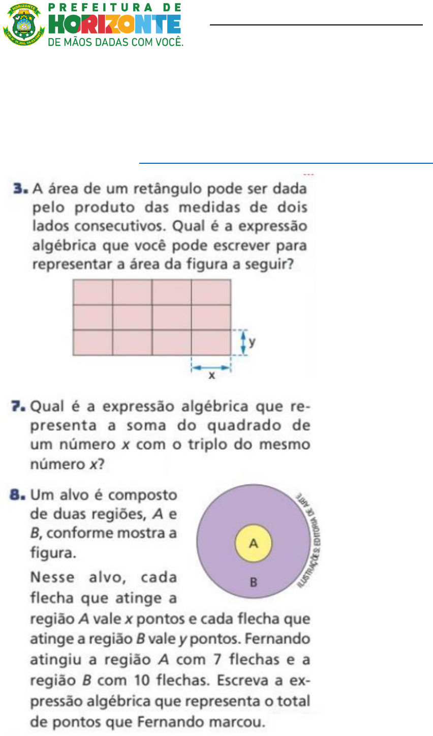 >>>>>>>>>>>>>>>>>>>>>>>>>>>>>>>>>>>>>>>>>>>>>>>>>>>>>>>>>>>>>>>>>>>>>>>>>>>>>>>>>>>>>>>>>>>>>>> ASSUNTO: Expressões Algébricas ou Literais CONTEÚDO DO LIVRO: Págs. 100/101 VÍDEO DE REFERÊNCIA: https://www.youtube.com/watch?v=jeSzueecH0Q ATIVIDADE 07 – 2º SEMESTRE/2021 – 8º ANO LIVRO: A CONQUISTA DA MATEMÁTICA Pág. 102 (3, 7 e 8) https://www.youtube.com/watch?v=jeSzueecH0Q >>>>>>>>>>>>>>>>>>>>>>>>>>>>>>>>>>>>>>>>>>>>>>>>>>>>>>>>>>>>>>>>>>>>>>>>>>>>>>>>>>>>>>>>>>>>>>> ASSUNTO: Valor numérico de uma expressão algébrica CONTEÚDO DO LIVRO: Págs. 104/105 VÍDEO DE REFERÊNCIA: https://www.youtube.com/watch?v=miuetA0on2Y ATIVIDADE 08 – 2º SEMESTRE/2021 – 8º ANO LIVRO: A CONQUISTA DA MATEMÁTICA Pág. 106 (1, 2, 5 e 6) https://www.youtube.com/watch?v=miuetA0on2Y >>>>>>>>>>>>>>>>>>>>>>>>>>>>>>>>>>>>>>>>>>>>>>>>>>>>>>>>>>>>>>>>>>>>>>>>>>>>>>>>>>>>>>>>>>>>>>> ASSUNTO: Potência de um número racional CONTEÚDO NO LIVRO: Págs. 42 a 47 VÍDEO DE REFERÊNCIA: https://www.youtube.com/watch?v=7G6ZpaT6xKk QUESTÃO 01 QUESTÃO 02 ASSUNTO: Números quadrados perfeitos/ Raiz quadrada exata e aproximada CONTEÚDO DO LIVRO: Págs. 49 a 53 VÍDEO DE REFERÊNCIA: https://www.youtube.com/watch?v=Dqm5o5KcGYs QUESTÃO 03 ATIVIDADE 09 – 2º SEMESTRE/2021 – 8º ANO LIVRO: A CONQUISTA DA MATEMÁTICA REVISÃO DE CONTEÚDOS – PARTE I https://www.youtube.com/watch?v=7G6ZpaT6xKk https://www.youtube.com/watch?v=Dqm5o5KcGYs QUESTÃO 04 ASSUNTO: Operações com os números reais CONTEÚDO DO LIVRO: Pág. 60 VÍDEO DE REFERÊNCIA: https://www.youtube.com/watch?v=RUZOru02dzk QUESTÃO 05 QUESTÃO 06 https://www.youtube.com/watch?v=RUZOru02dzk ASSUNTO: Expressões e Cálculo Algébrico CONTEÚDO DO LIVRO: Págs. 96 a 99 VÍDEO DE REFERÊNCIA: https://www.youtube.com/watch?v=9Vt3K2KS_6A QUESTÃO 07 ASSUNTO: Expressões Algébricas ou Literais CONTEÚDO DO LIVRO: Págs. 100 a 101 VÍDEO DE REFERÊNCIA: https://www.youtube.com/watch?v=MauV62jWBSI QUESTÃO 08 ASSUNTO: Valor numérico de uma expressão algébrica CONTEÚDO DO LIVRO: Págs. 104/105 VÍDEO DE REFERÊNCIA: https://www.youtube.com/watch?v=j3Kx9firjV0 QUESTÃO 09 https://www.youtube.com/watch?v=9Vt3K2KS_6A https://www.youtube.com/watch?v=MauV62jWBSI https://www.youtube.com/watch?v=j3Kx9firjV0 >>>>>>>>>>>>>>>>>>>>>>>>>>>>>>>>>>>>>>>>>>>>>>>>>>>>>>>>>>>>>>>>>>>>>>>>>>>>>>>>>>>>>>>>>>>>>>> QUESTÃO 01 QUESTÃO 02 QUESTÃO 03 QUESTÃO 04 ATIVIDADE 10 – 2º SEMESTRE/2021 – 8º ANO LIVRO: A CONQUISTA DA MATEMÁTICA REVISÃO – PARTE II >>>>>>>>>>>>>>>>>>>>>>>>>>>>>>>>>>>>>>>>>>>>>>>>>>>>>>>>>>>>>>>>>>>>>>>>>>>>>>>>>>>>>>>>>>>>>>> Identificar a localização de números inteiros na reta numérica. 01 - Veja a temperatura de algumas cidades do Brasil em determinado dia do ano. Essa tabela pode ser representada pela reta: Efetuar cálculos com números inteiros, envolvendo as operações (adição, subtração, multiplicação, divisão, potenciação). 02 - Na figura abaixo faz parte de um trecho do extrato bancário de Sr. Carlos. Os valores dos saldos provisórios de A, B e C, são respectivamente: a) 0,00; + 600,00 e 400,00. b) 0,00; – 600,00 e – 400,00. c) + 800,00; + 200,00 e + 400,00. d) – 800,00; + 500,00 e 0,00. Resolver problema com números racionais envolvendo as operações (adição, subtração, multiplicação, divisão, potenciação). 03 - O professor de matemática pediu a dois de seus alunos que efetuassem a adição e assim fizeram: LAURA “Encontrei como resposta” LUÍS “Encontrei como resposta” Cidades Temperatura (º C) Curitiba (T) - 3 Campos do Jordão (M) - 2 Uberaba (R) 1 Chapecó (S) 3 São Paulo (Q) 6 ATIVIDADE 11 – 2º SEMESTRE/2021 – 8º ANO LIVRO: A CONQUISTA DA MATEMÁTICA 2 5 + 3 10 7 10 14 20 Como o professor aceita o desenvolvimento incompleto da resposta, podemos afirmar que: a) apenas Laura acertou. b) apenas Luís acertou. c) os dois acertaram. d) os dois erraram. Resolver problema envolvendo informações apresentadas em tabelas e/ou gráficos. 04 - O gráfico abaixo é um pictograma, este tipo de gráfico traz símbolos que representam um objeto ou conceito por meio de desenhos. Em qual ano houve a maior venda de lâmpadas? a) 2016. b) 2017. c) 2018. d) 2019. Identificar frações equivalentes. 05 - Qual dentre as frações abaixo é uma fração equivalente da figura. a) 3 5 b) 4 3 c) 6 8 d) 4 8