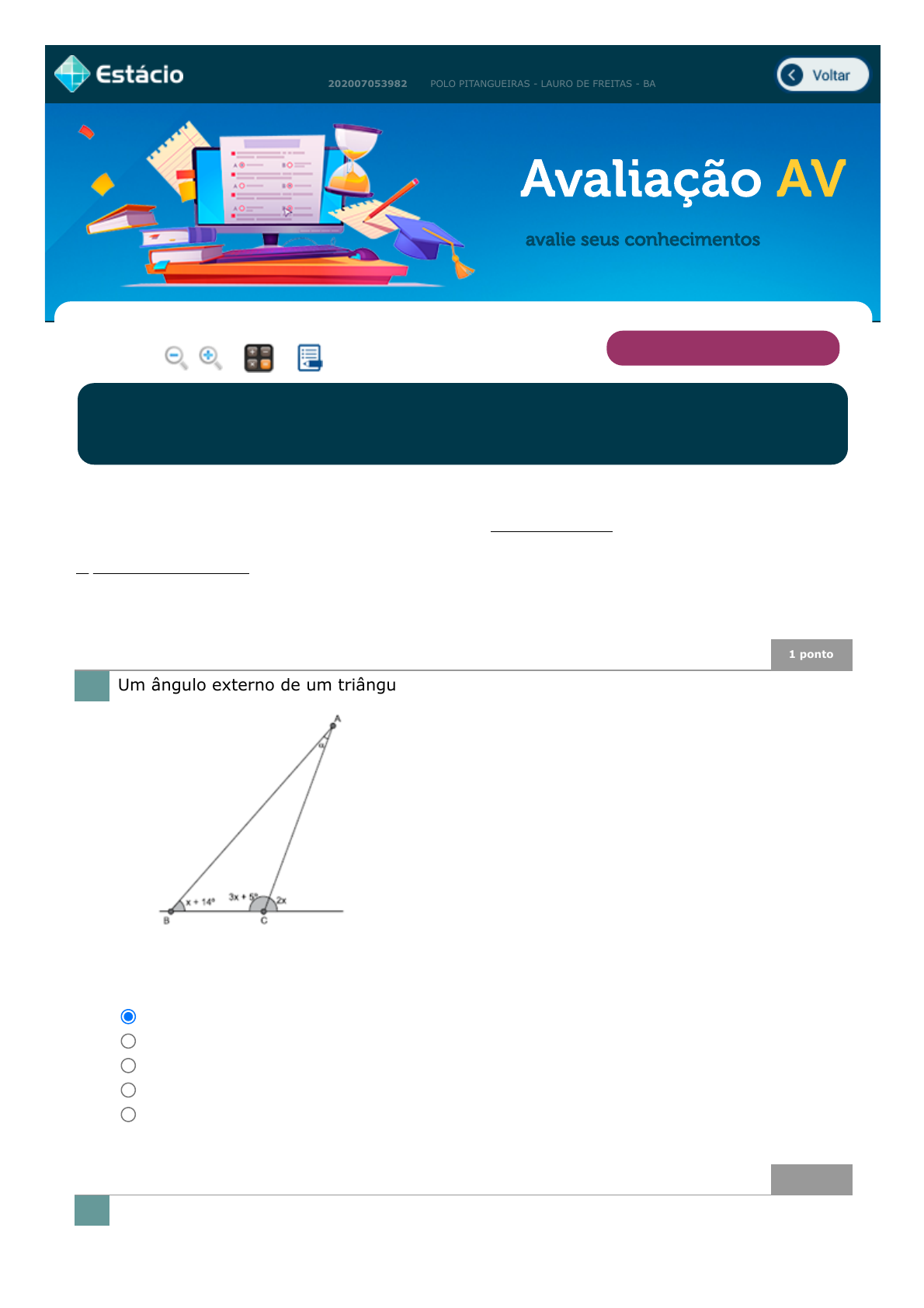 29/09/2021 16:30 EPS https://simulado.estacio.br/alunos/?p0=441720054&user_cod=3017764&matr_integracao=202007053982 1/5 WALDIR ARAUJO PIMENTEL Avaliação AV 202007053982 POLO PITANGUEIRAS - LAURO DE FREITAS - BA avalie seus conhecimentos 1 ponto Um ângulo externo de um triângulo ABC, em graus, mede 2x, conforme a figura. A medida do ângulo α é igual a: (Ref.: 202011052596) 1 ponto Se uma construção foi representada no projeto arquitetônico com uma altura de 15 cm na escala 1:75, a altura real dessa construção é: Lupa Calc. Notas VERIFICAR E ENCAMINHAR Disciplina: EEX0063 - EXPRESSÃO GRÁFIC Período: 2021.3 EAD (G) Aluno: WALDIR ARAUJO PIMENTEL Matr.: 202007053982 Turma: 9001 Prezado(a) Aluno(a), Responda a todas as questões com atenção. Somente clique no botão FINALIZAR PROVA ao ter certeza de que respondeu a todas as questões e que não precisará mais alterá-las. A prova será SEM consulta. O aluno poderá fazer uso, durante a prova, de uma folha em branco, para rascunho. Nesta folha não será permitido qualquer tipo de anotação prévia, cabendo ao aplicador, nestes casos, recolher a folha de rascunho do aluno. Valor da prova: 10 pontos. 1. 21° 22° 24° 23° 25° 2. javascript:voltar(); javascript:diminui(); javascript:aumenta(); javascript:calculadora_on(); javascript:anotar_on(); 29/09/2021 16:30 EPS https://simulado.estacio.br/alunos/?p0=441720054&user_cod=3017764&matr_integracao=202007053982 2/5 (Ref.: 202011052599) 1 ponto Sobre a projeção do objeto mostrada na figura abaixo podemos afirmar, EXCETO: (Ref.: 202011052488) 1 ponto Analise as sentenças abaixo referentes aos conceitos de modelagem 3D: I. Consiste numa representação gráfica computacional que se aproxima do produto real, auxiliando na visualização desse produto antes mesmo deste ganhar uma estrutura física; II. O potencial de inovação desse tipo de modelagem é enorme, já que as ideais podem ser concebidas, analisadas, testadas e modificadas na tela do computador. Do esboço à produção, testando e modificando quantas vezes for necessário; III. Com a modelagem 3D as chances de que o desenvolvimento de um produto, do projeto à produção, seja bem-sucedido aumentam consideravelmente, o que pode ser enxergado como uma importante vantagem competitiva no mercado; IV. Atualmente, a modelagem tridimensional é pouco demandada, pois permite criar modelos pouco personalizados e que não se aproximam da realidade física do produto que está se querendo representar. Está(ão) correta(s), apenas: (Ref.: 202011052483) 15,75 m 11,25 m 75,15 m 0,20 m 5,00 m 3. a projeção do objeto no plano é de mesma dimensão do que o objeto real (verdadeira grandeza) o centro de projeção é um ponto visualmente identificado, pois está bem próximo do objeto a fonte luminosa puntiforme é posicionada no infinito, sobre o centro do objeto a superfície gerada pelas linhas projetantes perpendiculares ao plano de projeção é cilíndrica ortogonal as linhas projetantes são paralelas entre si e perpendiculares ao plano de projeção 4. I, III e IV III e IV 29/09/2021 16:30 EPS https://simulado.estacio.br/alunos/?p0=441720054&user_cod=3017764&matr_integracao=202007053982 3/5 1 ponto Analise as sentenças abaixo referentes às normas técnicas: I. A Associação Brasileira de Normas Técnicas (ABNT) elabora as Normas Brasileiras (NBR), identificadas por números; II. O Governo Federal não reconhece essas normas, que são dispensadas pela grande maioria dos profissionais, empresas e entidades acadêmicas do Brasil; III. Cada norma é criada por meio de comissões ou comitês formados por pessoas que possuem conhecimentos técnicos em diferentes áreas de atuação; IV. As normas transmitem um conhecimento sistematizado, que já foi avaliado em diferentes aspectos. Está(ão) correta(s), apenas: (Ref.: 202011157641) 1 ponto Analise as sentenças a seguir referentes a NBR 10067: I. A vista mais importante de uma peça deve ser utilizada como vista lateral esquerda, geralmente, essa vista representa a peça em sua posição de utilização. II. Quando outras vistas forem necessárias, inclusive cortes e/ou seções, elas devem ser selecionadas conforme os seguintes critérios: usar o maior número de vistas, se necessário, as seis; sempre que possível, repetir detalhes. III. Devem ser executadas tantas vistas quantas forem necessárias à caracterização da forma da peça, sendo preferíveis vistas, cortes e/ou seções ao emprego de grande quantidade de linhas tracejadas. IV. Quando a escala utilizada não permite demonstrar detalhe ou cotagem de uma parte da peça, este é circundado com linha estreita contínua e designado com letra maiúscula. Está(ão) correta(s), apenas: (Ref.: 202011154755) 1 ponto Analise as sentenças abaixo referentes ao conceito de perspectiva: I. É uma forma de representação gráfica utilizada para representar um objeto e sua volumetria, que permite a visualização desse objeto mais próxima do mundo real; II. Perspectivas são criadas somente a partir de projeções cônicas, não podendo ser utilizadas as projeções cilíndricas; I e III I, II e III II e III 5. IV II e IV I, III e IV I e IV III e IV 6. II e III III e IV I, III e IV I, II e III I e III 7. 29/09/2021 16:30 EPS https://simulado.estacio.br/alunos/?p0=441720054&user_cod=3017764&matr_integracao=202007053982 4/5 III. Dependendo da perspectiva, existem distorções e/ou reduções empregadas no desenho das arestas. Essas reduções das arestas inclinadas têm por objetivo minimizar a distorção que ocorre nas peças em certas perspectivas; IV. As perspectivas cilíndricas são subdivididas conforme a posição das linhas projetantes em relação ao plano de projeção, podendo ter um, dois ou três pontos de fuga. Estão corretas, apenas: (Ref.: 202011115705) 1 ponto Analise as sentenças abaixo referentes às perspectivas cilíndricas: I. São formadas por linhas projetantes paralelas entre si; II. No caso da