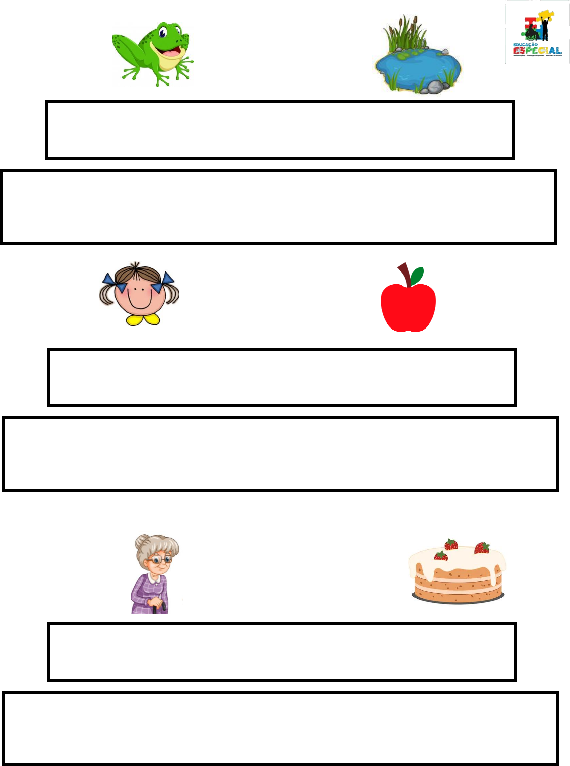 O PULOU NO A COMEU A A GOSTA DE A MENINA COMEU A MAÇÃ O SAPO PULOU NO LAGO A VOVÓ GOSTA DE BOLO A FLOR FICA NO VASO O MENINO DORMIU NA CAMA O RATO FUGIU DO GATO O DORMIU NA A FICA NO O FUGIU DO O GANHOU UM O JOGOU A A CAIU DA O MENINO JOGOU A BOLA O BEBÊ GANHOU UM CARRO A LARANJA CAIU DA ÁRVORE A CHAVE ABRIU O BAÚ A MENINA BEBEU O SUCO O GATO FICA NA JANELA A BEBEU O A ABRIU O O FICA NA