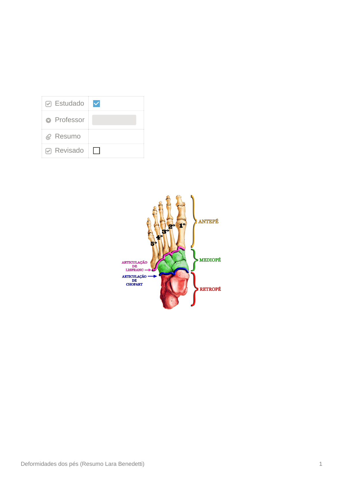 Deformidades dos pés (Resumo Lara Benedetti) 1