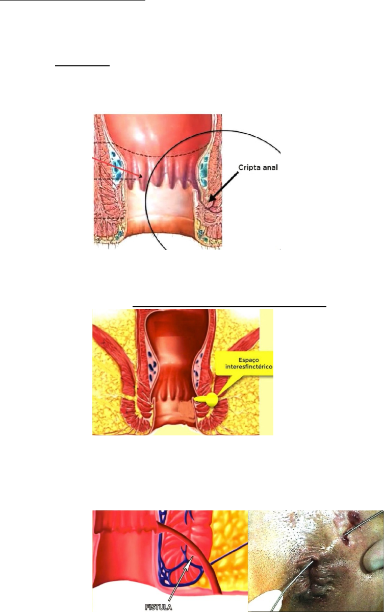 Fístulas e Abcessos Anais: · São 2 formas de apresentação (uma crônica e outra aguda) de um mesmo distúrbio · Aspectos Anatômicos: · Cripta anal – são estruturas tubulares que se abrem na linha pectínea, mas se aprofundam até o tecido muscular do músculo esfíncter interno. Como nesse local há passagem das fezes e de bactérias, essas criptas são locais propensos a ter proliferação bacteriana, gerando uma inflamação local. · · Essa infecção pode progredir, até o ponto de passar os limites do músculo esfíncter interno, ganhando o espaço interesfinctérico (entre o esfíncter interno e o externo). Quando isso ocorre, tem-se então o 1º estágio da fístula de origem críptica. · · Fisiopatologia da Fístula: · A fístula ocorre por uma progressão desse processo infeccioso que se originou na cripta, em que ela atravessa o músculo esfíncter interno e o externo, ganhando a pele da região perianal, de modo que comunica a pele e a cripta (tendo-se um orifício interno e outro externo). · · Fisiopatologia do Abcesso: · O abcesso também ocorre por uma progressão desse processo infeccioso que se iniciou na cripta, igualmente atravessando o músculo esfíncter interno e o externo. Mas no caso do abcesso, NÃO ocorre a perfuração da pele (ou seja, só tem um orifício de entrada, não tendo um de saída), de modo que se forma um acúmulo de líquido purulento. · · Quadro Clínico e Exame Físico: · Fístula Anal: · Processo crônico · Orifício interno e orifício externo (o externo nem sempre é identificável, o que gera uma “fístula cega”) · Secreção purulenta através da fístula ou pelo ânus · Desconforto local · Prurido · Em caso de fístulas anais complexas (geralmente quando há mais de uma fístula simultânea, fibrose), SEMPRE se deve descartar doença de Chron · · Abcesso Anal: · Processo agudo e de curta duração · DOR · Febre · Pode se apresentar com corrimento anal esbranquiçado (drenagem espontânea pelo ânus), sem ter uma nodulação na região perianal respectiva do abcesso. · · Em casos de abcesso mais profundos, o diagnóstico pode ser difícil, posto que não gera o abaulamento comum da região perineal, em que o diagnóstico acaba demandando exames de imagem (como US) · Em alguns casos, o acometimento perianal pode ser avançado, inclusive com presença de necrose (síndrome de Furnier), quando se demanda um tratamento de urgência. · Classificação: · Fístula: · A classificação se baseia no quanto o esfíncter externo está acometido pelo trajeto fistuloso · Fístula Interesfincteriana (45% dos casos - +COMUM): é quando pouco ou nada do esfíncter externo está acometido, só se tendo perfurado o esfíncter interno e drenado para a pele. · · Fístula Transesfincteriana: nesse caso, atravessou-se tanto o esfíncter interno como o externo, drenando mais distalmente ao ânus · · Fístula Supraesfincteriana: nesse caso, atravessou-se ambos os esfíncteres também, mas aqui o esfíncter externo é perfurado mais superiormente (quase no limite com o músculo elevador do ânus). · · Fístula extraesfincteriana: nesse caso NÃO SE ORIGINA DA CRIPTA (embora possa envolver a cripta, de modo que se origina mais superiormente, atravessando ambos os esfíncteres e até o músculo elevador do ânus para se fistulizar na pele. · · Abcessos: · É importante entender alguns elementos da anatomia dessa região. Tem-se basicamente 3 estruturas/espaços que são separados pelo septo fibroso do períneo: · Espaço perianal: fica abaixo do septo fibroso, sendo uma região composta basicamente de gordura, tendo um pequeno volume · Fossa Isquiorretal: estrutura que fica acima do septo fibroso e abaixo do músculo elevador do ânus. · Espaço pelvirretal: fica acima do músculo elevador do ânus · · A partir disso, os abcessos recebem a nomenclatura conforme o espaço que eles ocupam: · Abcesso perianal · Abcesso isquiorretal · Abcesso pelvirretal · Há ainda a possibilidade de o abcesso se formar no espaço interesfincteriano, sendo chamado de abcesso interesfincteriano (“submucoso”). Esses abcessos costumam ser mais difíceis de detectar, uma vez que não geram muita lesão na pele perianal, sendo mais facilmente detectável pelo toque retal. É comum esses abcessos se resolverem espontaneamente por fistulizarem para o reto e drenarem o seu conteúdo. · · Tratamento: · Fístula Anal: · Tratamento Cirúrgico: · Objetivos: · Tratar o orifício interno · Tratar o trajeto fistuloso infectado · Preservar o anel esfincteriano · Fístulas superficiais – pode-se tratar com filustomia, ou seja, a abertura da fístula (como se fosse abrir um cilindro), de modo a expor todo o trajeto da fístula. Geralmente se secciona os bordos dessa fístula para facilitar a cicatrização. · · Fístulas Transesfincteriana – nesse caso não se pode simplesmente abrir a fístula, fazendo-se uma fistulectomia com sedenho. Ou seja, disseca-se a retira-se o trajeto da fístula, tentando lesar o mínimo possível o músculo esfíncter externo. Geralmente se passa um fio guia pela perfuração do músculo esfíncter externo, de modo a permitir que ocorra uma resposta de fechamento do trajeto da fístula, podendo-se posteriormente retirar esse fio guia. · Outra abordagem possível é a realização de um retalho mucoso, em que se usa esse retalho para cobrir o orifício interno da fístula. Pelo orifício externo, limpa-se o trajeto fistuloso e se fecha o orifício externo. Costuma ter uma recidiva um pouco maior do que a fistulecomia. · · Outra abordagem possível é a “LIFT” (ligadura de trajeto fistuloso, em que se faz uma pequena incisão no espaço interesfincteriano, permitindo visualizar a fístula e fazer a sua ligadura, impedindo a progressão da fístula. · · Outra abordagem possível é a “VAFT” (tratamento endoscópico do trajeto fistuloso. É indicada em fístulas mais complexas e de traje