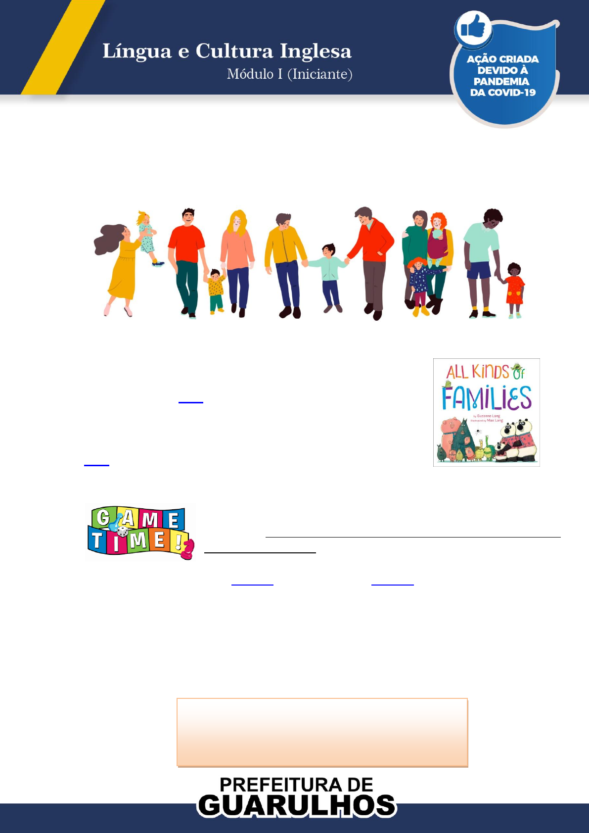 Hey, everybody! We hope you’re all good! Nessa semana, vamos apresentar e revisar vocabulário relacionado a family members (membros da família), assim como jobs and occupations (empregos e ocupações) com o objetivo de ampliar a temática de personal information and introductions (informações pessoais e apresentações). Let’s do it! (Vamos lá!) Family members There are many kinds of families in the world (há muitos tipos de família no mundo). Vamos refletir um pouco sobre isso? Click here e acompanhe a leitura em inglês do livro "All Kinds of Families" por Suzanne Lang. Na sequência, agora que observamos a incrível diversidade desse tema, que tal revisarmos algumas palavras sobre family members? Click here e acesse o vídeo que preparamos para você. Activity 1 – Games Selecionamos dois jogos online para você praticar Family members. Não é necessário enviar as respostas dessa atividade para seu/sua teacher. Game 1 Game 2 Jobs and occupations Quando estamos em uma conversa buscando conhecer alguém, temos o costume de perguntar algumas informações pessoais como já revisamos anteriormente. Perguntar se a pessoa estuda ou trabalha também faz parte do bate-papo. Em inglês, podemos traduzir as palavras “trabalho” ou “profissão” por job ou occupation. What’s your job? – Qual o seu trabalho? What’s your occupation? – Qual é sua profissão? What do you do for a living? – O que você faz da vida? https://www.youtube.com/watch?v=Hukxf8H1Sy0&ab_channel=PalmdaleCityLibrary https://drive.google.com/file/d/1Jf9CAhjuHKs04ycllmFC6581r0QlB4N8/view?usp=sharing https://wordwall.net/pt/resource/2796519 https://wordwall.net/pt/resource/1434540 Vamos conhecer um pouco mais sobre jobs and occupations? Click here e acompanhe a descrição em inglês de algumas profissões fundamentais em nossa sociedade. Por falar nisso, what’s your dream job? (qual seu emprego dos sonhos?) Click here e responda em inglês. Vamos criar uma wordcloud (nuvem de palavras) com os jobs and occupations mais desejados por nossos(as) alunos(as). Essa nuvem será compartilhada com a turma, então não deixe de participar! Demonstrative Pronouns Os pronomes demonstrativos em inglês (demonstrative pronouns) são utilizados para indicar algo (pessoa, lugar ou objeto) e mostrar sua posição no espaço. Isso porque alguns deles são utilizados quando o falante está perto, e outros, quando está longe. Click here e acesse o vídeo de revisão que preparamos para você. Vamos praticar? Click here and play a game! Observe se a mão está near (perto) ou far (longe) do que está sendo apresentado para escolher o pronome correto. Veja também se é apenas um (singular) ou vários (no plural). Não é necessário enviar as respostas dessa atividade para seu/sua teacher. Activity 2 – Quiz Agora teste seus conhecimentos com as perguntas de múltipla escolha no quiz online que preparamos para você here. Você sabia que quando falamos a profissão de alguém devemos usar o artigo indefinido A ou AN. Em português, nós falamos “ela é professora”, mas, em inglês, dizemos “she’s a teacher”. Essa dica só não vale quando estamos nos referindo a várias pessoas (no plural). Demonstrative Pronouns Tradução This (singular, perto) este, esta, isto These (plural, perto) estes, estas That (singular, longe) esse, essa, isso, aquele, aquela, aquilo Those (plural, longe) esses, essas, aqueles, aquelas https://www.youtube.com/watch?v=ef0yW2_xqm4&ab_channel=LanternfishESL https://www.menti.com/uippnno9ev https://drive.google.com/file/d/1I86mYw-4nGWaMSrNUkwtLwsFu7h9ggbv/view?usp=sharing https://wordwall.net/resource/8627044/demonstrative-pronouns https://docs.google.com/forms/d/e/1FAIpQLSdjLm1kYRTTBdbG61LJi0QhOorGxc6T4tVsM8x0dvTN8IvzIA/viewform?usp=sf_link