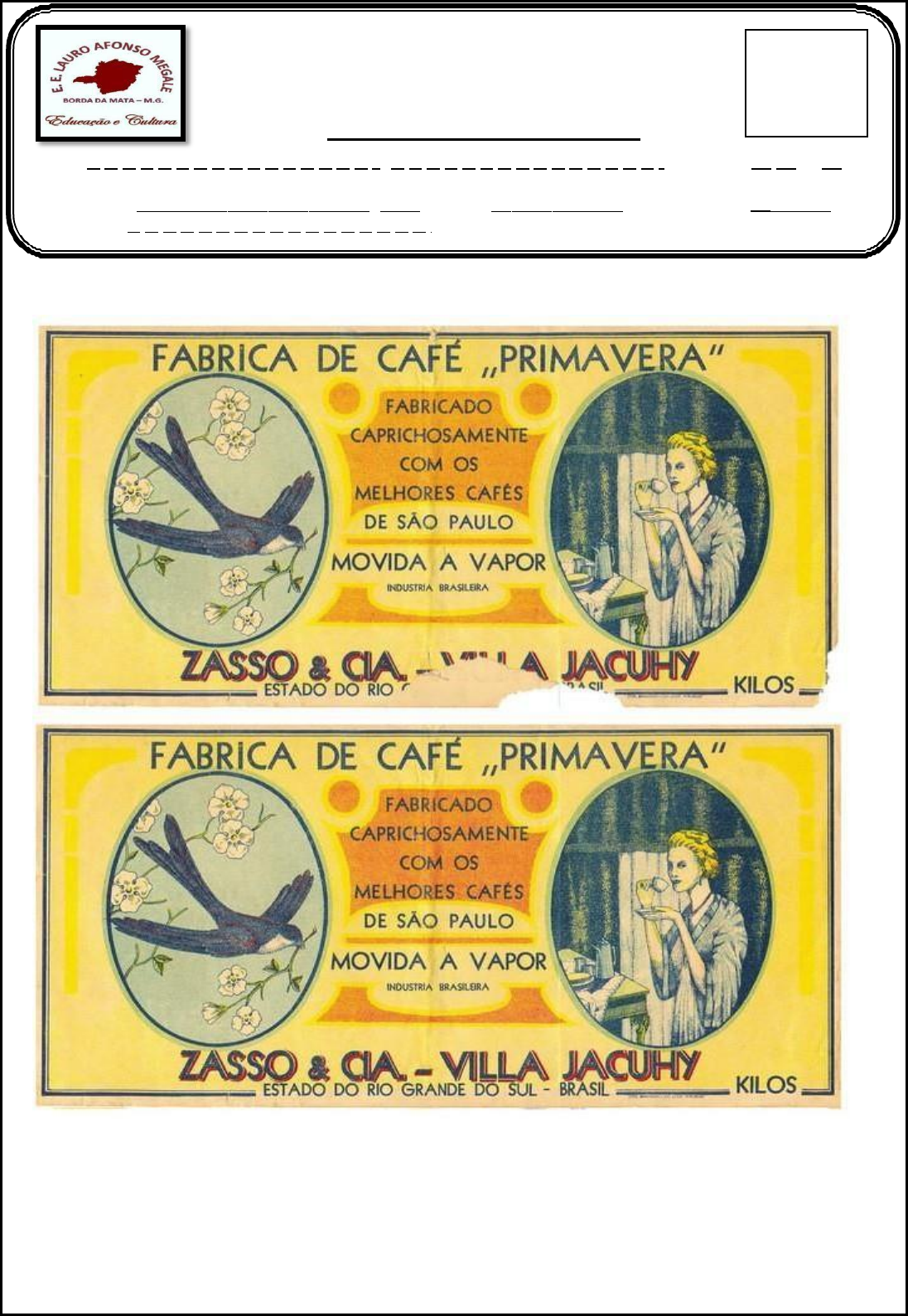 1- Observe atentamente o cartaz abaixo: Assinale a alternativa correta sobre a economia no Brasil neste período: a) As atividades econômicas principais eram o cultivo do café e a fabricação da borracha, sem espaço para a indústria. b) Observa-se um movimento de migração da cidade para o campo, por conta da malha ferroviária desenvolvida desde o séc. XIX. c) O café era o principal produto de exportação e as primeiras indústrias se implantavam nas grandes cidades. d) A principal atividade industrial deste período era a pesada. Escola Estadual Lauro Afonso Megale AV Duque de Caxias 621, São Judas Tadeu, Borda da Mata-MG Telefone (35) Telefone (35)34451316 Nome:_ Prova – REANP - 2021 _ Data: _ / _/_ Professor: _ Disciplina: _ _ _ Série: Valor: _ Nota: 2 - A República Velha (1894-1930) foi caracterizada por: a) Por um período de paz completa em todo território nacional. b) Pela alternância de poder entre os partidos estaduais realizado pelo sufrágio universal masculino. c) Por uma ascensão social dos libertos pela lei de 13 de maio de 1888. d) Pela dominação das elites agrárias estaduais, especialmente as de São Paulo e Minas Gerais. Ver Resposta 3- Analise o texto abaixo e marque a alternativa correta: "Trata-se de uma estratégia muito usada em hábitos políticos coronelistas, em que, por exemplo, os eleitores trocavam seu voto por um favor, como um bem material (sapatos, roupas, chapéus etc.) ou algum tipo de serviço (atendimento médico, remédios, verba para enterro, matrícula em escola, bolsa de estudos etc.)." O trecho acima descreve uma prática eleitoral da República Velha denominada: a) Voto secreto b) Voto de cabresto c) Voto censitário d) Voto aberto 4- Para os amigos pão, para os inimigos pau; aos amigos se faz justiça, aos inimigos aplica-se a lei. LEAL, V N. Coronelismo, enxada e voto. São Paulo: Alfa Omega. Esse discurso, típico do contexto histórico da República Velha e usado por chefes políticos, expressa uma realidade caracterizada: a) pela força política dos burocratas do nascente Estado republicano, que utilizavam de suas prerrogativas para controlar e dominar o poder nos municípios. b) pelo controle político dos proprietários no interior do país, que buscavam, por meio dos seus currais eleitorais, enfraquecer a nascente burguesia brasileira. c) pelo mandonismo das oligarquias no interior do Brasil, que utilizavam diferentes mecanismos assistencialistas e de favorecimento para garantir o controle dos votos. d) pelo domínio político de grupos ligados às velhas instituições monárquicas e que não encontraram espaço de ascensão política na nascente república. e) pela aliança política Armada entre as oligarquias do Norte e Nordeste do Brasil, que garantiria uma alternância no poder federal de presidentes originários dessas regiões. 5- Responda a questão abaixo (ENEM, 2015).