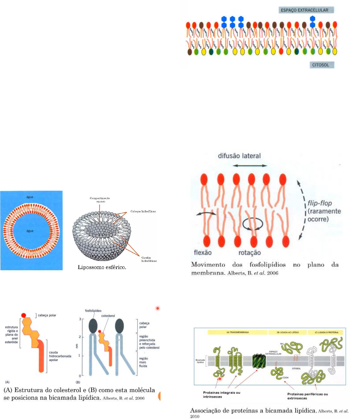 Biologia Celular e Molecular Biomembranas Mosaico fluído formado por uma bicamada lipídica entremeada por proteínas que é encontrada em membranas citoplasmáticas, o que diferencia as membranas em si é sua composição proteica e lipídica que é determinada a partir da função da célula. Lipídios Bicamada lipídica Tipos principais de lipídios: fosfolipídios – molecular anfipática (parte polar e apolar) Lipossomos – estruturas esféricas desenvolvidas artificialmente pela indústria farmacêutica para guardar os fármacos em seu interior para que o lipossomo proteja o fármaco para que ele não seja perdido no processo digestório rapidamente e não sejam necessárias altas doses de drogas para atingir os efeitos desejados, os lipossomos retém o fármaco e libera no intestino. Colesterol – Indispensável na composição de membranas, e é a molécula que garante a fluidez e a resistência das membranas. Assimetria da membrana – a composição quanto de lipídios quanto de proteínas em ambos os lados da membrana não deve ser idêntica. Fluidez da bicamada fosfolipídica – há uma movimentação dos diferentes componentes na bicamada lipídica essa característica é fornecida pela composição lipídica. Movimentos dos fosfolipídios: difusão lateral, flexão, rotação e flip-flop (raramente ocorre). Quando se juntam todos esses movimentos é observada a fluidez Proteínas – diferentes formas de associação com a bicamada lipídica. Há a presença de proteínas intrínsecas (que permeiam a membrana por inteiro) e extrínsecas (proteínas associadas aos lipídios de forma periférica). Dalton Arandas – medicina Uninassau Tipos de proteínas: Carboidratos – na membrana plasmática há o glicocálix que protege a superfície celular e é responsável pelo reconhecimento célula-célula (lectinas) e na adesão. (respostas inflamtórias, reconhecimento entre os gametas). Os carboidratos podem estar associados a proteína ou à bicamada fosfolipídica. Distrofia muscular de Duchenne – patologia associada a alterações nas membranas. A evolução motora da doença é a fraqueza muscular progressiva, irreversível, devido à perda da musculatura estriada esquelética. A distrofina (proteína) ela se liga a membrana e ao filamento de actina, que promove a contração muscular, e por um erro genético algumas pessoas tem a proteína ausente ou alterada que perde a função então quando há contração do músculo não tem encurtamento da celular perdendo-se assim o tônus muscular. É uma doença genética recessiva associada ao gene X em que o gene é letal para mulheres. Especializações de membrana Microvilosidades – fixa, tem maleabilidade, aumenta a área de contato e assim a capacidade absortiva e é encontrada no intestino delgado e rins nos tubúlos renais. Estereocílios – muito presente no epidídimo os estereocílios aumentam a superfície de contato e auxiliam a movimentação dos espermatozoides, mas sua função primordial é participar da nutrição desses gametas na passagem pelo epidídimo. Cílios – não são móveis e são encontrados na traqueia, trato respiratório e tuba uterina e pode auxiliar no aquecimento do ar, manutenção da temperatura, umidade e na expectoração do muco. Mulheres podem ter problemas quando tem deficiência de cílios na tuba uterina que dificulta a migração do óocito para o útero desenvolvendo uma gravidez na tuba uterina que necessita de intervenção cirúrgica, de forma a tornar a mulher histero. Junções celulares – acontecem com a finalidade de fazer a adesão célula-célula e célula-tecido via lâmina basal. Junção de oclusão – há proteínas integrais ligadoras do tipo ocludinas e claudinas e proteínas citoplasmáticas que dão estabilidade a ligação que são ZO-1, ZO-2, ZO-3. A zona de oclusão limita a difusão de pequenas moléculas e íons e promovem a manutenção da polaridade da célula e são encontradas mais frequentemente na parte apical das células. Algumas substâncias atuam na permeabilidade da junção de oclusão, principalmente cosméticos. Junção aderente – moléculas de adesão celular (CAM), principais famílias de proteínas: as caderinas, imunoglobulinas, integrinas e as selectinas. Caderinas e integrinas são rastreadas em situações tumorais, porque essas proteínas dão o fortalecimento da ligação célula-célula e quando há mutações nos genes que codificam essas proteínas enfraquecem as ligações célula-célula facilitando a metástase que é o desprendimento do tumor para outras áreas do corpo. Desmossomos – estão abaixo das zonas de adesão e são compostos por: demogleína e desmocolina (que são do tipo caderinas) e na placa interna placoglobina e desmoplaquina. Nas placas internas estão presos filamentos intermediários, que são resistentes, promovendo uma forte estabilidade na ligação que confere uma forte estruturação ao tecido. Junção comunicante – composto por conexinas na região basal é a junção resultante da interação entre dois conéxons. Hemidesmossomos – composto por integrinas e forma a placa dos hemidesmossomos formada por proteínas BP230 (que vem do pênfigo bolhoso que é a doença originada a partir da mutação nos genes do colágeno que participa da ligação das células na lâmina basal, e essa mutação no gene faz com que não haja força suficiente para manter o epitélio preso ao tecido conjuntivo que forma bolhas).