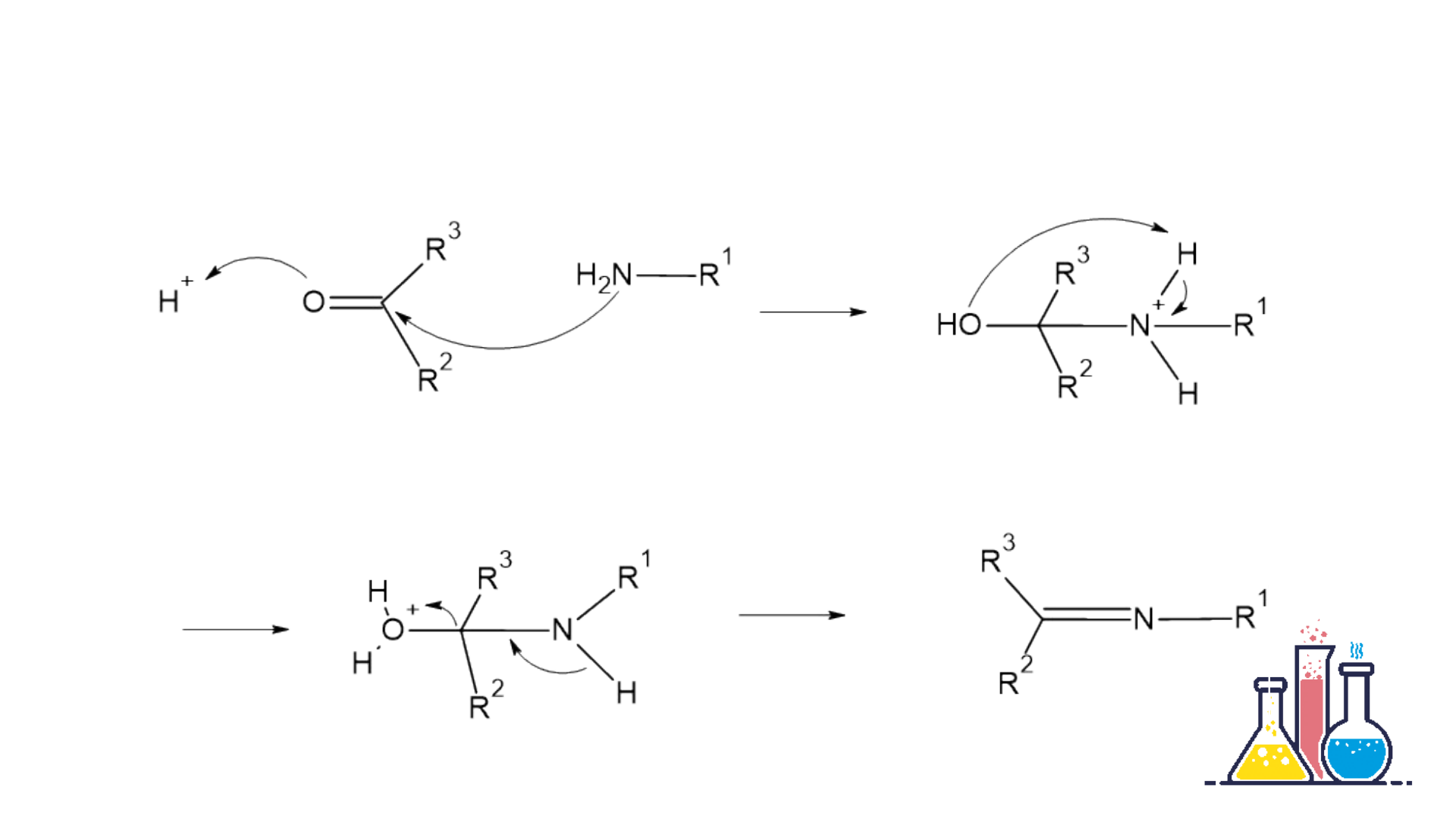 FORMAÇÃO DA BASE DE SCHIFF 1 IMINA FORMAÇÃO DA BASE DE SCHIFF 2 CATION IMINÍO REAÇÃO DE MANNICH 3 REAÇÃO DE MANNICH 5 ENAMINA REAÇÃO DE MANNICH 4 REAÇÃO DE MANNICH 4