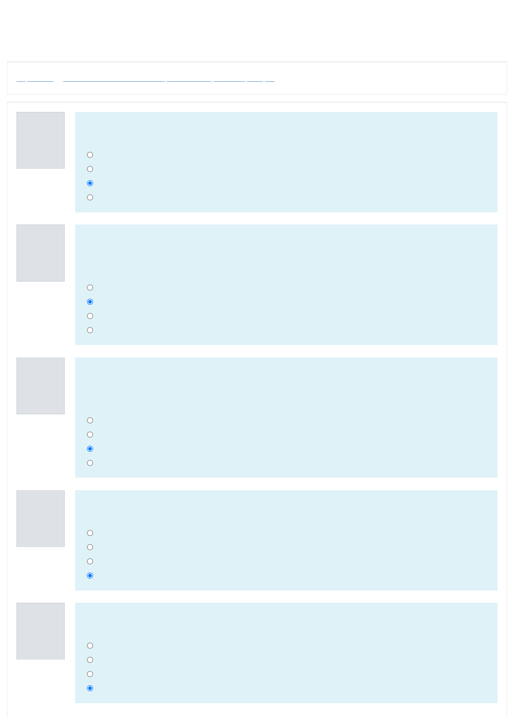Página inicial / Prova EaD - Fundamentos de Planejamento Estratégico nas Organizações Questão 1 Ainda não respondida Vale 1,00 ponto(s). Questão 2 Ainda não respondida Vale 1,00 ponto(s). Questão 3 Ainda não respondida Vale 1,00 ponto(s). Questão 4 Ainda não respondida Vale 1,00 ponto(s). Questão 5 Ainda não respondida Vale 1,00 ponto(s). A organização procura se estabelecer em determinadas linhas de negócio e tenta manter-se nelas. A afirmação se refere à estratégia de: Escolha uma opção: Crescimento Concentração Estabilidade Redução de despesas Infelizmente, nem tudo é perfeito e está disponível no momento da elaboração da estratégia e há restrições que prejudicam o processo de formulação das estratégias. Diante disso, assinale a alternativa que contém uma afirmação incorreta do ponto de vista das mencionadas restrições: Escolha uma opção: Atitude avessa a riscos Grande capacidade de implementação das estratégias Falta de disponibilidade de recursos financeiros Retaliação da concorrência “O processo administrativo que proporciona sustentação metodológica para se estabelecer a melhor direção a ser seguida pela organização, visando ao otimizado grau de interação com os fatores externos – não controláveis – e atuando de forma inovadora e diferenciada (Oliveira, 2007). Este conceito se refere ao: Escolha uma opção: Planejamento decisório Planejamento tático Planejamento estratégico Planejamento operacional Na análise SWOT são considerados os seguintes pontos: Escolha uma opção: Fraquezas, forças, pontos negativos e positivos Possibilidades, ameaças, organização e pontos de sucesso Oportunidades, pontos fortes, pontos fracos e possibilidades Forças, fraquezas, oportunidades e ameaças Assinale a alternativa que não contém um defeito no planejamento estratégico: Escolha uma opção: Ineficiência dos responsáveis pelo planejamento estratégico Não interligação do planejamento estratégico com os planejamentos operacionais Apresentação de excesso ou falta de simplicidade, formalidade e flexibilidade Gestão do conhecimento realizada de forma eficiente https://ava.unisanta.br/ https://ava.unisanta.br/mod/quiz/view.php?id=177146 Questão 6 Ainda não respondida Vale 1,00 ponto(s). Questão 7 Ainda não respondida Vale 1,00 ponto(s). Questão 8 Ainda não respondida Vale 1,00 ponto(s). Questão 9 Ainda não respondida Vale 1,00 ponto(s). Relacione os institutos aos seus conceitos e marque a alternativa que corresponde a relação correta: 1 – Visão 2 – Missão 3 – Valores ( ) deve se ousada, mas atingível em um determinado espaço de tempo. ( ) é(são) listado(s) como frase(s) curta(s), ou mesmo apenas palavra(s). ( ) deve conter a descrição do porquê a organização existe. Escolha uma opção: 1, 3 e 2 3, 2 e 1 1, 2 e 3 2, 1 e 3 É o processo de monitoramento do ambiente organizacional que visa identificar as oportunidades e os riscos atuais e futuros que podem vir a influenciar a capacidade das empresas de atingir suas metas. A afirmação se refere a qual fase do planejamento estratégico? Escolha uma opção: Análise ambiental Controle estratégico Estabelecimento da diretriz organizacional Formulação da estratégia Considera a inclusão de todas as áreas necessárias ao desenvolvimento de um bom planejamento. O Planejamento não é feito só de cima para baixo, mas envolvendo todos os que vão diretamente ser afetados por ele. Tem que ser, portanto, um processo compreensivo. Esta afirmação se refere ao: Escolha uma opção: Planejamento participativo Planejamento integrado Planejamento permanente Planejamento coordenado Assinale a alternativa em que as fases do planejamento estratégico aparecem na ordem correta de sua ocorrência. Escolha uma opção: Estabelecimento da diretriz organizacional, análise ambiental, controle estratégico, formulação da estratégia e implementação da estratégia. Análise ambiental, estabelecimento da diretriz organizacional, formulação da estratégia, implementação da estratégia e controle estratégico. Formulação da estratégia, implementação da estratégia, controle estratégico, estabelecimento da diretriz organizacional e análise ambiental. Controle estratégico, formulação da estratégia, implementação da estratégia, análise ambiental e estabelecimento da diretriz organizacional. Questão 10 Ainda não respondida Vale 1,00 ponto(s). Foi responsável pelo método de fabricação denominado como Fordismo, com a introdução da produção em massa de bens através da formação de uma linha de produção, em que o operário é responsável apenas pela montagem ou fabricação de parte de todo o processo de industrialização. Escolha uma opção: Henry Ford Henri Fayol Henry J. Heinz Willian Lever ◄ Percepção Discente Seguir para... Exame EaD - Fundamentos de Planejamento Estratégico nas Organizações ► https://ava.unisanta.br/mod/survey/view.php?id=89546&forceview=1 https://ava.unisanta.br/mod/quiz/view.php?id=177147&forceview=1