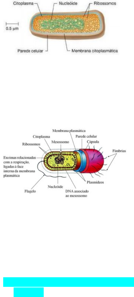 BACTERIOLOGIA As bactérias são organismos unicelulares procariontes (por não possuírem material genético disperso pelo citoplasma e por não possuírem carioteca), são microscópios e capazes de se agruparem formando colônias, porém cada uma vivendo de maneira independente. Estrutura das bactérias As bactérias são formadas por: 1- Estruturas externas à parede celular: · CÁPSULA: película formada por polissacarídeos ou polipeptídios (substância gelatinosa), cuja sua função é: · Fornecer adesão celular com a superfície a partir de receptores específicos; · Aumentar a capacidade invasiva (proteger a bactéria contra o sistema imunológico) fazendo com que a célula bacteriana escape da fagocitose; · Ser reservatório de água e nutrientes, protegendo a bactéria ao dessecamento e deixando-a hidratada; · É importante para a sobrevivência da bactéria no hospedeiro; · FLAGELO: São longos filamentos delgados e ondulados, formados pela proteína FLAGELINA (nem todas as células possuem), são organelas especializadas em locomoção em meio líquido ( sendo necessário uso de ATP para a locomoção). Os flagelos podem ser: ATRÍQUIAS MONOTRÍQUIA LOFOTRÍQUIA ANFITRÍQUIA PERITRÍQUIA · FILAMENTO AXIAL: São flagelos internos chamados de endoflagelo (endógeno), são estruturas que enrolam toda a bactéria, sua função é: · Realizar movimento da bactéria a partir da contração; · São exclusivas das espiroquetas. · FIMBRIAS: São estruturas filamentosas mais curtas e delicadas que os flagelos e mais numerosas, formadas pela proteína PILINA estando presente em muitas bactérias. Sua função é: · Dar aderência para bactéria no hospedeiro ou em outras superfícies (possui adesina que reconhece proteínas normais como receptores celulares). 2- Parede celular: É uma película rígida localizada na parte externa da bactéria, formada por Peptídeoglicanos (polímeros de polissacarídeos ligados a proteínas de proteção MUREÍNA) ela está próxima a membrana plasmática . Suas funções são: · Proteger contra a ação osmótica (ambientes com alta concentração de solutos); · Definir a forma da bactéria; · Dar rigidez a bactéria. Pode ser também GRAM + ou – 3- Estruturas internas à parede celular: · MEMBRANA PLASMÁTICA: É uma bicamada fosfolipídica com proteínas inseridas que separa a parede celular ao citoplasma. Suas funções são: · Permite a mobilidade de proteínas; · Controle de entrada e saída de substâncias das células (permeabilidade seletiva); · Responsável por reações de obtenção de energia. · MESOSSOMOS: São invaginações (“dobras”) da membrana plasmática, divididos em: · Mesossomos PROFUNDOS e CENTRAIS: envolvidos na replicação de DNA e na divisão celular; · Mesossomos PERIFÉRICOS: envolvidos na respiração celular · NUCLEÓIDE: São cromossomos circulares constituídos por uma única molécula de DNA, ficam na região da cromátide. Sua função é: · Carregar a informação genética. · PLASMÍDEO: São moléculas menores de DNA de replicação autônoma e controlada, são extra cromossomais , circulares. Sua função é: · Carregar genes que não codificam características essenciais. · RIBOSSOMOS: São estruturas capazes de produzir proteínas nas células. · ESPOROS: São estruturas formadas e armazenadas dentro do citoplasma de algumas bactérias, contendo uma parede celular espessa (impermeável), são liberados quando a bactéria se encontra em condições adversas. Suas funções são: · Ser altamente resistentes a agentes físicos e químicos; · Forma de sobrevivência da bactéria; · Dão resistência a bactéria; · Armazenam DNA. FORMATO DAS BACTÉRIAS As bactérias podem ser divididas de acorda com sua morfologia (forma e função: 1. COCO: bactérias ovais ou esféricas. · Diplococos: 2 cocos; · Tétrade: 4 cocos; · Sarcina: 8 cocos; · Estreptococos: cocos em cadeia; · Estafilococos : cocos agrupados. 2. BACILOS: bactérias cilíndricas ou em forma de bastão. · Diplobacilos: 2 bacilos; · Estreptobacilos: bacilos em cadeia; · Cocobacilos: bacilos arredondados 3. ESPIRILOS ou ESPIROQUETAS: bactérias helicoidais, esticadas em formas de onda.