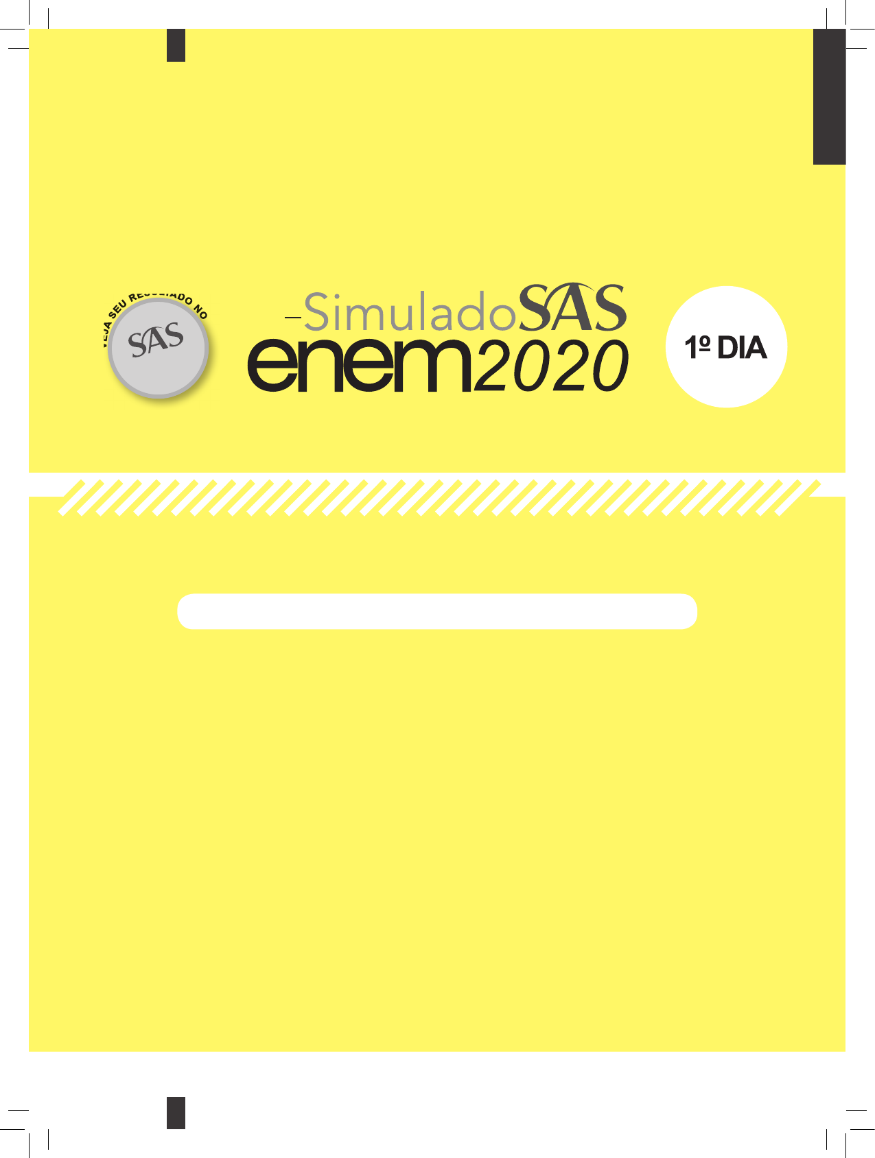 EXAME NACIONAL DO ENSINO MÉDIO LEIA ATENTAMENTE AS INSTRUÇÕES SEGUINTES: 1. Verifique, no CARTÃO-RESPOSTA, se os seus dados estão registrados corretamente. Caso haja divergência, comunique-a imediatamente ao aplicador da sala. 2. Este CADERNO DE QUESTÕES contém 90 questões numeradas de 1 a 90 e a Proposta de Redação, dispostas da seguinte maneira: a) questões de número 1 a 45, relativas à área de Linguagens, Códigos e suas Tecnologias; b) Proposta de Redação; c) questões de número 46 a 90, relativas à área de Ciências Humanas e suas Tecnologias. ATENÇÃO: as questões de 1 a 5 são relativas à língua estrangeira. Você deverá responder apenas às questões relativas à língua estrangeira (inglês ou espanhol) escolhida no seu CARTÃO-RESPOSTA. 3. Confira se a quantidade e a ordem das questões do seu CADERNO DE QUESTÕES estão de acordo com as instruções anteriores. Caso o caderno esteja incompleto, tenha defeito ou apresente qualquer divergência, comunique ao aplicador da sala para que ele tome as providências cabíveis. 4. Para cada uma das questões objetivas, são apresentadas 5 opções. Apenas uma responde corretamente à questão. 5. O tempo disponível para estas provas é de cinco horas e trinta minutos. 6. Reserve tempo suficiente para preencher o CARTÃO-RESPOSTA e a FOLHA DE REDAÇÃO. Os rascunhos e as marcações assinaladas no CADERNO DE QUESTÕES não serão considerados na avaliação. 7. Somente serão corrigidas as redações transcritas na FOLHA DE REDAÇÃO. 8. Quando terminar as provas, acene para chamar o aplicador e entregue este CADERNO DE QUESTÕES e o CARTÃO-RESPOSTA/ FOLHA DE REDAÇÃO. 9. Você não poderá se ausentar da sala de provas levando consigo o CADERNO DE QUESTÕES antes do prazo estabelecido e/ ou o CARTÃO-RESPOSTA a qualquer tempo. ATENÇÃO: transcreva no espaço apropriado do seu CARTÃO-RESPOSTA, com sua caligrafia usual, considerando as letras maiúsculas e minúsculas, a seguinte frase: PROVA DE LINGUAGENS, CÓDIGOS E SUAS TECNOLOGIAS E DE REDAÇÃO PROVA DE CIÊNCIAS HUMANAS E SUAS TECNOLOGIAS Não se acha a paz evitando a vida. Datas de aplicação: 18/04/2020 ou 19/04/2020 2o VE JA SE U R ESULTADO NO VE JA SE U R ESULTLTL ATAT DO NO APP 01_2020_2oENEM_LC.indd 1 07/02/2020 16:06:50 LC – 1o dia | 2o Simulado SAS ENEM – Página 2 2020 LINGUAGENS, CÓDIGOS E SUAS TECNOLOGIAS Questões de 01 a 45 Questões de 01 a 05 (opção inglês) QUESTÃO 01 WANNA SEE A COOL CARD TRICK? PICK ANY CARD AND DON’T SHOW ME. SURE. OKAY. IT’S THE ACE OF DIAMONDS, ISN’T IT? NOOO. NOOO. NO. NO. QUEEN OF HEARTS? FIVE OF CLUBS? SEVEN OF SPADES? M ik e C ad de n O efeito de humor da tirinha é gerado pelo fato de o menino A tentar diferentes mágicas. B desistir facilmente de fazer a mágica. C insistir no truque, ainda que sem sucesso. D trapacear no jogo de baralho e ser descoberto. E acertar, depois de muitas tentativas, a carta correta. QUESTÃO 02 Neil Armstrong thought he had a 50-50 shot at pulling it off. “There are so many unknowns”, the first man to set foot on the moon said in a 2011 interview with an Australian accounting firm. “There was a big chance that there was something in there we didn't understand properly and we [would have] to abort and come back to Earth without landing”. That he, Edwin “Buzz” Aldrin and Michael Collins – with the help of thousands of NASA engineers, scientists and mission controllers on Earth – did pull off a moon landing remains one of humanity's most incredible achievements. MOSKOWITZ, Clara. One Small Step Back in Time. Scientific American, 1 jul. 2019. Disponível em: https://www.scientificamerican.com. Acesso em: 28 set. 2019. Em suas falas reproduzidas no texto, Neil Armstrong A agradece aos dois colegas que o acompanharam na missão. B descreve o que viu no momento em que pisou na Lua pela primeira vez. C reconhece incertezas da missão que poderiam impedir o pouso na Lua. D menciona os três participantes dessa importante conquista para a humanidade. E revela que a primeira missão ao satélite da Terra teve que ser abortada. QUESTÃO 03 For decades soya beans have been the main supply of plant-based protein, but since the turn of the millennium, it has been falling out of favour. Some people are simply allergic to soya, so they needed something else. Other consumers, particularly in Europe, were put off by the fact that soya protein is often derived from genetically modified soya crops. Also hexane, a solvent derived from oil, is typically used to extract protein from soya beans. While the industry says virtually all of the chemical is eliminated before soya protein reaches the market, for some consumers the use of hexane was a deal breaker. So pea protein, which doesn't require chemicals during the production process, has become an attractive alternative. Also the source crop, yellow field peas, are plentiful and liked by farmers. “Peas are a real nice crop, they're pretty easy,” says Bill Gehl, whose family has been farming in southern Saskatchewan, Canada, for three generations. Bill says farmers like the yellow field pea because, like other legumes, it transfers nitrogen from the air into the soil, making it more fertile. MORRIS, Ben. Pea power: can the humble crop save the planet? BBC, 24 set. 2019. Disponível em: https://www.bbc.com. Acesso em: 28 set. 2019. Pelo texto, que apresenta cultivos utilizados pela indústria de proteína vegetal, entende-se que o(a) A proteína de soja é mais saborosa em relação à de ervilha. B rendimento da produção de proteína é maior a partir da ervilha. C planta da ervilha tem fácil cultivo e auxilia na fertilidade do solo. D plantio de soja transgênica é menos lucrativo em relação à orgânica. E extração dessa proteína exige um ingrediente que pode causar alergia. 01_2020_2oENEM_LC.indd 2 07/02/2020 16:06:50 LC – 1o dia | 2o Simulado SAS ENEM – Página 3 2020 QUESTÃO 04 People are suffering. Pe
