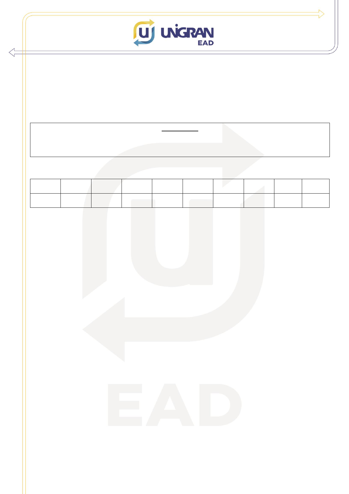 1/4 CENTRO UNIVERSITÁRIO DA GRANDE DOURADOS Curso: Engenharia de Software Semestre: 2º Disciplina: Algoritmos II ATIVIDADE AVALIATIVA ESPECIAL (AAE) 1 - referente as aulas 1 a 4 Professor: Marcos Alves Mariano Observação: Cada Atividade respondida de forma correta terá até 1 ponto por anotação correta Responda Aqui! 1° 2° 3° 4° 5° 6° 7° 8° 9° 10° A D C B D A D D A A 1º) O seguinte algoritmo, chamado ordena, implementa um conhecido método de ordenação para listas sequenciais: Ordena (vet[] inteiro, n inteiro) inicio declare i, j, pos, aux inteiro; para i de 1 até n-1 faça pos <- i; para j de i+1 até n faça se vet[pos] > vet[j] então pos <- j; fimse fimpara se pos ≠ i então aux <- vet[i]; vet[i] <- vet[pos]; vet[pos] <- aux; fimse fimpara fim Se o algoritmo for executado recebendo como parâmetros Ordena([5, 3, 1, 2, 4], 5), quantas trocas são efetuadas em vet[] e em que sentido é feita a ordenação (crescente ou decrescente)? 2/4 a) 4, crescente; b) 6, crescente; c) 5, crescente; d) 4, decrescente. 2º) Sobre as estruturas condicionais é incorreto apenas o que se afirma em: a) Desvio condicional simples é a estrutura básica de controle em quase todas as linguagens de programação. Essa instrução tem por finalidade representar a tomada de uma decisão; b) No caso do desvio condicional encadeados uma determinada ação de um algoritmo somente pode ser executada se um conjunto anterior de condições for verificado; c) Desvio condicional encadeados ocorrem quando necessitamos fazer algumas verificações lógicas de condições sucessivamente; d) Desvio condicional composto é a estrutura de decisão no qual a ação a ser executada depende de uma inspeção ou teste. Ela nos fornece a habilidade de executar um comando composto, se determinada condição for sempre verdadeira. 3º) Sobre as estruturas de repetição é incorreto apenas o que se afirma em: a) Quando uma variável é acumuladora ela tem por característica armazenar dentro de si o resultado acumulado de uma série de valores; b) Os loops contados são quando se conhece previamente quantas vezes o comando composto no interior da construção será executado; c) Loops condicionais são quando se conhece de antemão o número de vezes que o conjunto de comandos no interior do laço será repetido, pelo fato dele estar amarrado a uma condição sujeita a modificação pelas instruções do interior do laço; d) Quando uma variável contadora ela tem por característica armazenar dentro de si um número referente a certa quantidade de elementos ou iterações. 4º) Sobre as estruturas de Matriz é incorreto apenas o que se afirma em: a) Uma Matriz é uma estrutura que possui mais de uma dimensão; b) Sendo Bidimensional, a variável atua como uma grade de linhas e colunas, na qual a intersecção entre uma linha e uma coluna mostra um índice da matriz; c) É válido observar que o mais comum é a matriz de duas dimensões poder se relacionar diretamente com a utilização de tabelas; d) Uma matriz de duas dimensões está sempre fazendo menção a linhas e colunas e é representado por seu nome e seu tamanho (dimensão) entre colchetes. 3/4 5º) Sobre a estrutura de repetição condicional REPITA.... ATE QUE é correto apenas o que se afirma em: a) A estrutura "repita" executa um bloco de comandos até que a condição seja falsa; b) Vale salientar que os comandos dentro do bloco dessa estrutura não serão executados nenhuma vez se a condição for falsa; c) O teste da condição da estrutura "repita" e efetuado no início da estrutura, visto que a comparação se dá antes de entrar no loop do contador; d) A estrutura "repita" executa os comandos enquanto a condição for falsa. Quando essa condição passar a ser verdadeira, a repetição se encerrará. 6º) Sobre registros, assinale a alternativa correta: a) Um registro é um tipo de dados criado pelo próprio programador, a qual são definidos campos a serem preenchidos; b) Todos os campos de um registro devem ser declarados do mesmo tipo; c) Vetores e matrizes não podem ser definidos como campos de um registro; d) É permito declarar somente variáveis do tipo registro. Vetores e matrizes não podem ser declaradas dos tipo registro. 7º) Sobre procedimentos, assinale a alternativa correta: a) Em um programa, os procedimentos obrigatoriamente devem ser definidos após o módulo principal do programa; b) Em um procedimento não é permitida a leitura e escrita de valores, apenas operações lógicas e aritméticas podem ser realizadas; c) Os procedimentos podem ser chamados somente a partir do módulo principal do programa; d) Um procedimento é um módulo que serve para facilitar a manutenção e a compreensão dos programas e para que os subprogramas possam ser reutilizados. 8º) Para tentar descobrir o que a função abaixo faz, um aluno experimentou-a com os valores de entrada 1, 3 e 4 e obteve os seguintes resultados, respectivamente: 4/4 a) -4, 2 e 16; b) 2, 6 e 8; c) 4, -2 e 32; d) 2, -4 e 8. 9º) Considere as duas funções, abaixo, escritas em pseudocódigo, que implementam uma lógica. a) A função iterativa e a função recursiva retornam 1 para valores de N=0 e N=1; b) A função f1 e a função f2 recebem uma variável real e retornam um valor inteiro; c) A função f1 é executada apenas uma vez, já que em seu corpo existe apenas um comando condicional; d) A função recursiva faz cálculos e apresenta resultados totalmente diferentes da função iterativa. 10º) Sobre Funções, assinale a alternativa correta: a) Uma função é similar a um procedimento, porém efetua o retorno de um valor; b) Na definição de uma função não é obrigatório explicitar o tipo do valor a ser retornado; c) Obrigatoriamente o valor retornado por uma função deve ser armazenado em uma variável; d) Um função pode retornar um conjunto de valores organizados em um vetor ou em uma matriz.