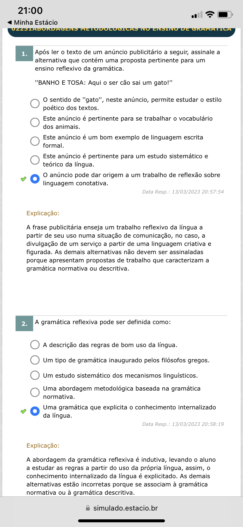 A gramática reflexiva pode ser definida como: Um estudo sistemático dos mecanismos linguísticos. Uma gramática que explicita o conhecimento internalizado da língua. Um tipo de gramática inaugurado pelos filósofos gregos. Uma abordagem metodológica baseada na gramática normativa. A descrição das regras de bom uso da língua.