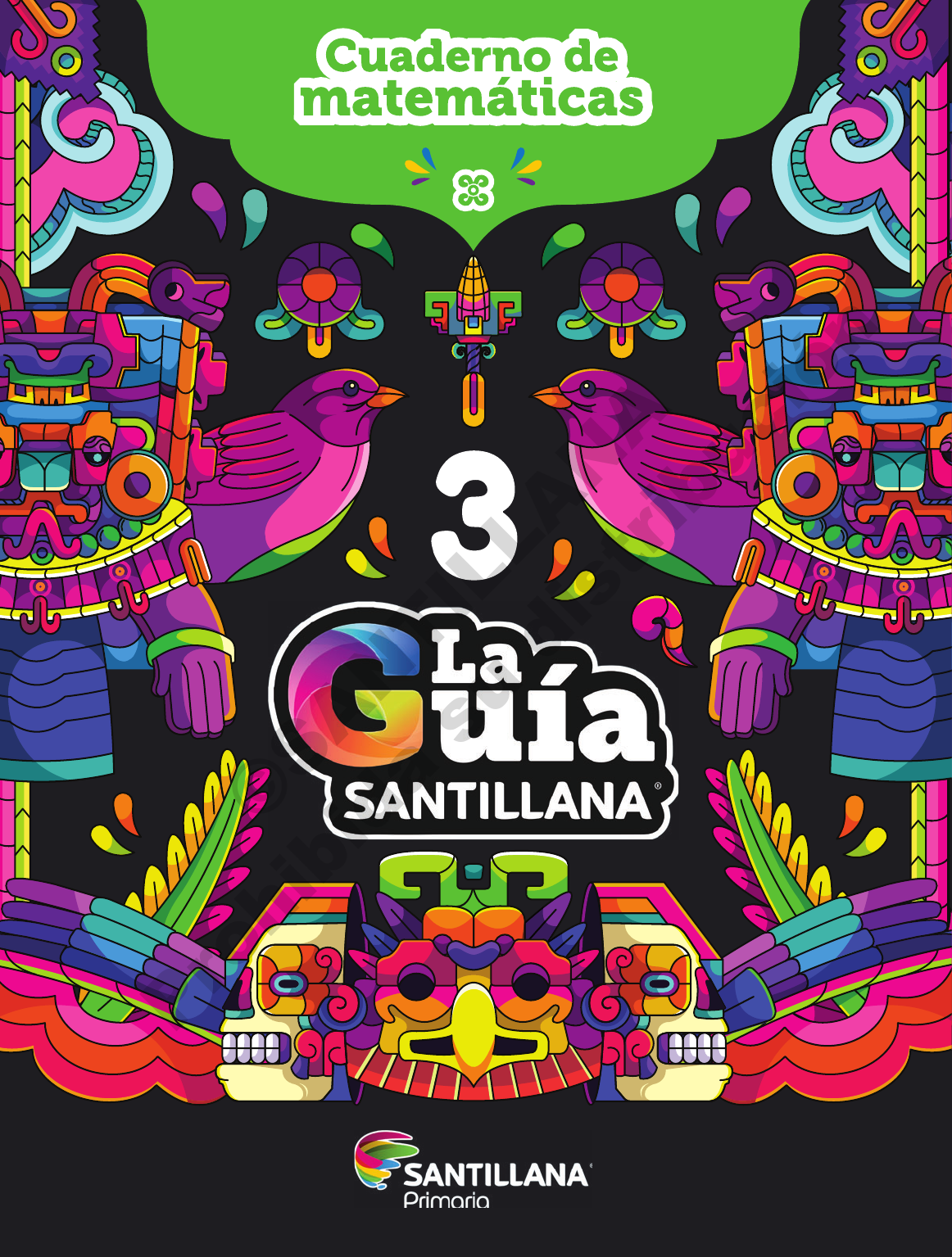 Forros LGS_Matematicas.indd 3 27/06/23 17:42 ©S AN TI LL AN A Pr oh ib id a su d ist rib uc ió n Portadillas_LGS_Matematicas.indd 3 26/06/23 19:58 PRICMAT3LA_p01.indd 1 26/06/23 21:54 ©S AN TI LL AN A Pr oh ib id a su d ist rib uc ió n 1Cuaderno de matemáticasCuaderno de matemáticas Este libro fue elaborado en Editorial Santillana por el equipo de la Dirección de Contenidos de Negocio Público. La presentación y disposición en conjunto y de cada página de Cuaderno de matemáticas 3 son propiedad del editor. Queda estrictamente prohibida la reproducción parcial o total de esta obra por cualquier sistema o método electrónico, incluso el fotocopiado, sin autorización escrita del editor. D. R. © 2023, Educa Inventia, S. A. de C. V. Av. Río Mixcoac núm. 274, piso 2, colonia Acacias, alcaldía de Benito Juárez, Ciudad de México, C. P. 03240 ISBN: 978-607-13-1434-5 Primera edición: junio de 2023 Miembro de la Cámara Nacional de la Industria Editorial Mexicana. Reg. núm. 3074 Impreso en México / Printed in Mexico Dirección de Contenidos Antonio Moreno Paniagua Gerencia de Educación Obligatoria Gabriel Hernández Valverde Gerencia de Diseño Editorial y Arte Digital Humberto Ayala Santiago Gerencia de Desarrollo Pedagógico María Guadalupe Sevilla Cárdenas Autora: Natalia Herrera López Ilustración de portada: Los Metzican Ilustración de interiores: María de Lourdes Guzmán Muñoz, Maricarmen Guzmán Muñoz, Miguel Ángel Chávez Villalpando (Grupo Pictograma) y Nadia Camacho Coordinación editorial: Ma. del Pilar Vergara y Félix Cerón Escobar Editores responsables: Enrique Martínez Sánchez y Ana Elvia Francisco Solano Edición: Ricardo López de Jesús Corrección de estilo: Melissa Viridina Flores Salazar Coordinación de diseño: Haydée Jaramillo Barona Diseño de portada e interiores: Cristian Cedillo Rodríguez Líder de diagramación: Cristian Cedillo Rodriguez Diagramación: Juana Carlos Micete Líder de iconografía: Marissa Eva Arroyo Bautista Iconografía: Dytza Belinda Habib Herrera Retoque digital: Silvia Plata Garibo Fotografía: Shutterstock, Getty Images PRICMAT3LA_p01.indd 2 22/06/23 23:23 ©S AN TI LL AN A Pr oh ib id a su d ist rib uc ió n Presentación Aprender matemáticas te permite desarrollar habilidades que puedes aplicar en diversas situaciones dentro y fuera de la escuela, como resolver problemas, hacer cálculos y tomar decisiones. Para ayudarte en el desarrollo de estas habilidades, ponemos en tus manos el Cuaderno de matemáticas 3, complemento de La Guía Santillana 3. Escenarios. En él se desarrollan los contenidos del programa sintético de Pensamiento matemático del campo formativo Saberes y pensamiento científico. Tu libro está estructurado en cuatro Saberes que contienen diversas Experiencias matemáticas. En ellas encontrarás información conceptual, junto con un conjunto de actividades de aprendizaje diseñadas para fortalecer tus habilidades en matemáticas. Dichas Experiencias se relacionan con situaciones del ámbito de las ciencias naturales. A lo largo de esta obra, encontrarás dos secciones de apoyo. Una es “Demuestra tu talento”, en la que se te presenta un desafío para que pongas a prueba tus habilidades en matemáticas. La otra sección es “Saber más”, y en ella puedes ampliar tus conocimientos sobre los temas de matemáticas tratados. Este libro fue hecho especialmente para ti con la finalidad de que amplíes tus posibilidades de aprendizaje. Esperamos que te sea de gran ayuda durante todo el curso escolar. Los editores 3 PRICMAT3LA_p01.indd 3 22/06/23 23:23 ©S AN TI LL AN A Pr oh ib id a su d ist rib uc ió n Índice Presentación 3 S a b er 1 N ú m er o s Experiencia 1 Ordena con números 6 Experiencia 2 Números de cuatro cifras 8 Experiencia 3 Valor posicional 9 Experiencia 4 Lee y escribe números 10 Experiencia 5 Compara y ordena números 12 Experiencia 6 Recta numérica 13 Experiencia 7 Equivalencias y dinero 14 Experiencia 8 Fracciones con mediciones 16 Experiencia 9 Fracciones y repartos 18 Experiencia 10 La unidad 20 Experiencia 11 Fracciones equivalentes 21 Experiencia 12 Comparación de fracciones 23 Experiencia 13 Décimo y centésimo 25 S a b er 2 S u m a y r es ta Experiencia 14 Sumas 26 Experiencia 15 Sumas con transformación 28 Experiencia 16 Restas 30 Experiencia 17 Restas con transformación 31 Experiencia 18 Problemas de restas 32 Experiencia 19 Cálculo mental de centenas 33 Experiencia 20 Restas números de tres cifras 34 Experiencia 21 Cálculo mental de suma y resta 35 Experiencia 22 Sumas de fracciones 36 Experiencia 23 Resta de fracciones 38 Experiencia 24 Distinto denominador 40 4 PRICMAT3LA_p01.indd 4 22/06/23 23:23 ©S AN TI LL AN A Pr oh ib id a su d ist rib uc ió n S a b er 3 M u lt ip li ca ci ó n y d iv is ió n Experiencia 25 Multiplicaciones 42 Experiencia 26 Algoritmo de la multiplicación 44 Experiencia 27 Cálculo mental de productos 45 Experiencia 28 Repartos equitativos 46 Experiencia 29 Agrupamientos 47 Experiencia 30 Repartir, agrupar y multiplicar 48 Experiencia 31 La división 49 Experiencia 32 Multiplicar para dividir 51 Experiencia 33 Figuras geométricas 52 Experiencia 34 Construcción de prismas 54 Experiencia 35 Retículas para trazar 56 Experiencia 36 Simetría 57 Experiencia 37 Clasificación de figuras 58 S a b er 4 Fi g u ra s y cu er p os g eo m ét ri co s Experiencia 38 Medir longitud 60 Experiencia 39 Medir masa 62 Experiencia 40 Medir capacidad 64 Experiencia 41 Horas, minutos y el reloj 66 S a b er 5 M ed id a Experiencia 42 Tablas de frecuencias 68 Experiencia 43 Pictogramas 70S a b er 6 D a to s 5 PRICMAT3LA_p01.indd 5 22/06/23 23:23 ©S AN TI LL AN A Pr oh ib id a su d ist rib uc ió n 1 Experiencia Saber 1 Ordena con números Números Aprendizaje: Identifica y usa los números ordinales para indicar el lugar que ocupan dentro de una colección de hasta diez elementos. 1. Observa las imágenes y ordénalas con números ordinales de a