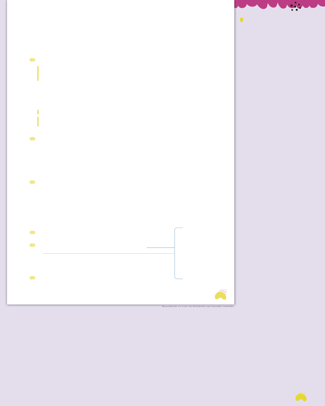 31 Reprodução do Livro do Estudante em tamanho reduzido. A linguagem no conto popular e as marcas da oralidade As atividades têm o objetivo de exer- citar a habilidade EF69LP55, com o re- conhecimento da variedade da língua falada, o conceito de norma-padrão e o de preconceito linguístico; a ha- bilidade EF69LP47, ao propor a aná- lise dos efeitos de sentido decorrentes dos tipos de discurso, dos verbos de enunciação e das variedades linguís- ticas no discurso direto; e a habilida- de EF67LP36, ao propor a análise de outros recursos expressivos adequados ao gênero textual. Neste tópico, serão analisadas no conto popular as variedades linguís- ticas expostas no discurso direto em- pregado. Uso de exageros e repetições como efeito estilístico As atividades têm o objetivo de exer- citar a habilidade EF69LP54, de anali- sar os efeitos de sentido decorrentes do emprego de palavras e expressões denotativas e conotativas que funcio- nam como modificadores, de forma a levar o estudante a perceber a função de cada uso na caracterização dos es- paços, tempos, personagens e ações próprios do gênero conto popular. Reprodução do Livro do Estudante em tamanho reduzido A linguagem no conto popular e as marcas da oralidade Você já sabe que o conto popular é transmitido de boca em boca ao longo do tempo, por isso é comum conservar as marcas da oralidade, mesmo quando registrado por escrito. Confira a seguir algumas dessas marcas. Redução de palavras 1 Releia a última fala do roceiro, observando o que está destacado: — Cês não ouviram um barulho de noite? Pois era eu que me levantei pra comer o queijo. Como vocês estavam no céu, achei que não precisavam mais do queijo. Cês na fala mais informal é a forma reduzida para a palavra vocês e pra é a forma reduzida de para. a) Copie no caderno as formas reduzidas nestas falas do padre e do fazen- deiro. Depois, escreva essas palavras de modo completo, sem redução. — Sou servido um gole desta água. Pra matar minha sede. — O céu. Você sonhou com a escada pro céu. Eu sonhei que já estava lá. Conforme combinado, o queijo é meu. b) Na sua opinião, por que o autor escreve pra e não para e pro e não para o? 2 Reduções de palavras e expressões são comuns na fala. Observe como a palavra senhor, uma maneira respeitosa de tratar uma pessoa, é empre- gada de forma reduzida em diversas regiões brasileiras em diferentes tem- pos, mas com o mesmo sentido: senhor: sinhô, siô, sô, nhô Agora transcreva do conto lido uma fala em que a palavra senhor é usada em uma dessas formas reduzidas e com repetição de sílaba. 3 Observe como era a forma de tratar uma pessoa até chegar à forma como a utilizamos hoje: você. vossa mercê > vossemecê > vosmecê > você a) Copie do conto lido uma frase falada pelo fazendeiro em que aparece uma palavra semelhante a essas formas de tratar uma pessoa. b) Copie uma fala do roceiro em que ele usa uma forma reduzida para a palavra está. Uso de exageros e repetições como efeito estilístico 1 Transcreva do conto uma frase que indica que o padre e o fazendeiro esta- vam com muita sede. 2 Copie no caderno palavras retiradas do conto e utilizadas no grau aumentativo ou diminutivo para produzir um efeito de sentido que exagera o fato de ser ou estar: ⓿ medroso ⓿ pequeno ⓿ junto ⓿ sem jeito ⓿ iluminado 3 Copie do conto uma frase em que a repetição da palavra amplia o signifi- cado do que se diz. Dizemos que as palavras estão no aumentativo quando terminam com -ão, -ona, etc. e exprimem tamanho aumentado ou maior intensidade. E dizemos que elas estão no diminutivo quando terminam com -inho, -inha, etc. e exprimem tamanho diminuído ou menor intensidade. 1a. Padre: pra (para); fazendeiro: pro (para o). 1b. Espera-se que os estudantes percebam que se trata de uma escolha por um registro mais informal para retratar com mais propriedade as falas dos personagens e suas identidades. 2. Possibilidades: “— Um golinho d’água, nhonhô? Tá fresca, fresca...” “— Gozado, nhonhô – disse o roceiro. – É mesmo aí, nesse quebradinho, que acostumo de beber.” “— Já que vosmicê tanto insiste, me dê cá a saborosa.“ “— Um golinho d’água, nhonhô? Tá fresca, fresca...“ “O padre e o fazendeiro morrendo de sede.” medrosão pequetitinho juntinho sem jeitão iluminadão 3. Possibilidades: “— Andaram que andaram.” “— Anda que anda, só os dois proseando.” “— Um golinho d’água, nhonhô? Tá fresca, fresca...” “— [...] Furava as nuvens lá em riba... Ia subindo, subindo...” 31 022-051_Telaris6_LP_LE_MPU_U01_PNLD24.indd 31022-051_Telaris6_LP_LE_MPU_U01_PNLD24.indd 31 07/08/2022 17:0107/08/2022 17:01 32 Reprodução do Livro do Estudante em tamanho reduzido. Uso de expressões da linguagem popular Atividade 2 Se considerar oportuno, explorar ou- tras expressões da linguagem popular presentes no conto: “Anda que anda, só os dois proseando.” (conversando); “Furava as nuvens lá em riba.” (em ci- ma); “Engoliram um café com vento... E pé na estrada.” (ir embora para outro lugar, viajar; no contexto tem o sentido de “prosseguir viagem”). Atividade 3 Estimular a troca de impressões que a análise da linguagem e da constru- ção desse conto provocou. É importan- te que os estudantes avaliem que efei- tos de sentido essas escolhas de lin- guagem e de construção na escrita do texto provocam nos possíveis leitores, expressando avaliação sobre o texto li- do e estabelecendo preferências pelo gênero, tema ou autor, o que trabalha a habilidade EF67LP28. Se necessá- rio, ajudá-los a perceber que o empre- go de palavras e expressões da lingua- gem popular, feito com propriedade pelo autor, pode aproximar a forma da narrativa registrada por escrito à ma- neira como ela poderia ter sido ouvida. Além disso, o uso dessas palavras e ex- pressões é uma estratégia para manter a autenticidade do conto, or