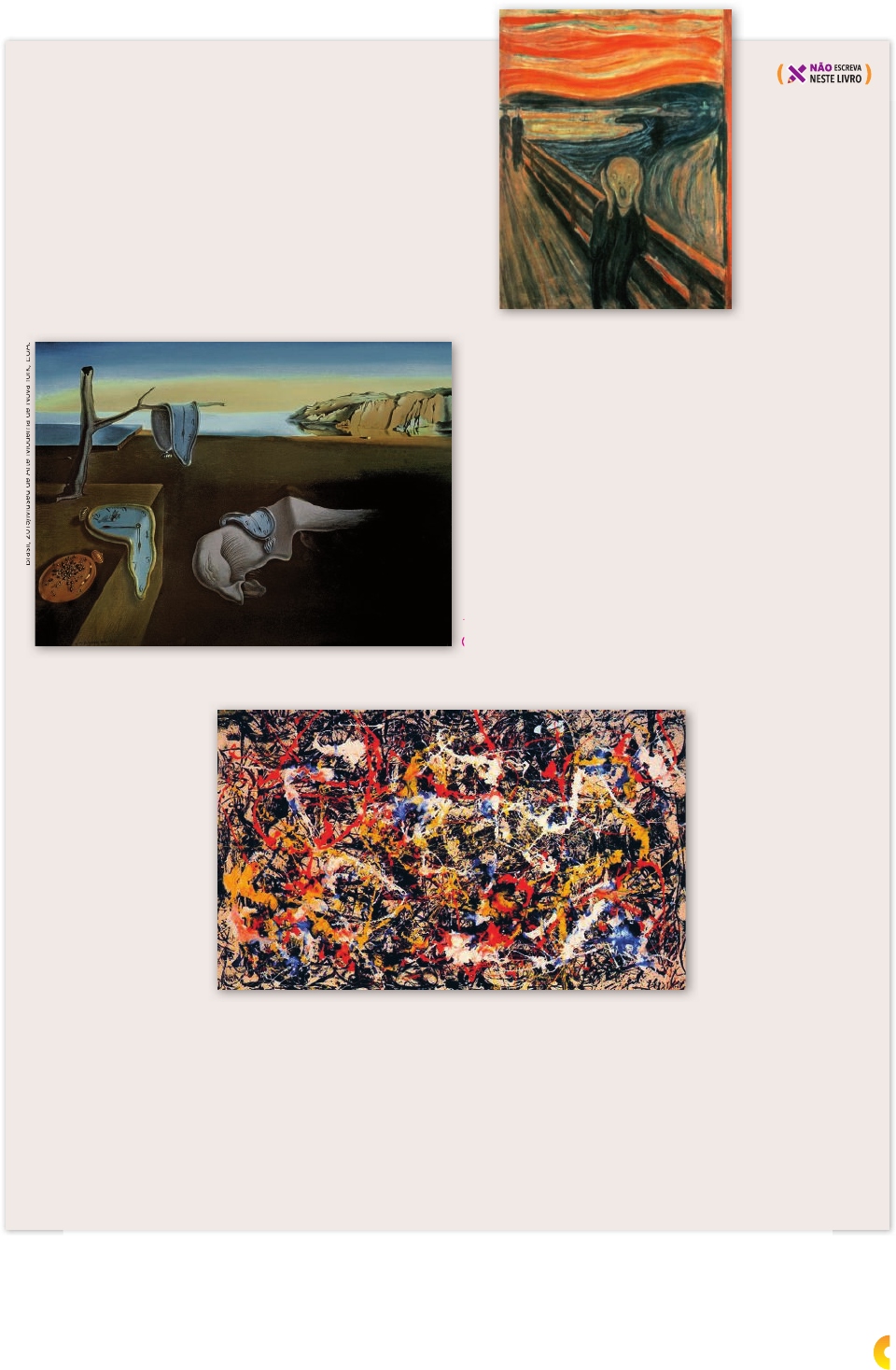 137 2. Talk to a classmate. Which painting included in the quiz do you like best? Why? What does it represent to you? Respostas pessoais IV. Edvard Munch made this painting in 1893. What is its title or name? a. The Scream X b. Starry Night c. The Kiss d. The Bridge V. Salvador Dalí made this painting in 1931. It belongs to which cultural and artistic movement? a. Surrealism X b. Contemporary Art c. Renaissance d. Pop Art VI. This painting, made by Jackson Pollock, is an example of which style? The Scream, Edvard Munch, 1893. Oil, tempera and pastel on cardboard, 91 cm × 73.5 cm. Convergence, Jackson Pollock, 1952. Oil on canvas, 237 cm × 390 cm. The Persistence of Memory, Salvador Dalí, 1931. Oil on canvas, 24 cm × 33 cm. R e p ro d u ç ã o /A lb ri g h t- K n o x A rt G a lle ry , B u ff a lo , N o v a Y o rk , E U A . © S a lv a d o r D a lí, F u n d a c ió n G a la -S a lv a d o r D a lí/ A U T V IS , B ra s il, 2 01 9 /M u s e u d e A rt e M o d e rn a d e N o va Y o rk , E U A . R e p ro d u ç ã o /M u s e u N a c io n a l d e A rt e , O s lo , N o ru e g a a. Op art, a style of visual art that uses optical illusions. b. Pointillism, a technique of painting in which small dots of color are applied in patterns to form an image. c. Action painting or gestural abstraction, a style in which paint is spontaneously splashed onto the canvas. X d. Photorealism, a genre in which an artist studies a photograph and then tries to recreate the image as realistically as possible in another medium. 2. No Manual do Professor, você encontra orientações para a con- dução desta atividade. Se houver oportunidade, convide o professor de Arte para participar da aula em que as atividades do Let’s Start serão trabalhadas. Essa participação ajudará na contextualização das obras e dos movimentos artísticos apresentados no quiz, estimulando uma análise mais crítica do conteúdo abordado. The Persistence of Memory Oil on canvas, 24 cm × 33 cm. B ra s il, 2 01 9 /M u s e u d e A rt e M o d e rn a d e N o va Y o rk , E U A . VU_INGLES_Amadeu_g21Sa_135a148_U9_LA.indd 137VU_INGLES_Amadeu_g21Sa_135a148_U9_LA.indd 137 01/09/2020 11:5201/09/2020 11:52 Reading Before You Read 1. Observe the text below. Who is the man in the picture? 2. Talk to a classmate. In your notebook, write down three things you know about this man. As You Read Read the text and do the activities. ReadingReadingReading EM13LGG403 Leonardo da Vinci 2. Peça aos estudantes que pensem, antes de ler o texto, em informações que sabem so- bre a vida e a obra de Leonardo da Vinci. Ao fi nal da atividade, escolha alguns estudantes para relatar o que escreveram sobre o artista e anote suas contribui- ções no quadro. Após a leitura do texto, pergunte-lhes se algo do que está no quadro foi men- cionado no texto. Resposta pessoal Peça aos estudantes que façam a leitura do texto e realizem as atividades a seguir. https://www.biography.com/artist/leonardo-da-vincihttps://www.biography.com/artist/leonardo-da-vinci Leonardo da Vinci (1452-1519) Leonardo da Vinci was a Renaissance artist and engineer, known for paintings like “The Last Supper” and “Mona Lisa”, and for inventions like a fl ying machine. Who was Leonardo da Vinci? [...] Gifted with a curious mind and a brilliant intellect, Da Vinci studied the laws of science and nature, which greatly informed his work. [...] Early Life Da Vinci was born in a farmhouse outside the village of Anchiano in Tuscany, Italy, on April 15, 1452. [...] Education Young Da Vinci received little formal education beyond basic reading, writing and mathematics instruction, but his artistic talents were evident from an early age. Around the age of 14, Da Vinci began a lengthy apprenticeship with the noted artist Andrea del Verrocchio in Florence. He learned a wide breadth of technical skills including metalworking, leather arts, carpentry, drawing, painting and sculpting. [...] Flying Machine Always a man ahead of his time, Da Vinci appeared to prophesy the future with his sketches of devices that resemble a modern-day bicycle and a type of helicopter. R e p ro d u ç ã o /w w w .b io g ra p h y. c o m R e p ro d u ç ã o /w w w .b io g ra p h y. c o m B a n c o d e i m a g e n s /A rq u iv o d a e d it o ra 138 VU_INGLES_Amadeu_g21Sa_135a148_U9_LA.indd 138VU_INGLES_Amadeu_g21Sa_135a148_U9_LA.indd 138 01/09/2020 11:5201/09/2020 11:52