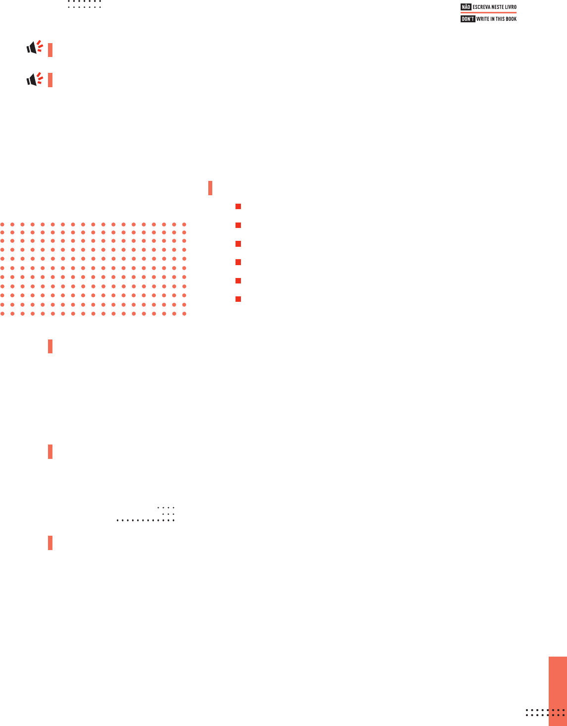 Listening 3 Listen to the audio and check if your predictions in activity 2 were correct. 4 What’s the aim of the PSA? Listen to it again and write the correct option in your notebook. A Show the day-by-day of a regular family. B Raise awareness about domestic violence. X C Present the police service and its effectiveness. D Complain about the delivery services in the suburban. No. 18 Personal answer. No. 18 6 In your notebook, write the correct statements based on the audio. A The woman orders two different pizzas. B The woman is alone at the house. C There aren’t weapons at the woman’s house. X D There is an offi cer about a mile from the woman’s house. X 7 How does this story end? In pairs, create an ending to the story and share it with your teacher and classmates. Post-listening 8 Get together in small groups and answer the following questions. A How did you feel when you listened to the audio? Why? B Go back to activity 1. Which elements described in the text did you identify in the PSA that you listened to? C This PSA was aired during the Super Bowl, a sports event most Americans watch on TV, making it the most important marketing event of the year in the US. Why do you think they did that? D In your opinion, what are the benefi ts of a PSA dedicated to raise awareness about violence against women? Personal answers. 5 In your notebook, order the events according to the audio. ( ) The woman confi rms in code she’s in trouble. 5 ( ) The operator doesn’t understand what’s going on. 2 ( ) The operator sends an offi cer to the woman’s house. 6 ( ) The operator notices something is wrong and asks her. 4 ( ) The woman calls 911 and pretends she is ordering a pizza. ( ) The woman continues the conversation, providing more information. 3 1 213 VU_INGLES_Julia_g21At_206a223_U12_LA.indd 213VU_INGLES_Julia_g21At_206a223_U12_LA.indd 213 9/27/20 11:20 AM9/27/20 11:20 AM LANGUAGE ANALYSIS 1 Read the following sentence from Vocabulary to answer the questions. Write the answers in your notebook. If you witness domestic violence in public, it’s important to take into account your own safety as well as the survivor’s. A The verb witness in the fi rst part of the sentence could be replaced without changing the meaning of the sentence by… • participate • see X B A proper translation for the second part of the sentence, beginning with “it’s important”, would be: • é importante levar em consideração a sua segurança, assim como a segurança do sobrevivente. X • é importante se dar conta da situação e da sobrevivência. C It is correct to say that the sentence… • is about past events. • is an example of a condition and its results. X 2 Based on your answers to the previous activities, complete the sentences with the correct option. Write the answer in your notebook. condition; results CONDITIONAL SENTENCES I A conditional sentence has two clauses: the if clause and the main clause. The if clause presents a condition / results for an action to happen, while the main clause presents the condition / results of meeting that condition. 3 Read two sentences from Vocabulary and one item from activity 6 in Read on. Write T (true) or F (false) about them in your notebook. I You might even record the incident with your phone to pass to law enforcement if the survivor chooses to press charges. II If you are e ver concerned for the survivor’s immediate safety (or your own), you do have the right to contact the police. III If you are a woman, you will probably face some kind of violence. A Sentences I, II and III are conditional sentences. T B Sentences I and III refer to future situations. We can see proof of that because there is will and might in the main clause. T C Sentences I, II and III present conditions that are impossible in real life. F D Sentence II is like the sentence in activity 1: the if clause and the main clause are in the Simple Present. T EM13LGG403 K o lo n k o /S h u tt e rs to c k 214 VU_INGLES_Julia_g21At_206a223_U12_LA.indd 214VU_INGLES_Julia_g21At_206a223_U12_LA.indd 214 9/27/20 11:20 AM9/27/20 11:20 AM