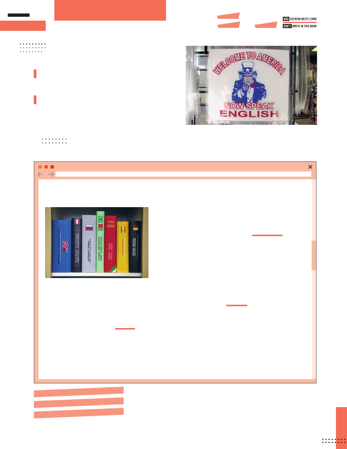 GOING FURTHER Reading Pre-reading 1 Look at the text in Reading and answer: What is it about? 2 Observe the image on the right carefully and answer: Is it related to the text Are You a Victim of Language Discrimination? Justify your answer. Personal answer. It is about language discrimination. h tt p :/ /w w w .c g p g re y. c o m /C re a ti v e C o m m o n s 2 .0 Are you a victim of language discrimination? Delf’n Carbonell, Contributor […] Historically, languages have been used as excuses to discriminate, and many tongues have been looked down upon, abused, proscribed and even banned. To this day we all know that there are prestige languages and others that are not, whose speakers become the target of discrimination. Those in command, not necessarily the majority, call the shots, if you allow the expression. […] Our attitude towards people changes as soon as we hear them speak. If we detect some sort of an accent, be it French, Southern, Spanish, Bostonian, British, Arabic, Italian... we immediately form an opinion of the speaker even if he has only uttered a few sounds. We will be inclined to like them or dislike them, even though we know little about their personalities. This I call language discrimination: to judge others and often condemn them because of the way they handle the language. This is evident even on the phone. Language discrimination is always active in society and appears in the labor market especially. We are judged by our grammar, our vocabulary, idiomatic expressions, slang and accent. […] People are people, regardless (or is it irregardless?) of the way they speak the language. The economic and cultural elite are the ones who make language rules and dictate what is right and what is wrong, and we must accept this fact... ¿no? https://m.huffpost.com/us/entry/9491452/amp B a n c o d e i m a g e n s /A rq u iv o d a e d it o ra Proscribed: proibido Utter: balbuciar Handle: lidar com EM13LGG302 EM13LGG102 EM13LGG303 CARBONELL, Delfín. Are You a Victim of Language Discrimination? Huffpost. Available at: https://m.huffpost.com/us/entry/9491452/amp. Accessed on: Aug. 24, 2020. L o ic B e rn a rd /E + /G e tt y I m a g e s 193 VU_INGLES_Julia_g21At_188a205_U11_LA.indd 193VU_INGLES_Julia_g21At_188a205_U11_LA.indd 193 9/27/20 12:15 PM9/27/20 12:15 PM 3 In your notebook, write the option that summarizes the message of the text. A Language discrimination only takes place in the workplace context. B Generally people do not discriminate against speakers with foreign accents. C The concept of language discrimination means judging someone by the way he/she speaks. X 4 Read the following sentence that was taken from the text. In your notebook, transcribe the synonym that can replace the phrasal verb in bold. We will be inclined to like them or dislike them, even though we know little about their personalities. A get around to B keep to C point to D predisposed to X 5 According to the author of the text, the opinion about someone may change as that person speaks. Choose the right sentence extracted from the text that illustrates the author’s point of view. Use your notebook to register your answer. A “Those in command, not necessarily the majority, call the shots […]” B “The economic and cultural elite are the ones who make language rules and dictate what is right and what is wrong […]” C “Historically, languages have been used as excuses to discriminate […]” D “Our attitude towards people changes as soon as we hear them speak.” X 6 The following terms were taken from the text and they are related to Linguistics. In your notebook, match them with their respective meanings. I grammar II vocabulary III idiomatic expressions IV slang V accent A uma expressão ou palavra usada por um grupo específi co em contexto informal. IV B modo característico de pronunciar as palavras: indica a que região, país ou classe social o falante pertence. V C expressões com signifi cado diferente do signifi cado das palavras que as compõem separadamente. III D conjunto de regras que padronizam o uso de um idioma. I E o conjunto de palavras que existem em um idioma. II 194 VU_INGLES_Julia_g21At_188a205_U11_LA.indd 194VU_INGLES_Julia_g21At_188a205_U11_LA.indd 194 9/27/20 12:15 PM9/27/20 12:15 PM