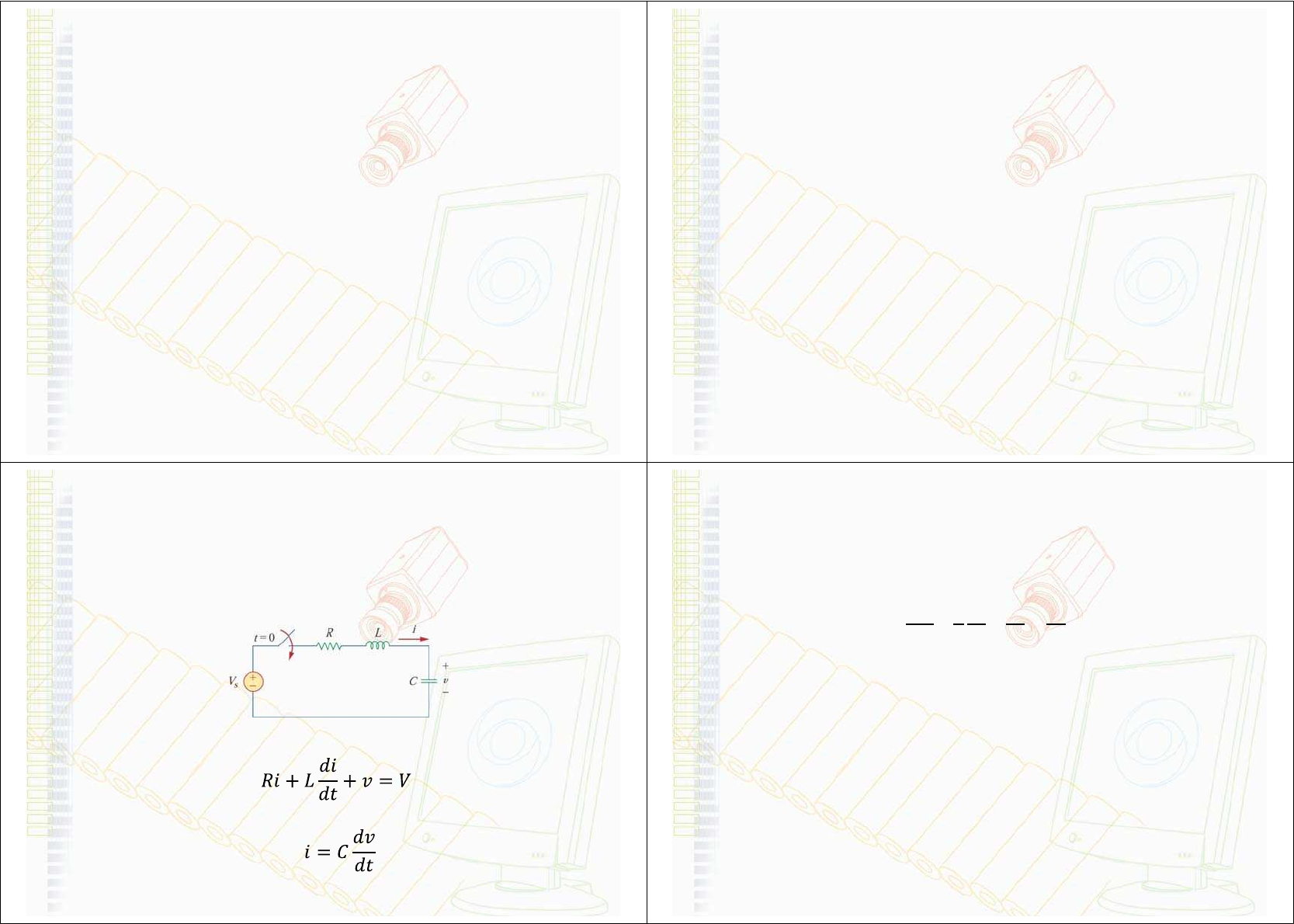 Circuitos Elétricos Circuitos de Segunda Ordem – Parte 2 Alessandro L. Koerich Engenharia de Computação Pontifícia Universidade Católica do Paraná (PUCPR) Introdução • Como vimos nos circuitos de 1ª ordem, a resposta ao degrau é obtida através da aplicação abrupta de uma fonte de corrente contínua. • Veremos agora a resposta ao degrau para os circuitos de 2ª ordem. Circuito RLC-Série - Resposta ao Degrau • Considerando o circuito RLC-Série, queremos encontrar a tensão v devido à aplicação abrupta de uma fonte de tensão contínua. • Aplicando a LTK no laço para t > 0, temos: mas Circuito RLC-Série - Resposta ao Degrau • Substituindo i e dividindo por LC, temos: + + = a qual tem a mesma forma característica das equações vistas anteriormente. Mais especificamente, os coeficientes são os mesmos, mas a variável é diferente. • Logo, a equação característica para o circuito RLC-Série não é afetada pela presença da fonte cc. Circuito RLC-Série - Resposta ao Degrau • A solução da equação anterior, possui dois componentes: a resposta transitória e a resposta em regime permanente , isto é: • A resposta transitória é o componente da resposta total que se extingue com o tempo. A forma dela é mesma do circuito RLC sem fonte, ou seja: – superamortecido: – criticamente amortecido: – sub-amortecido: Circuito RLC-Série - Resposta ao Degrau • A resposta em regime permanente é o valor final de Para o circuito, o valor da tensão final no capacitor é a mesma da fonte de tensão , portanto: • Então, as soluções completas para os casos são: – superamortecido: = + + – criticamente amortecido: = + + – sub-amortecido: = + + Circuito RLC-Série - Resposta ao Degrau • As constantes A1 e A2 podem ser determinadas a partir das condições iniciais para v(0) e dv(0)/dt. • Uma vez determinada a tensão no capacitor v(t), outros valores podem ser encontrados. Por exemplo: – Corrente no capacitor: = / = = – Tensão no resistor: = – Tensão no indutor: = / Circuito RLC-Série - Resposta ao Degrau • Exemplos: Circuito RLC-Paralelo - Resposta ao Degrau • Considerando o circuito RLC-Paralelo, queremos encontrar a corrente i devido à aplicação abrupta de uma corrente contínua. • Aplicando a LCK no nó superior para t > 0, temos: mas Circuito RLC-Paralelo - Resposta ao Degrau • Substituindo v e dividindo por LC, temos: + + = a qual tem a mesma forma característica das equações vistas anteriormente. • A solução completa consiste na resposta transitória e na resposta em regime permanente: – A resposta transitória é mesma vista anteriormente. – A resposta em regime permanente é o valor final de i. Para o circuito RLC-Paralelo é o valor final da corrente através do indutor que é o mesmo da fonte de corrente (IS) Circuito RLC-Paralelo - Resposta ao Degrau • Então: – superamortecido = + + – criticamente amortecido= + + – sub-amortecido= + + • As constantes A1 e A2 podem ser determinadas a partir das condições iniciais para i e di/dt. Circuito RLC-Paralelo - Resposta ao Degrau • Uma vez determinada a corrente no indutor i(t), outros valores podem ser encontrados. Por exemplo: – Tensão no indutor: = / = = – Corrente no resistor: = / – Corrente no capacitor: = / Circuito RLC-Paralelo - Resposta ao Degrau • Exemplos: Circuito Gerais de 2ª Ordem • Dado um circuito de 2a ordem, determinamos sua resposta ao degrau x(t) (tensão ou corrente), através dos seguintes passos: 1. Determinar as condições iniciais x(0) e dx(0)/dt e o valor final x(∞). 2. Desligar as fontes independentes e encontrar a forma da resposta transitória xt(t) aplicando a LCK e a LTK. Uma vez obtida a equação diferencial de 2a ordem, determinar suas raízes características. 3. Obter a resposta em regime permanente como:= ∞ 4. A resposta total pode ser encontrada pela soma da resposta transitória e da resposta em regime permanente:= + 5. Determinar as constantes associadas à resposta transitória impondo as condições iniciais x(0) e dx(0)/dt encontradas em 1.
