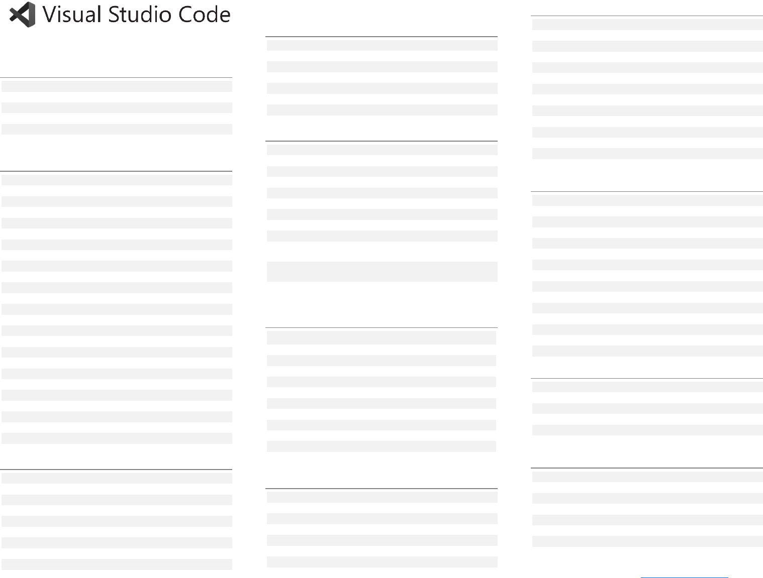 General Ctrl+Shift+P, F1 Show Command Palette Ctrl+P Quick Open, Go to File… Ctrl+Shift+N New window/instance Ctrl+Shift+W Close window/instance Ctrl+, User Settings Ctrl+K Ctrl+S Keyboard Shortcuts Basic editing Ctrl+X Cut line (empty selection) Ctrl+C Copy line (empty selection) Alt+ ↑ / ↓ Move line up/down Shift+Alt + ↓ / ↑ Copy line up/down Ctrl+Shift+K Delete line Ctrl+Enter Insert line below Ctrl+Shift+Enter Insert line above Ctrl+Shift+\ Jump to matching bracket Ctrl+] / [ Indent/outdent line Home / End Go to beginning/end of line Ctrl+Home Go to beginning of file Ctrl+End Go to end of file Ctrl+↑ / ↓ Scroll line up/down Alt+PgUp / PgDn Scroll page up/down Ctrl+Shift+[ Fold (collapse) region Ctrl+Shift+] Unfold (uncollapse) region Ctrl+K Ctrl+[ Fold (collapse) all subregions Ctrl+K Ctrl+] Unfold (uncollapse) all subregions Ctrl+K Ctrl+0 Fold (collapse) all regions Ctrl+K Ctrl+J Unfold (uncollapse) all regions Ctrl+K Ctrl+C Add line comment Ctrl+K Ctrl+U Remove line comment Ctrl+/ Toggle line comment Shift+Alt+A Toggle block comment Alt+Z Toggle word wrap Navigation Ctrl+T Show all Symbols Ctrl+G Go to Line... Ctrl+P Go to File... Ctrl+Shift+O Go to Symbol... Ctrl+Shift+M Show Problems panel F8 Go to next error or warning Shift+F8 Go to previous error or warning Ctrl+Shift+Tab Navigate editor group history Alt+ ← / → Go back / forward Ctrl+M Toggle Tab moves focus Search and replace Ctrl+F Find Ctrl+H Replace F3 / Shift+F3 Find next/previous Alt+Enter Select all occurences of Find match Ctrl+D Add selection to next Find match Ctrl+K Ctrl+D Move last selection to next Find match Alt+C / R / W Toggle case-sensitive / regex / whole word Multi-cursor and selection Alt+Click Insert cursor Ctrl+Alt+ ↑ / ↓ Insert cursor above / below Ctrl+U Undo last cursor operation Shift+Alt+I Insert cursor at end of each line selected Ctrl+L Select current line Ctrl+Shift+L Select all occurrences of current selection Ctrl+F2 Select all occurrences of current word Shift+Alt+→ Expand selection Shift+Alt+← Shrink selection Shift+Alt + (drag mouse) Column (box) selection Ctrl+Shift+Alt + (arrow key) Column (box) selection Ctrl+Shift+Alt +PgUp/PgDn Column (box) selection page up/down Rich languages editing Ctrl+Space, Ctrl+I Trigger suggestion Ctrl+Shift+Space Trigger parameter hints Shift+Alt+F Format document Ctrl+K Ctrl+F Format selection F12 Go to Definition Alt+F12 Peek Definition Ctrl+K F12 Open Definition to the side Ctrl+. Quick Fix Shift+F12 Show References F2 Rename Symbol Ctrl+K Ctrl+X Trim trailing whitespace Ctrl+K M Change file language Editor management Ctrl+F4, Ctrl+W Close editor Ctrl+K F Close folder Ctrl+\ Split editor Ctrl+ 1 / 2 / 3 Focus into 1st, 2nd or 3rd editor group Ctrl+K Ctrl+ ←/→ Focus into previous/next editor group Ctrl+Shift+PgUp / PgDn Move editor left/right Ctrl+K ← / → Move active editor group File management Ctrl+N New File Ctrl+O Open File... Ctrl+S Save Ctrl+Shift+S Save As... Ctrl+K S Save All Ctrl+F4 Close Ctrl+K Ctrl+W Close All Ctrl+Shift+T Reopen closed editor Ctrl+K Enter Keep preview mode editor open Ctrl+Tab Open next Ctrl+Shift+Tab Open previous Ctrl+K P Copy path of active file Ctrl+K R Reveal active file in Explorer Ctrl+K O Show active file in new window/instance Display F11 Toggle full screen Shift+Alt+0 Toggle editor layout (horizontal/vertical) Ctrl+ = / - Zoom in/out Ctrl+B Toggle Sidebar visibility Ctrl+Shift+E Show Explorer / Toggle focus Ctrl+Shift+F Show Search Ctrl+Shift+G Show Source Control Ctrl+Shift+D Show Debug Ctrl+Shift+X Show Extensions Ctrl+Shift+H Replace in files Ctrl+Shift+J Toggle Search details Ctrl+Shift+U Show Output panel Ctrl+Shift+V Open Markdown preview Ctrl+K V Open Markdown preview to the side Ctrl+K Z Zen Mode (Esc Esc to exit) Debug F9 Toggle breakpoint F5 Start/Continue Shift+F5 Stop F11 / Shift+F11 Step into/out F10 Step over Ctrl+K Ctrl+I Show hover Integrated terminal Ctrl+` Show integrated terminal Ctrl+Shift+` Create new terminal Ctrl+C Copy selection Ctrl+V Paste into active terminal Ctrl+↑ / ↓ Scroll up/down Shift+PgUp / PgDn Scroll page up/down Ctrl+Home / End Scroll to top/bottom Keyboard shortcuts for Windows Other operating systems’ keyboard shortcuts and additional unassigned shortcuts available at aka.ms/vscodekeybindings http://aka.ms/vscodekeybindings