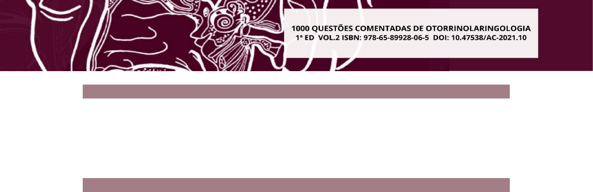 <p>25</p><p>CAPÍTULO II – SEMIOLOGIA OTORRINOLARINGOLÓGICA</p><p>Victor Eulálio Sousa Campelo</p><p>Luana Alves Mendonça</p><p>Maria Carolina de Negreiros Feitosa</p><p>DOI-Capítulo: 10.47538/AC-2021-10.02</p><p>QUESTÕES</p><p>1. (FUNRIO – Rio de Janeiro– 2017) Sobre o teste de Rinne, é correto afirmar que:</p><p>a) Com a audição normal, a via aérea é menos sensível que a óssea; sendo assim, a</p><p>percepção do som será maior quando o diapasão estiver localizado à frente do trago (via</p><p>aérea). Essa condição é denominada Rinne positivo.</p><p>b) Com a audição normal, a via aérea é mais sensível que a óssea; sendo assim, a</p><p>percepção do som será maior quando o diapasão estiver localizado à frente do trago (via</p><p>aérea). Essa condição é denominada Rinne positivo.</p><p>c) Perdas auditivas neurossensoriais, o teste de Rinne será sempre negativo.</p><p>d) No caso das perdas condutivas, a percepção auditiva por via óssea passa a ser pior que</p><p>a por via aérea.</p><p>e) Em pacientes com otosclerose, a tendência é o Rinne deixar de ser negativo quanto</p><p>mais grave for o diapasão utilizado.</p><p>2. (EBSERH/HUJB – UFCG – 2017) Utilizando-se o diapasão, qual das situações a seguir</p><p>indica perda auditiva condutiva unilateral à esquerda?</p><p>a) Via aérea direita e esquerda semelhantes, via óssea melhor que via aérea à direita.</p><p>b) Via aérea direita e esquerda semelhantes, teste de Weber lateralizando para direita.</p><p>c) Via aérea pior à esquerda, via óssea melhor que via aérea à esquerda.</p><p>d) Via aérea pior à esquerda, teste de Weber lateralizando para direita.</p><p>e) Via aérea pior à esquerda, via óssea pior que via aérea bilateralmente.</p><p>3. Na perda auditiva neurossensorial, o teste de Rinne apresenta condução aérea:</p><p>a) Maior do que a condução óssea.</p><p>b) Menor do que a condução óssea.</p><p>c) Igual à condução óssea.</p><p>d) Menor ou igual à condução óssea.</p><p>e) Ausente e condução óssea normal.</p><p>4. Durante a anamnese de um paciente com queixa de perda auditiva o fator mais</p><p>importante a ser pesquisado para o diagnóstico diferencial entre perda auditiva induzida</p><p>por ruído (PAIR) e trauma acústico é:</p><p>a) Histórico clínico-ocupacional.</p><p>b) Identificação.</p><p>c) Resultado de exames audiológicos.</p><p>d) Histórico familiar.</p><p>e) Sintomatologia.</p>