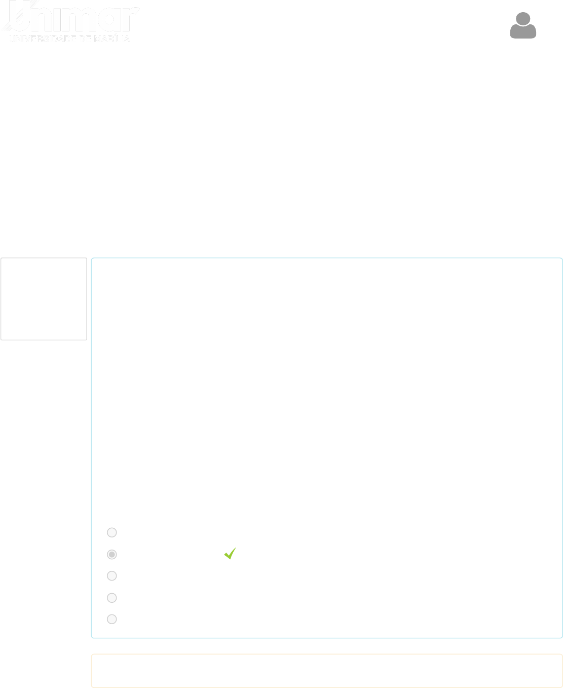 <p>Robersval Dantas da Silva (Robersval Dantas)</p><p>Painel Engenharias M2.23 | Física Geral e Experimental I - EAD Atividade de Estudo 1 </p><p>AE1 - Atividade de Estudo 1</p><p>Questão 1</p><p>Correto</p><p>Atingiu 1,00 de</p><p>1,00</p><p>Iniciado em sábado, 13 Mai 2023, 17:10</p><p>Estado Finalizada</p><p>Concluída em sábado, 13 Mai 2023, 17:23</p><p>Tempo empregado 13 minutos 14 segundos</p><p>Avaliar 5,00 de um máximo de 5,00(100%)</p><p>Na Física, considerando todas as diversas grandezas com as quais trabalhamos, pode-</p><p>se dividí-las em dois grandes grupos: as grandezas vetoriais, que podem ser</p><p>representadas por vetores, e as escalares, que não podem ser representadas</p><p>vetorialmente.</p><p>A seguir estão apresentadas quatro grandezas.</p><p>I – Tempo.</p><p>II – Velocidade.</p><p>III – Massa.</p><p>IV – Temperatura.</p><p>Assinale a alternativa que apresenta quais destas grandezas são consideradas escalares.</p><p>Escolha uma opção:</p><p>a. II, III e IV, apenas.</p><p>b. I, III e IV, apenas.</p><p>c. I e II, apenas.</p><p>d. I, II, III e IV.</p><p>e. II e IV, apenas.</p><p>Sua resposta está correta.</p><p>https://digital.unimar.br/areadoaluno/curso/matriculado</p><p>https://lms.unimar.agencianx.com.br/my/</p><p>https://lms.unimar.agencianx.com.br/course/index.php?categoryid=15</p><p>https://lms.unimar.agencianx.com.br/course/view.php?id=3020</p><p>https://lms.unimar.agencianx.com.br/mod/quiz/view.php?id=92056</p><p>Questão 2</p><p>Correto</p><p>Atingiu 1,00 de</p><p>1,00</p><p>Questão 3</p><p>Correto</p><p>Atingiu 1,00 de</p><p>1,00</p><p>Como forma de simplificar a escrita, muitas vezes nós usamos prefixos junto às siglas das</p><p>unidades. Por exemplo, o prefixo k em frente a uma sigla significa que teremos aquela</p><p>unidade multiplicada por mil.</p><p>Considere os seguintes valores: 10 µg, 7 ms e 4 hm. Assinale a alternativa que apresenta</p><p>estes valores, respectivamente, com suas unidades dadas seguindo o Sistema</p><p>Internacional.</p><p>Escolha uma opção:</p><p>a. 0,00001 kg, 0,0007 s e 400 m.</p><p>b. 0,00001 g, 0,007 s e 40 m.</p><p>c. 0,00000001 kg, 0,007 s e 400 m.</p><p>d. 0,00000001 kg, 0,07 s e 0,4 m.</p><p>e. 0,000001 g, 0,0000019 s e 40 m.</p><p>Sua resposta está correta.</p><p>Uma partícula se move em linha reta, sendo sua posição, S, podendo ser determinada com</p><p>base no tempo, t, considerando-se a equação horária S = 5 + 3.t² + 5.t³, com todas as</p><p>unidades no S.I..</p><p>Com base nestes dados, são feitas as seguintes afirmações:</p><p>I – A velocidade média entre os instantes 0 e 5 s é igual a 140 m/s.</p><p>II – A posição 170 m será atingida em menos de 3 segundos.</p><p>III – O movimento em questão é retilíneo e uniforme.</p><p>IV – A velocidade instantânea no instante t = 2 s é igual a 72 m/s.</p><p>É correto o que se afirma em:</p><p>Escolha uma opção:</p><p>a. I, II, III e IV.</p><p>b. I e IV, apenas.</p><p>c. I e II, apenas.</p><p>d. II e III, apenas.</p><p>e. II, III e IV, apenas.</p><p>Sua resposta está correta.</p><p>Questão 4</p><p>Correto</p><p>Atingiu 1,00 de</p><p>1,00</p><p>O Sistema Internacional (S.I.) é usado como maneira de facilitar a comunicação entre</p><p>pesquisadores de todas as regiões do mundo. Em artigos científicos, as unidades</p><p>costumam seguir aquelas que o S.I. indica, pois é uma forma de tornar essas informações</p><p>compreensíveis a nível mundial e de forma atemporal, já que, em algumas décadas, pode</p><p>ocorrer uma mudança nas unidades e, mesmo assim, ser possível converter os dados</p><p>atuais para as unidades do futuro.</p><p>Considere os seguintes valores: 10000 g, 2 h e 3 km. Converta-os para as respectivas</p><p>unidades de massa, tempo e comprimento do S.I., e assinale a alternativa que apresenta</p><p>os valores e unidades corretos.</p><p>Escolha uma opção:</p><p>a. 100 kg, 720 s e 30000 m.</p><p>b. 10 kg, 7200 s e 3000 m.</p><p>c. 10 kg, 120 min e 30000 mm.</p><p>d. 100 kg, 120 min e 300000 mm.</p><p>e. 100 kg, 3600 s e 3000 m.</p><p>Sua resposta está correta.</p><p>Questão 5</p><p>Correto</p><p>Atingiu 1,00 de</p><p>1,00</p><p>A metodologia se trata de uma das etapas cruciais de qualquer documento científico,</p><p>incluindo os relatórios voltados a realizações práticas. A forma com que a mesma expõe os</p><p>passos do que foi realizado dita a qualidade do trabalho em si, mostrando se o mesmo</p><p>pode ser considerado uma inovação ou uma adaptação de outro estudo.</p><p>A respeito das metodologias, são feitas as seguintes afirmações:</p><p>I – Metodologias devem ser descritas da forma mais detalhada possível, dando condições</p><p>para que a prática seja replicada por alguém que consultar o trabalho.</p><p>II – Mesmo realizando a mesma metodologia e sob as mesmas condições, é possível que</p><p>sejam obtidos resultados diferentes entre si.</p><p>III – O fator humano, isto é, a pessoa que está realizando o experimento, pode ser uma</p><p>causa de variação entre os resultados.</p><p>IV – A repetição de análises é um ato comum, visto que isso dá maior certeza ao resultado</p><p>e tende a aumentar a aceitação por parte do público em geral.</p><p>Escolha uma opção:</p><p>a. II e IV, apenas.</p><p>b. I, II, III e IV.</p><p>c. I e II, apenas.</p><p>d. I, III e IV, apenas.</p><p>e. I, II e III, apenas.</p><p>Sua resposta está correta.</p><p>Siga-nos</p><p></p><p>Contato</p><p>https://lms.unimar.agencianx.com.br/</p><p>https://www.facebook.com/unimaread</p><p>Avenida Hygino Muzzy Filho, 1001 - Marília - SP, Cep 17525-902</p><p> Telefone: (14) 2105-4000</p><p>Copyright © 2015 - Desenvolvido por Nephzat.com. Fornecido por Moodle</p><p>http://www.nephzat.com/</p><p>https://moodle.org/</p>