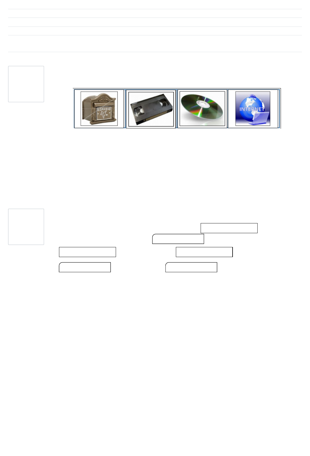 Questão 1 Correto Atingiu 1,00 de 1,00 Questão 2 Correto Atingiu 1,00 de 1,00 Iniciado em quinta-feira, 21 nov. 2024, 14:59 Estado Finalizada Concluída em quinta-feira, 21 nov. 2024, 15:07 Tempo empregado 7 minutos 58 segundos Avaliar 10,00 de um máximo de 10,00(100%) Arraste as figuras abaixo para indicar a sequência [[1]]como os conteúdos para cursos de EAD foram disponibilizados para alunos: A sua resposta está correta. Arraste os textos para as lacunas na frase abaixo: A popularização dos computadores permitiu através dos (das) programas multimídia ✓ a criação de cursos e distribuição dos mesmos em CDs e DVDs ✓ . navegadores de internet redes sociais Facebook e Instagram Fitas VHS A sua resposta está correta. A resposta correta é: Arraste os textos para as lacunas na frase abaixo: A popularização dos computadores permitiu através dos (das) [programas multimídia] a criação de cursos e distribuição dos mesmos em [CDs e DVDs] . Questão 3 Correto Atingiu 1,00 de 1,00 Questão 4 Correto Atingiu 1,00 de 1,00 Questão 5 Correto Atingiu 1,00 de 1,00 Associe as atividades de EAD com as ferramentas que devem ser utilizadas Tarefa a ser executada pelo aluno ✓ Conteúdo a ser assistido pelo aluno ✓ Programa para comunicação em tempo real ✓ Teste Videoaula Chat A sua resposta está correta. A resposta correta é: Tarefa a ser executada pelo aluno → Teste, Conteúdo a ser assistido pelo aluno → Videoaula, Programa para comunicação em tempo real → Chat. Associe as atividades de EAD a sua qualificação de Síncrona ou Assíncrona Videoaula ✓ Mensagem ✓ WebAula ✓ Chat ✓ Assíncrona Assíncrona Síncrona Síncrona Sua resposta está correta. A resposta correta é: Videoaula → Assíncrona, Mensagem → Assíncrona, WebAula → Síncrona, Chat → Síncrona. [QUESTÃO ANULADA - ASSINALE QUALQUER ALTERNATIVA] Assinale a ou as afirmativas corretas sobre Fitas de áudio e vídeo Escolha uma opção: Não puderam ser utilizadas para cursos em EAD devido a problemas de direitos autorais. ✓ Foram utilizadas para distribuir cursos em EAD. Só podem ser utilizadas quando o professor estiver presente na sala de aula on-line. Permitem que alunos assistam às aulas em qualquer horário e quantas vezes se desejar. A sua resposta está correta. As respostas corretas são: Foram utilizadas para distribuir cursos em EAD., Permitem que alunos assistam às aulas em qualquer horário e quantas vezes se desejar., Não puderam ser utilizadas para cursos em EAD devido a problemas de direitos autorais., Só podem ser utilizadas quando o professor estiver presente na sala de aula on-line. Questão 6 Correto Atingiu 1,00 de 1,00 Questão 7 Correto Atingiu 1,00 de 1,00 No início do século XXI a Internet já se expandia e começava a disponibilizar páginas com a mesma multimídia e interatividade que... Escolha uma opção: antes só era possível em programas de TV. antes só era possível em textos de livros. antes só era possível em programas locais de computadores. ✓ antes só era possível no rádio. A sua resposta está correta. A resposta correta é: antes só era possível em programas locais de computadores. As três afirmativas abaixo (I, II e III), foram feitas considerando os conceitos de WebAula. Baseado nas afirmativas responda qual das alternativas está correta. I. O professor marca um evento e na data e horário estabelecidos todos utilizam um programa de Webconferência, mas se comunicam por telefone. II. Como todos estão utilizando a comunicação ao mesmo tempo, a comunicação é do tipo Assíncrona. III. Caso o aluno não possa acompanhar a WebAula no horário marcado, ele poderá assistir ao filme de gravação da WebAula, mas nesse momento não poderá fazer perguntas pelo programa de WebAula, mas poderá enviar perguntas através do programa de mensagens de maneira que, estas perguntas sejam respondidas posteriormente pelo professor Escolha uma opção: Existe somente uma afirmativa correta. ✓ Todas as afirmativas estão erradas. Todas as afirmativas estão corretas. Existe somente uma afirmativa errada. Sua resposta está correta. A resposta correta é: Existe somente uma afirmativa correta. Questão 8 Correto Atingiu 1,00 de 1,00 Questão 9 Correto Atingiu 1,00 de 1,00 As três afirmativas abaixo (I, II e III), foram feitas considerando os conceitos de programas para WebConferência, utilizados em WebAulas. Baseado nas afirmativas responda qual das alternativas está correta. I. Permitem a inserção de apresentações do tipo PowerPoint. II. Permitem a apresentação de programas que estão sendo executados na área de trabalho do computador do professor. III. Possibilitam a utilização de “Quadros de comunicação”, onde podem ser inseridos diversos elementos como textos e figuras. Escolha uma opção: Existe somente uma afirmativa correta. Existe somente uma afirmativa errada. Todas as afirmativas estão corretas. ✓ Todas as afirmativas estão erradas. Sua resposta está correta. A resposta correta é: Todas as afirmativas estão corretas. As três afirmativas abaixo (I, II e III), foram feitas para explicar as diferenças entre Videoconferência e Web conferência. Baseado nas afirmativas responda qual das alternativas está correta. I. Os equipamentos utilizados em Videoconferências normalmente são mais sofisticados que os utilizados em Web Conferências. II. Em Webconferências normalmente as conexões são feitas por linhas especiais, links dedicados e antenas parabólicas III. Em Videoconferências normalmente a conexão é feita por internet normal preferivelmente utilizando conexões de banda larga. Escolha uma opção: Todas as afirmativas estão corretas. Todas as afirmativas estão erradas. Existe somente uma afirmativa errada. Existe somente uma afirmativa correta. ✓ Sua resposta está correta. A resposta correta é: Existe somente uma afirmativa correta. Questão 10 Correto Atingiu 1,00 de 1,00 [QUESTÃO ANUL