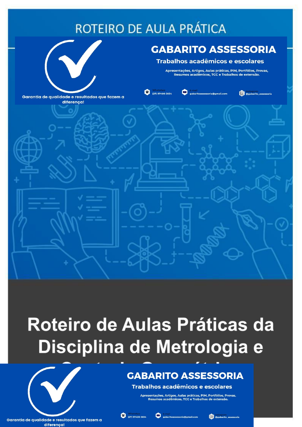 ROTEIRO DE AULA PRÁTICA OBJETIVOS - Aprender como utilizar adequadamente a régua graduada e como realizar medidas nas escalas do sistema métrico; - Consolidar a utilização adequada do paquímetro e do micrômetro em diferentes escalas; - Compreender os passos necessários para a construção de um gráfico de Pareto INFRAESTRUTURA Laboratório de controle de qualidade (prática simulada) MATERIAIS Descrição Quantidade de materiais por procedimento/atividade. Grupos de alunos Régua de 30 cm 1 por aluno Calculadora 1 por aluno Computador com acesso à internet 1 por aluno SOFTWARE Sim (X) Não () Em caso afirmativo, qual? VirtuaLab - disponível na Biblioteca Virtual no parceiro ALGETEC Pago (X) Não Pago () Tipo de licença: Licenças já adquiridas pela Kroton DESCRIÇÃO DO SOFTWARE O laboratório virtual é uma plataforma para simulação de procedimentos em laboratório. 2 Ele deve ser acessado por computador e não deve ser acessado por celular ou tablet. o requisito mínimo para o seu computador é uma memória ram de 4 gb. O primeiro acesso será um pouco mais lento, pois alguns plugins são buscados no navegador. A partir do segundo acesso, a velocidade de abertura dos experimentos será mais rápida. 1. Caso utilize o Windows 10, dê preferência ao navegador Google Chrome; 2. Caso utilize o Windows 7, dê preferência ao navegador Mozilla Firefox; 3. Feche outros programas que podem sobrecarregar o computador; 4. Verifique se o navegador está atualizado; 5. Realize teste de velocidade da internet. SUGESTÕES DE SEGURANÇA NSA. PROCEDIMENTO/ATIVIDADE SGA: Laboratório de Metrologia Medir é um procedimento experimental pelo qual o valor momentâneo de uma grandeza física é determinado como um múltiplo e/ou uma fração de uma unidade, estabelecida por um padrão e reconhecida internacionalmente. Denomina-se processo de medição o conjunto de métodos e meios utilizados para efetuar uma medida (ALBERTAZZI; SOUSA, 2018). Para exprimir quantitativamente uma grandeza física, é necessário compará-la a uma unidade e determinar o número de vezes que essa unidade está contida na grandeza avaliada. É fundamental que a unidade utilizada seja muito bem definida e amplamente reconhecida internacionalmente a fim de que as medições assumam caráter universal. Do ponto de vista técnico, a medição pode ser empregada para monitorar, controlar e/ou investigar processos ou fenômenos físicos (ALBERTAZZI; SOUSA, 2018). Monitorar consiste em observar ou registrar passivamente o valor de uma grandeza. A monitoração é muito usada no comércio para atribuir valor comercial aos produtos e para controlar estoques. É também muito utilizada para revelar informações úteis sobre atividades cotidianas, fenômenos naturais ou artificiais (ALBERTAZZI; SOUSA, 2018). Já os sistemas de controle têm o objetivo de manter uma ou mais grandezas ou processo dentro de limites predefinidos. A essência do mecanismo de ação do controle inicia-se com a medição de uma ou mais grandezas ligadas ao processo que se pretende controlar. Em seguida, o valor medido é comparado ao valor de referência e, em função do resultado da comparação, o sistema de controle atua sobre a(s) grandeza(s), ou sobre o processo, para mantê-lo(s) dentro dos níveis desejados (ALBERTAZZI; SOUSA, 2018). Por fim, mas não menos importante temos a investigação. Esta requer postura proativa. Experimentos têm sido e sempre serão os meios mais valiosos para obter conhecimento em 3 todas as áreas da ciência e da atividade industrial. São inúmeras as descobertas científicas que só se tornaram possíveis por meio de experimentos bem planejados e bem conduzidos e graças à astúcia de mentes brilhantes que analisaram os resultados (ALBERTAZZI; SOUSA, 2018). Com base neste contexto, você foi escolhido como o responsável para implementar um laboratório de metrologia e controle geométrico na futura unidade da empresa que você atua. Preparado para o desafio? Para isso você precisar conhecer os equipamentos básicos que farão parte deste laboratório, assim como, os métodos e técnicas para estruturação das atividades. Atividade proposta: Etapa 1: Aprender como utilizar adequadamente a régua graduada para realização de medidas no sistema métrico, bem como os cálculos relacionados a um estudo metrológico; Etapa 2: Aprender como utilizar adequadamente o paquímetro e como realizar medidas nas escalas do sistema métrico e do sistema inglês com diferentes graduações; Etapa 3: Compreender os passos necessários para a construção de um gráfico de Pareto; Etapa 4: Aprender como utilizar adequadamente o micrômetro e como realizar medidas na escala do sistema métrico com diferentes graduações. Procedimentos para a realização da atividade: Etapa 1.1: Procedimento de Medição e Cálculo: para essa etapa será necessário que o aluno escolha algum objeto em seu local de estudo para o procedimento. Exemplos: Livro Didático, Celular, Caderno, etc...; Elaborar o roteiro de medição: o Definir os mensurandos, ou seja, as grandezas que serão avaliadas no objeto selecionado. Exemplos: (comprimento, largura, altura, volume, massa); ideal trabalhar com ao menos três grandezas. o Indicar o operador do procedimento e data de realização; o Descrever e avaliar o instrumento de medição (régua graduada); o Descrever as condições de medição. Exemplo: (temperatura, umidade); o Definir número de medidas e os cálculos que serão realizados. Realizar as medidas no objeto: o Mensurar ao menos cinco vezes cada mensurando; o Calcular a média das medidas para cada grandeza; o Calcular o desvio padrão para cada grandeza avaliada; o Apresentar o resultado para cada mensurando, indicando o desvio. o Repita esse procedimento três vezes, alternado o operador ou instrumento de medição. Etapa 1.2: Indicar Possíveis Fontes de Incerteza: 4 Tabele os resultados encontrados na Etapa 1; o Compare os result
