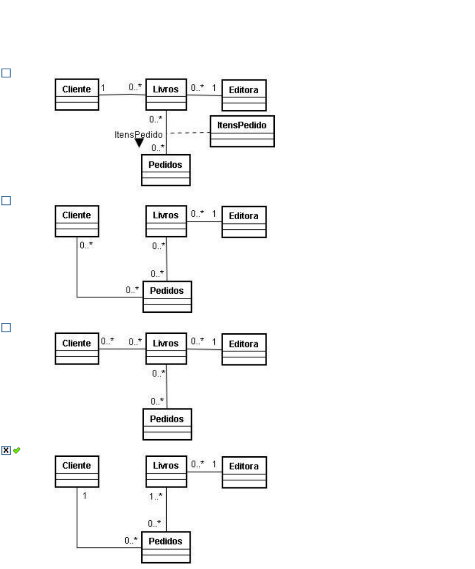 Uma livraria disponibiliza livros de várias editoras para venda aos clientes, que podem comprar quantos desejar em um mesmo pedido. A livraria compra da editora muitos exemplares de mesmo título e autoria. Analisando o cenário apresentado indique qual modelo representa a situação.