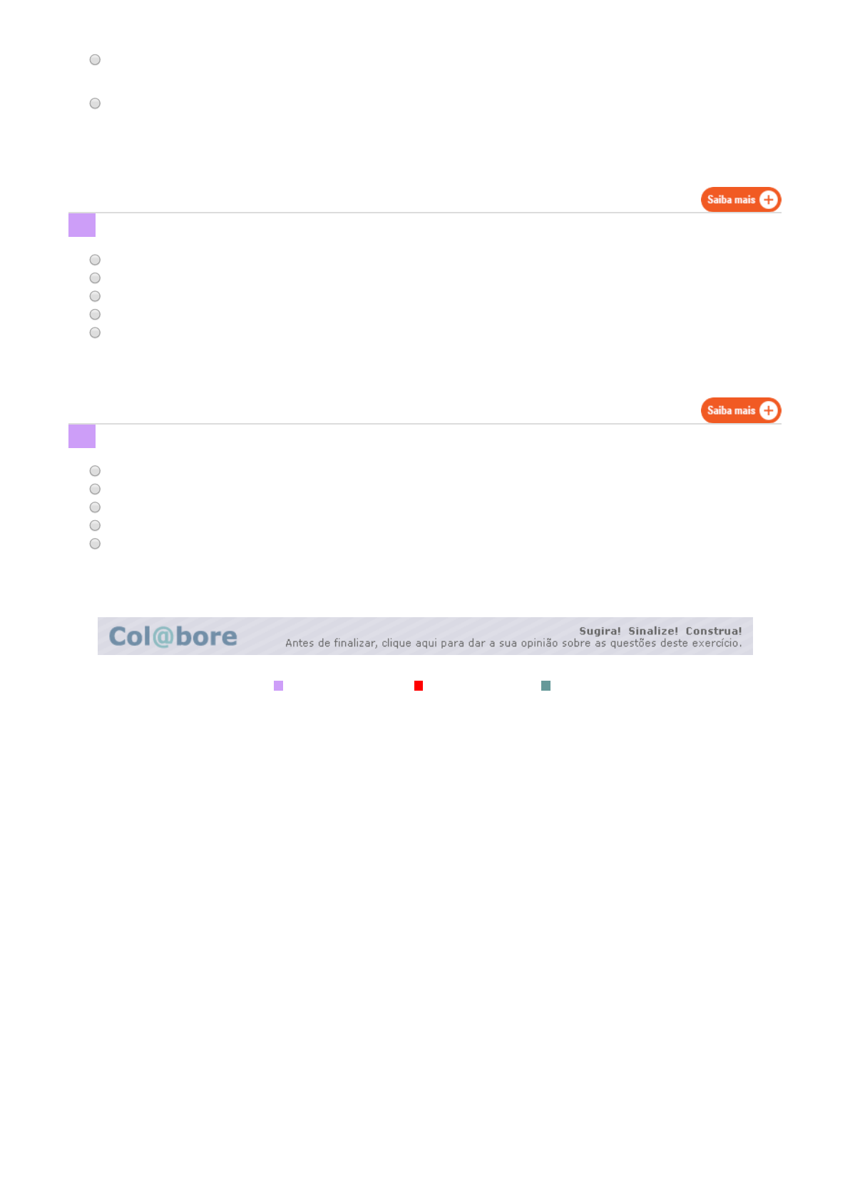 Legenda: Questão não respondida Questão não gravada Questão gravada