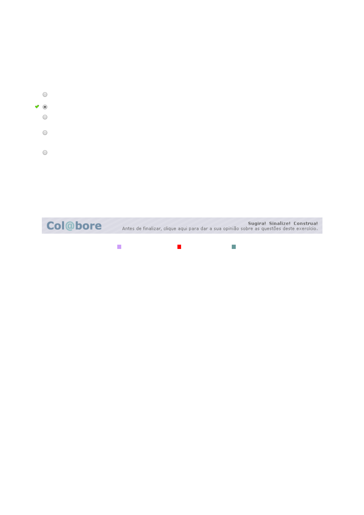 Legenda: Questão não respondida Questão não gravada Questão gravada