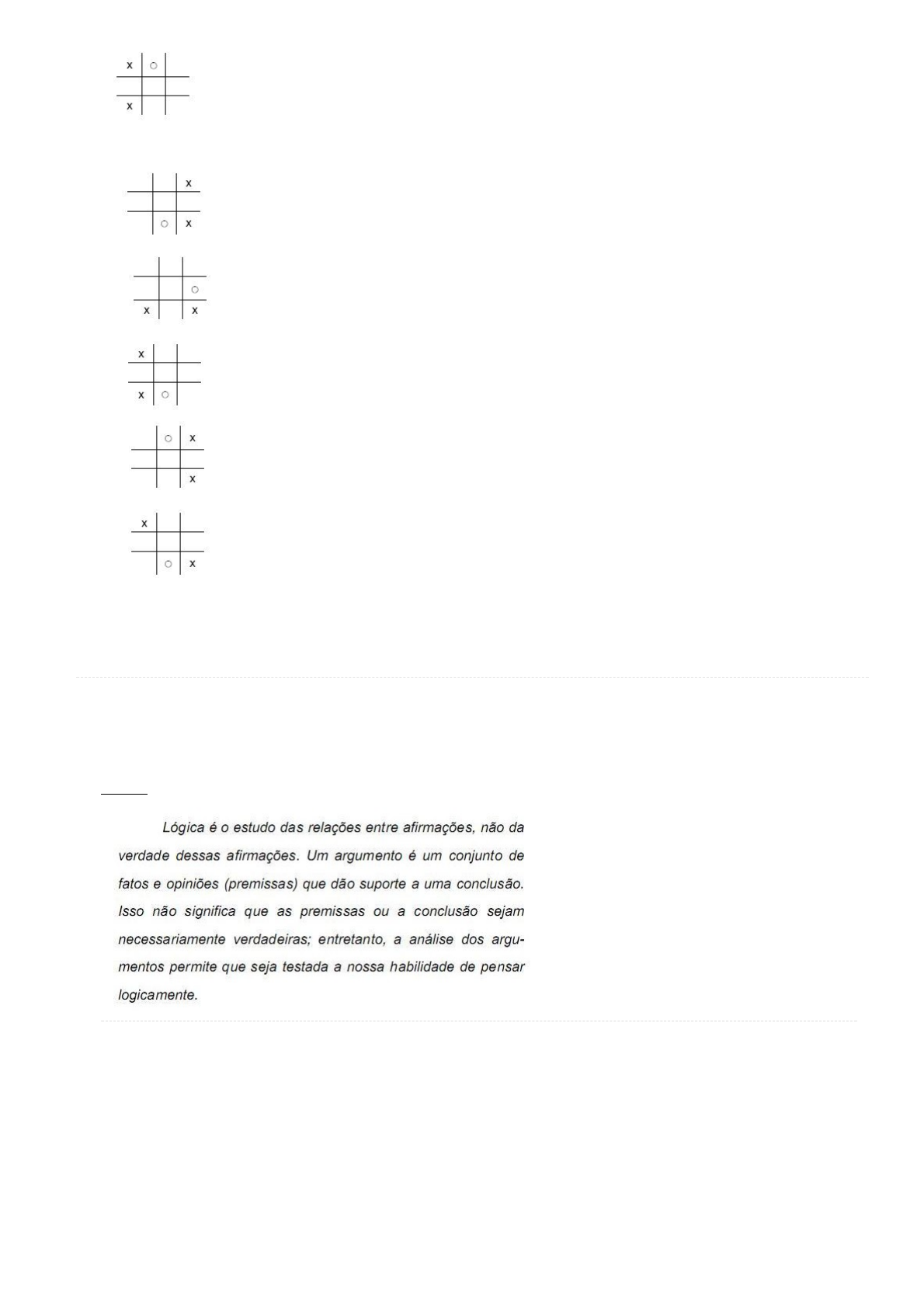09/12/2017 Questões de Concursos e Perguntas de Concursos Públicos- Aprova Concursos https://www.aprovaconcursos.com.br/questoes-de-concurso/questoes/disciplina/Racioc%25C3%25ADnio+L%25C3%25B3gico/banca/FCC/filtro/2… 2/8 Dos esquemas seguintes, o único que NÃO apresenta jogadas equivalentes à do esquema acima é x a) b) c) d) e) 799) Q49526 (/questoes-de-concurso/questao/49526) (/questoes-de-concurso/questao/49526#imprimir) Provas: FCC - 2006 - BACEN - Analista Administrativo - Manhã (/questoes-de-concurso/prova/fcc-2006-bacen-analista-administrativo-manha) Disciplina: Raciocínio Lógico (/questoes-de-concurso/disciplina/raciocinio-logico) - Assuntos: 2. Equivalências lógicas (/questoes-de-concurso/questoes/assunto/2.+Equival%C3%AAncias+l%C3%B3gicas) Ocultar texto associado à questão Atenção: Para responder as questões de números 47 a 50 deve-se considerar que: Aldo, Benê e Caio receberam uma proposta para executar um projeto. A seguir são registradas as declarações dadas pelos três, após a conclusão do projeto: Aldo: Não é verdade que Benê e Caio executaram o projeto. Benê: Se Aldo não executou o projeto, então Caio o executou. Caio: Eu não executei o projeto, mas Aldo ou Benê o executaram. Se somente a a�rmação de Benê é falsa, então o projeto foi executado APENAS por a) Aldo. b) Benê. c) Caio. https://www.aprovaconcursos.com.br/questoes-de-concurso/prova/fcc-2006-bacen-analista-administrativo-manha https://www.aprovaconcursos.com.br/questoes-de-concurso/questao/49526 https://www.aprovaconcursos.com.br/questoes-de-concurso/questao/49526#imprimir https://www.aprovaconcursos.com.br/questoes-de-concurso/questoes/assunto/2.+Equival%C3%AAncias+l%C3%B3gicas https://www.aprovaconcursos.com.br/questoes-de-concurso/disciplina/raciocinio-logico