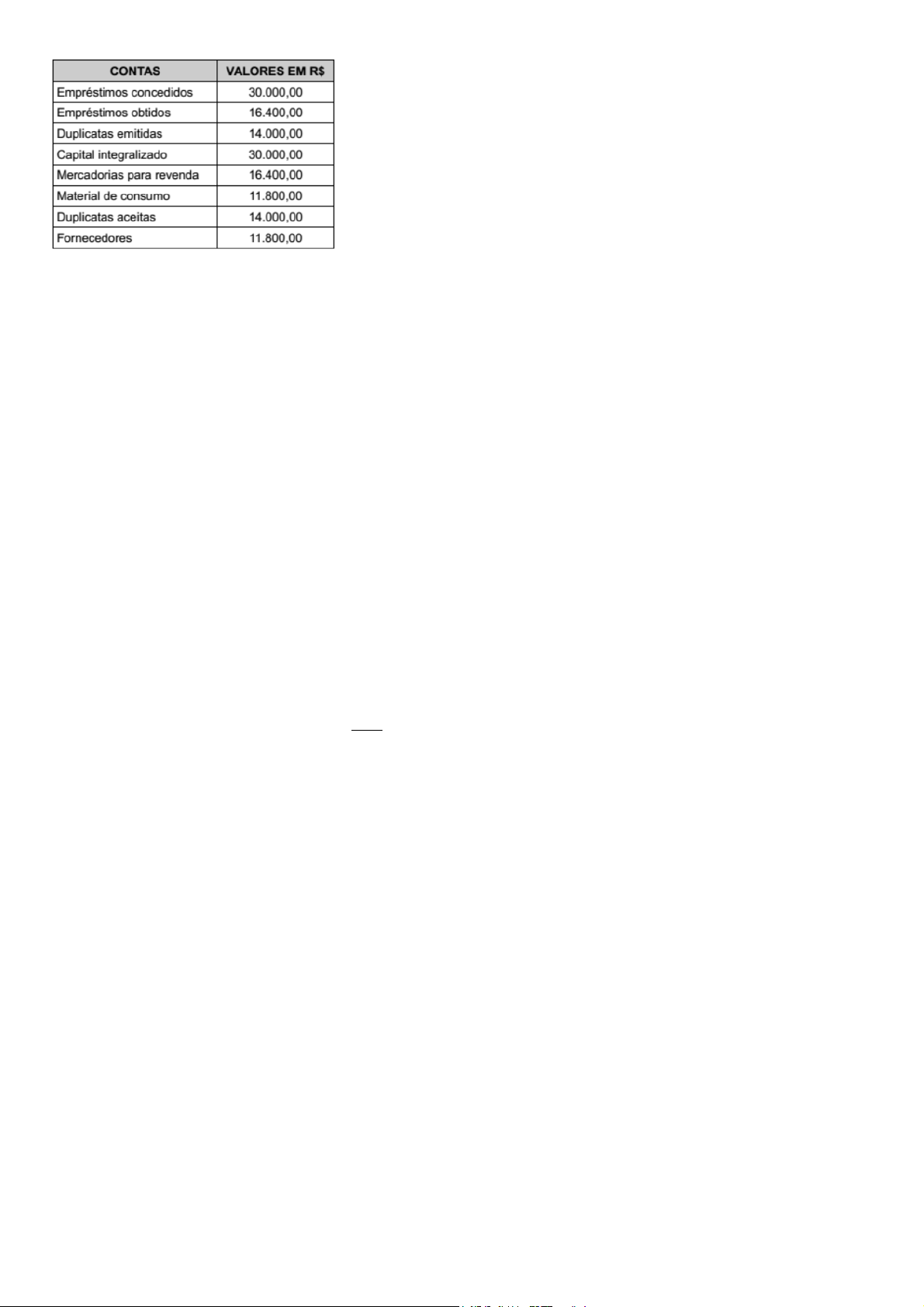 17/08/2021 https://www.exponencialconcursos.com.br/questoes/main/imprimir_meus_cadernos_html/947670 https://www.exponencialconcursos.com.br/questoes/main/imprimir_meus_cadernos_html/947670 16/254 Considere a seguinte composição do patrimônio da empresa Beta Ltda. para responder à questão. O valor em R$ correspondente aos créditos com terceiros é: a) 44.000,00 b) 41.800,00 c) 30.000,00 d) 14.000,00 65. Id: 392319 Ano: 2014 Bancas: FCC Instituições: TCE-RS Provas: Auditor Público Externo Disciplina: Contabilidade Geral Assuntos: 4.3.4 Ações em Tesouraria, Custos de Transação e Prêmios na Emissão de Títulos e Valores Mobiliários - CPC 08 A empresa Invest & Cia. adquiriu, em 31/12/2013, ações de sua própria emissão e, para isso, incorreu nos seguintes gastos: Valor pago pelas ações = R$ 150.000,00 Custos adicionais de transação = R$ 2.000,00 Em 30/06/2014, a empresa revendeu estas ações por R$ 160.000,00 à vista, incorrendo em novos custos de transação no valor de R$ 3.000,00. Nesse caso, a empresa Invest & Cia. a) aumentou o seu Patrimônio Líquido em R$ 160.000,00, em 30/06/2014. b) reconheceu como Ações em Tesouraria o valor de R$ 150.000,00, em 31/12/2013. c) reconheceu como Despesa o valor de R$ 3.000,00, em 30/06/2014. d) reduziu o seu Patrimônio Líquido em R$ 152.000,00, em 31/12/2013. e) apurou um resultado com a venda das Ações em Tesouraria de R$ 7.000,00. Direitos autorais reservados (Lei 9610/98). Proibida a reprodução, venda ou compartilhamento deste arquivo. Uso individual Cópia registrada para (CPF:) 66. Id: 378513 Ano: 2009 Bancas: ESAF Instituições: SEFAZ-SP Provas: Analista de Finanças e Controle Disciplina: Contabilidade Geral Assuntos: 1.1 Contabilidade: Conceito, Objeto, Finalidade, Campo de Atuação, Funções e Técnicas, Princípios Contábeis (Resolução CFC nº 750/1993 - REVOGADA) Assinale abaixo a opção que contém uma afirmativa falsa. a) A Contabilidade é mantida para as Entidades; os sócios ou quotistas destas não se confundem, para efeito contábil, com aquelas. b) Para a Contabilidade, a Entidade é um organismo vivo que irá operar por período indeterminado de tempo até que surjam fortes evidências em contrário. c) O custo de aquisição de um ativo ou dos insumos necessários para fabricá-lo e colocá-lo em condições de gerar benefícios para a Entidade representa a base de valor para a Contabilidade. d) Os princípios fundamentais da Resolução CFC 750/93, apesar de servirem como orientação precisa para os procedimentos contábeis, não constituem condição de legitimidade das Normas Brasileiras de Contabilidade. e) Entre conjuntos alternativos de avaliação para o patrimônio, igualmente válidos, segundo os princípios fundamentais, a Contabilidade escolherá o que apresentar o menor valor atual para o ativo e o maior para as obrigações. 67. Id: 549896 Ano: 2018 Bancas: FCC Instituições: SEFAZ-SC Provas: Auditor-Fiscal da Receita Estadual - Auditoria e Fiscalização (Prova 3) Disciplina: Contabilidade Geral Assuntos: 4.4. Balanço Patrimonial - BP (questões gerais) Considere as informações a seguir. Em 31/12/2016, a Cia. Rosa adquiriu 90% das ações da Cia. Colorida pelo Valor de R$ 15.000.000,00 à vista. Na data da aquisição, o patrimônio líquido contabilizado da Cia. Colorida era R$ 9.000.000,00 e o valor justo líquido dos seus ativos e passivos identificáveis era R$ 13.000.000,00, sendo a diferença decorrente de um ativo imobilizado adquirido anteriormente e avaliado pelo custo. O valor que a Cia. Rosa reconheceu no Balanço Patrimonial individual, na conta Investimentos em Controladas, na data da aquisição, foi, em reais, a) 8.100.000,00. b) 11.700.000,00. c) 15.000.000,00. d) 13.500.000,00. e) 13.000.000,00. 68. Id: 370965 Ano: 2009 Bancas: CESPE/ CEBRASPE Instituições: TCE-AC Provas: Analista de Controle Externo - Ciências Contábeis Disciplina: Contabilidade Geral Assuntos: 1.1 Contabilidade: Conceito, Objeto, Finalidade, Campo de Atuação, Funções e Técnicas, 2.3 Atos e Fatos Contábeis Variações patrimoniais são as modificações no patrimônio, geradas por fatos contábeis. Assinale a opção cuja combinação das variações corresponde ao fato mencionado. a) Aumento de ativo com diminuição de passivo corresponde a fato modificativo aumentativo. b) Aumento de ativo e diminuição de ativo com aumento de patrimônio líquido corresponde a fato misto aumentativo. c) Diminuição de patrimônio líquido com aumento de passivo corresponde a fato permutativo. d) Diminuição de ativo com diminuição de passivo corresponde a fato modificativo diminutivo. e) Diminuição de ativo com diminuição de passivo e diminuição de patrimônio líquido corresponde a fato permutativo modificativo aumentativo.