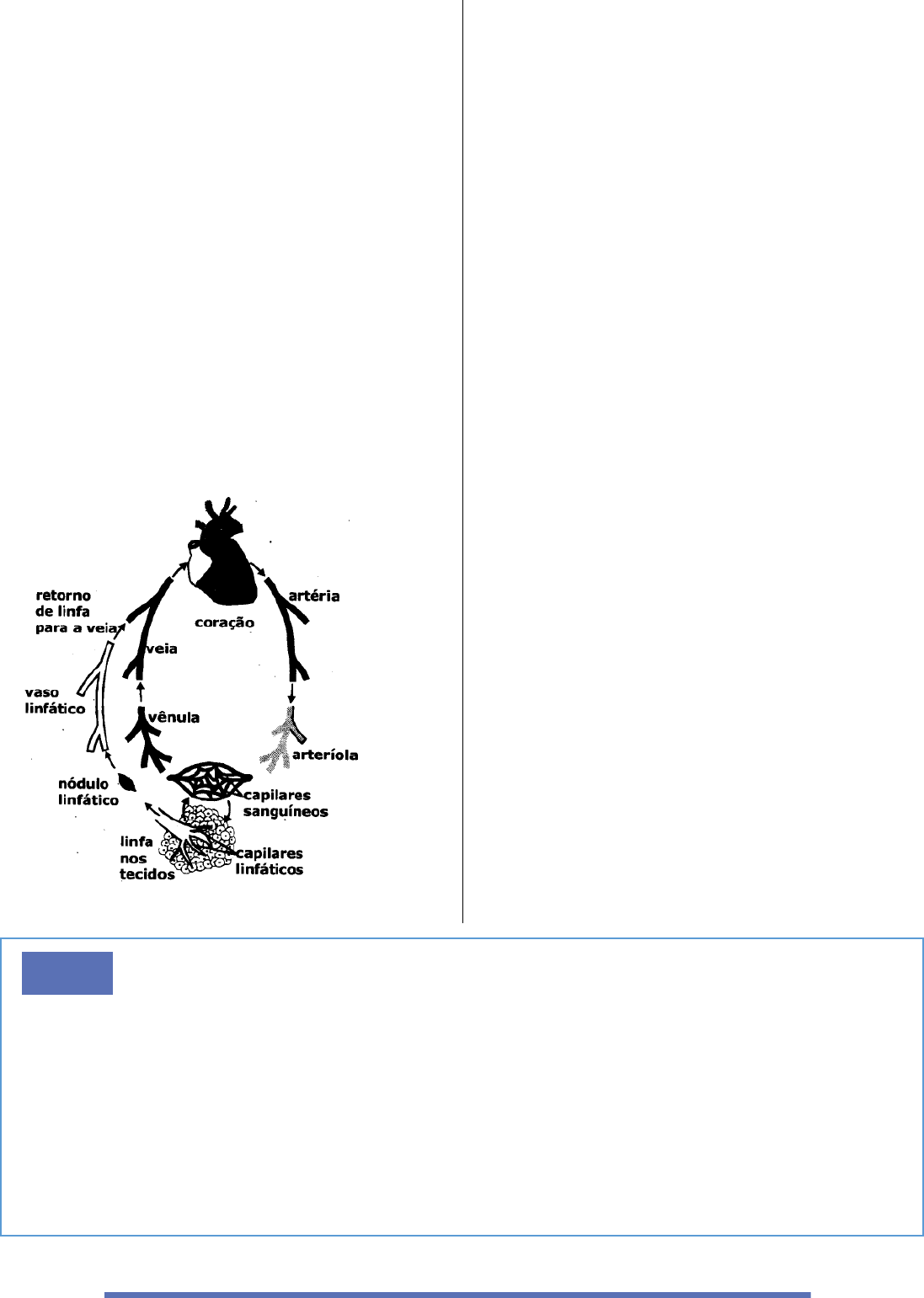 5 18 - (Fcm) O sistema linfático consiste em grupo de células, tecidos e órgãos que monitoram as superfícies corporais e os compartimentos líquidos internos e reagem à presença de substâncias potencialmente nocivas. Está relacionado com a conservação das proteínas plasmáticas, com defesa de microrganismos patogênicos e absorção de líquidos. Analise as proposições abaixo e assinale aquela que indica correta e unicamente os componentes desse sistema. a) Baço, fígado e tonsilas. b) Linfomas, vasos linfáticos, nódulos linfáticos e capilares linfáticos. c) Medula óssea, linfonodos e nódulos linfáticos. d) Capilares linfáticos, vasos linfáticos, ductos linfáticos e linfonodos. e) Linfonodos, veias linfáticas, linfomas e capilares linfáticos. 19 - (Fmj) O esquema ao lado representa as circulações sanguínea e linfática. Analisando-se o esquema, pode- se afirmar que: a) os linfonodos são componentes do sistema sanguíneo. b) os vasos linfáticos não drenam seu conteúdo das artérias. c) a linfa é levada diretamente para o coração através de vasos linfáticos. d) as vênulas distribuem sangue oxigenado para todas as células do corpo. e) o líquido contido nos tecidos é recolhido totalmente pelos capilares sanguíneos. 20 - (Uninta) Comumente, o sistema linfático é uma das quatro defesas primárias contra doenças. No câncer, entretanto, pode ser um veículo para a propagação (metástase) da doença. As células tumorais que entram nos vasos linfáticos podem ser transportadas para outras partes do corpo. No câncer de mama, por exemplo, o grau de invasão de linfonodos próximos é um fator importante no diagnóstico e tratamento. Nas mastectomias, além de remover o tecido mamário, algumas vezes é necessário remover os vasos linfáticos e linfonodos. COHEN, 2002. p.299. Uma das consequências possíveis pela remoção dos vasos linfáticos e linfonodos no exemplo citado seria a a) ocorrência de um inchaço, principalmente na região dos braços (linfedema), como também a possibilidade de um risco maior de infecção. b) alteração da proporção de sangue arterial transportado pelas artérias ao longo do trajeto pela circulação pulmonar. c) redução do volume sanguíneo a ser impulsionado pelo coração para as regiões mais sensíveis do corpo, a exemplo do cérebro. d) diminuição da capacidade de realização da hematose ao longo do trajeto do sistema linfático. e) destruição das células neoplásicas devido ao corte no fornecimento de nutrientes essenciais ao desenvolvimento tumoral. notas