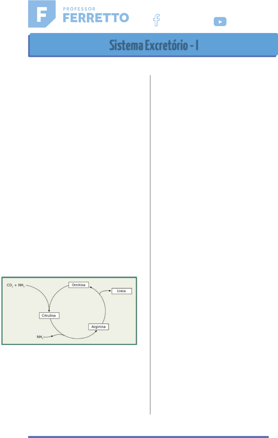 1 01 - (Uece) “As fezes e a ureia são resíduos produzidos pelos mamíferos. Entretanto somente um deles é considerado excreção.” Escolha a alternativa que condiz com este enunciado: a) As fezes, porque resultam da atividade de absorção de água pelo intestino grosso. b) A ureia, porque é produzida por células flama, as quais são encontradas nos rins dos mamíferos. c) As fezes, porque resultam da ação da flora intestinal. d) A ureia, por ser substância nitrogenada tóxica produzida durante o metabolismo celular. 02 - (Uece) Um pesquisador realiza em cães a obstrução parcial da veia porta. Esse procedimento determina nos animais alterações neurológicas que podem ser melhor explicadas pelo aumento da concentração plasmática de uma substância muito tóxica para o organismo, que é: a) amônia. b) ureia. c) ácido úrico. d) colesterol. 03 - (Pucsp) O ciclo bioquímico abaixo ocorre no fígado humano e envolve compostos nitrogenados. Sobre as substâncias direta e indiretamente relacionadas a esse ciclo (reagentes ou produtos), não é correto afirmar que: a) A degradação de substâncias como aminoácidos e bases nitrogenadas gera a produção de amônia. b) A amônia é uma substância tóxica para as células e deve ser transformada em outras substâncias. c) Uma das substâncias produzidas a partir da amônia é a ureia. d) Toda ureia produzida nesse ciclo é destruída no próprio fígado. e) A ureia é a principal substância nitrogenada excretada pelos rins. 04 - (Ufpr) O metabolismo celular dos animais gera substâncias nitrogenadas que são eliminadas pelo processo de excreção. Acerca desse processo, considere as seguintes afirmativas: 1. A amônia é tóxica para o organismo, mas, por ser bastante solúvel em água, é rapidamente difundida e eliminada por animais que vivem em ambiente aquático. 2. Nas aves, a amônia é convertida em ureia, que é menos tóxica que a amônia e demanda um volume relativamente grande de água para sua eliminação. 3. Insetos convertem amônia em ácido úrico, produzindo uma urina mais concentrada, pois o ácido úrico é pouco tóxico e tem baixa solubilidade em água. 4. Mamíferos excretam principalmente ureia, que, por ser menos tóxica, pode ser armazenada temporariamente no corpo sem risco de intoxicação. Assinale a alternativa correta. a) Somente as afirmativas 1 e 2 são verdadeiras. b) Somente as afirmativas 1 e 3 são verdadeiras. c) Somente as afirmativas 2 e 4 são verdadeiras. d) Somente as afirmativas 1, 3 e 4 são verdadeiras. e) As afirmativas 1, 2, 3 e 4 são verdadeiras 05 - (Uece) Analise as assertivas que seguem, sobre excreção de animais. I. A rápida difusão da amônia torna-a propícia a ser excretada em meio aquoso, apesar da sua toxidez. II. Embora seja pouco tóxico, o ácido úrico é uma substância adequada para ser excretada em meio terrestre, por ser muito solúvel em água. III. A ureia é uma substância bastante solúvel em água e bem menos tóxica que a amônia, sendo excretada por animais aquáticos e terrestres. www.professorferretto.com.br ProfessorFerretto ProfessorFerretto Sistema Excretório - I ee