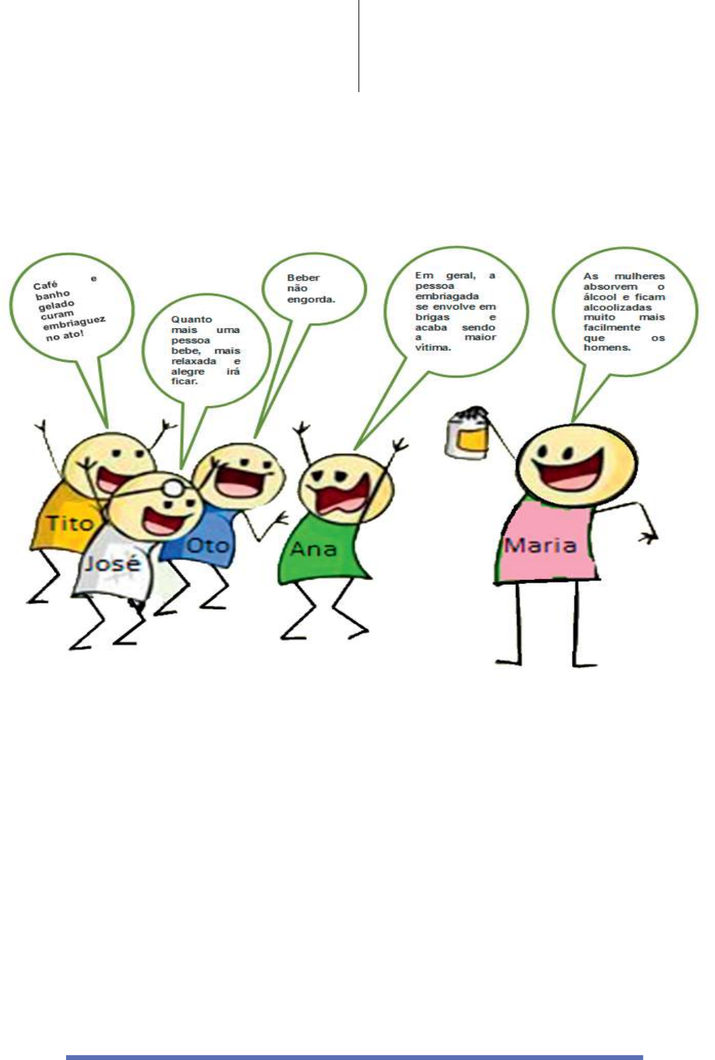 9 d) o hábito diário de consumir bebida alcoólica ao longo da vida é uma condição fortemente associada ao desenvolvimento de lesões no fígado, estando as mulheres mais suscetíveis aos prejuízos hepáticos do que os homens. 24 - (Upe) Cinco jovens estavam vindo de uma festa. Depois de passarem por uma blitz, na qual o condutor fez o teste do bafômetro (ou etilômetro) não apresentando alcoolemia, foram feitos os seguintes comentários sobre o consumo de bebida alcoólica: Disponível em: http://www.brasil.gov.br/enfrentandoocrack/enfrentamento/kit-de-mobilizacao/serie-por-dentro-do-assunto/drogascartilha- alcool-e-jovens ; http://www.burlar.org/wp-content/uploads/2008/07/multa-bafometro-alcoolizado-bebo-melado.jpg (Adaptado) Assinale a alternativa que apresenta uma concepção comprovada cientificamente. a) José está certo, pois os efeitos das bebidas alcoólicas acontecem em apenas uma fase na qual o álcool age como um estimulante, trazendo desinibição e euforia. b) Ana está errada, pois o consumo do álcool, apesar de levar à diminuição da coordenação motora, dos reflexos e deixar a pessoa sonolenta, não gera prejuízo à agilidade de resposta e à coordenação motora, habilidades essenciais em uma situação de enfrentamento físico. c) Tito está errado, pois a única maneira de curar embriaguez é esperar o álcool ser metabolizado pelo corpo. Em média, cada dose de álcool ingerida demora cerca de uma hora para ser totalmente metabolizada pelo corpo. Entretanto, esse tempo não varia, pois independe do peso e do sexo da pessoa. d) Maria está certa, pois os níveis de uma enzima do estômago (desidrogenase do álcool), a qual auxilia no metabolismo do álcool, são de 70% a 80% mais elevados nos homens que nas mulheres. e) Oto está certo, pois o corpo metaboliza o álcool de forma muito rápida, não dando, assim, tempo de absorver as calorias que são transformadas, apenas, em calor.