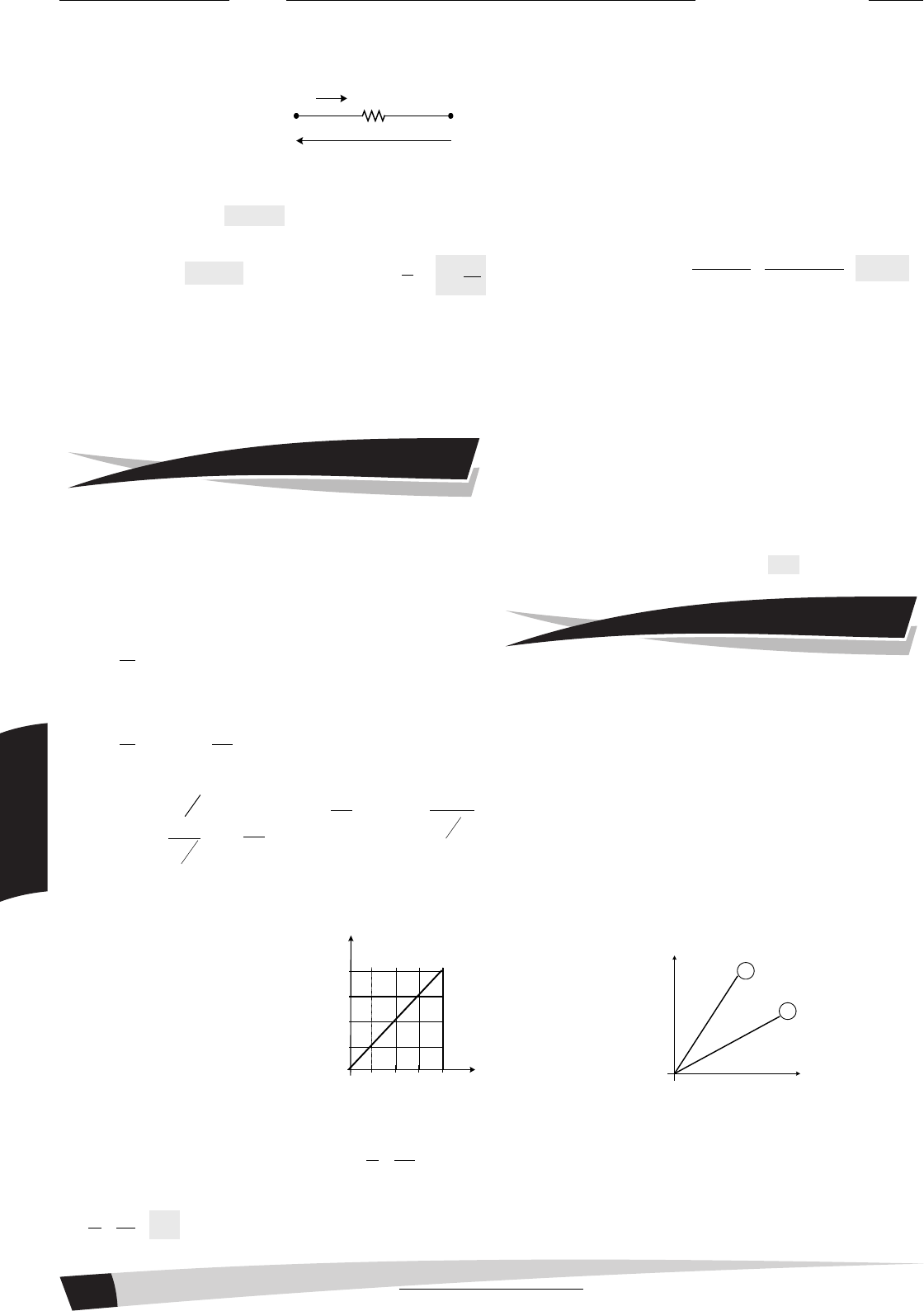 U B(-)A(+) Ri U (V) i (A) 10 20 30 40 1,25 2,50 3,75 5,00 0 0 10 FÍ SI CA II POTÊNCIA DISSIPADA Considere um resistor mantido a uma temperatura constante (ρ=constante). Estabelecendo uma diferença de potencial U em seus terminais, uma corrente i circulará no resistor: Conforme vimos, a potência elétrica recebida e liberada por qualquer bipolo elétrico é dada por: P = U . i Sabemos que U = Ri, então: P = U . i = R . i . i ⇒ P = R . i2 ou P = U . i = U . U R ⇒ P = 2U R A quantidade de energia que o resistor consegue liberar é função da área livre do resistor, que normalmente fica em contato com o ar. Observe que, se o resistor for muito pequeno, a quantidade de energia liberada será também pequena e vice-versa. Os resistores são construídos com diferentes potências. Os tamanhos mais comumente fabricados são 1/8 W, 1/4 W, 1/2 W, 1 W e 2 W. 01. Um fio cilíndrico de comprimento L e raio de seção reta r apresenta resistência R. Um outro fio, cuja resistividade é o dobro da primeira, o comprimento é o triplo, e o raio r/3, terá resistência igual a: a) R/54 b) 2R c) 6R d) 18R e) 54R Solução: Pela 2ª lei de Ohm temos que a resistência de um fio é calculado por A R ⋅ρ= onde ρ é a resistividade, é o comprimento do fio e A é a área da secção transversal do fio. Assim temos A R ⋅ρ= e ' ''' A R ⋅ρ= onde A = πr2 Pelos dados do problema temos: ρ’ = 2ρ ’ = 3 e r’ = r 3 então como R = ρ . 2rπ e R’ = 2ρ . ( )2 3 r 3π implica R’ = 2ρ . 2 3 r 9 π = 54ρ 2rπ = 54R ALTERNATIVA E 02 . (UFPE/UFRPE) O gráfico ao lado mostra a corrente elétrica i em um elemento X, de um circuito elétrico, em função da diferença de potencial U sobre o elemento X. Supondo que a resistência elétrica deste elemento não dependa da diferença de potencial nele aplicada, determine a corrente elétrica, em am- pères, que circularia se uma diferença de potencial de 96 V fosse aplicada ao elemento. Solução: Pelo gráfico temos U = 40 v para i = 5A então U 40R 8 i 5 = = = Ω Para uma ddp de 96U temos: U 96i 12A R 8 = = = Questões Resolvidas 03. O momento mais comum de queimar uma lâmpada à base de tungstênio é ao acionar o interruptor, pois quando desligada, a sua resistência é da ordem de 15 Ω e acesa sua resistência é da ordem de 190 Ω. Portanto, ao ser ligada, a corrente inicial que percorre seu filamento frio é cerca de 10 vezes maior do que a intensidade de corrente que atravessa seu filamento incandescente. Estime o valor da temperatura de uma lâmpada à base de tungstênio ligada. (dado: αW = 4,5 · 10-3 °C-1) Solução: O autor quer uma estimativa. De fato, pois o coeficiente α varia com a temperatura. Supondo que este se mantenha constante temos: R = RAmb (1 + α ⋅ ∆θ) onde R é a resistência da lâmpada acesa e RAmb a resistência à temperatura ambiente. Então: R = RAmb + RAmb ⋅ α ⋅ ∆θ ⇒∆θ = C2590 151054 15190 R RR 3 Amb Amb º , = ⋅⋅ − = ⋅α − − Portanto uma estimativa seria uma temperatura de 2600ºC do filamento aceso. 04. (UFC) Um pássaro pousa em um dos fios de uma linha de trans- missão de energia elétrica. O fio conduz uma corrente elétrica i = 1.000A e sua resistência, por unidade de comprimento, é de 5,0 x 10-5 Ω/m. A distância que separa os pés do pássaro, ao longo do fio, é de 6,0 cm. A diferença de potencial, em milivolts (mV), entre os seus pés é: a) 1,0 b) 2,0 c) 3,0 d) 4,0 e) 5,0 Solução: Sendo sua resistência por metro 5 • 10-5 Ω/m Temos: 1m -------------------- 5 • 10-5 Ω/m 0,06m -------------------- x x = 0,06 • 5 • 10-5 = 3 • 10-6 Ω Como U = R • i = 3 • 10-6 • 103 = 3 • 10-3 V ou 3mV ALTERNATIVA C 01. (CESGRANRIO) Alguns elementos passivos de um circuito elétrico são denominados resistores ôhmicos por obedecerem à lei de Ohm. Tal lei afirma que: a) Mantida constante a temperatura do resistor, sua resistência elétrica é constante, independente da tensão aplicada. b) A resistência elétrica do resistor é igual à razão entre a tensão que lhe é aplicada e a corrente que o atravessa. c) A potência dissipada pelo resistor é igual ao produto da tensão que lhe é aplicada pela corrente que o atravessa. d) O gráfico tensão x corrente para o resistor é uma linha reta que pessa pela origem, independente de sua temperatura ser ou não mantida constante. e) A resistência elétrica do resistor aumenta com o aumento de sua temperatura e diminui com a diminuição de sua temperatura. 02. (UFSC) O gráfico a seguir refere-se a dois condutores, A e B, de metais idênticos e mesmo comprimento: Na situação mostrada, é correto afirmar: A B V (volts) i (ampêres)0 01. Nenhum dos condutores obedece à lei de Ohm. 02. Ambos os condutores obedecem à lei de Ohm. 04. O condutor que possui a maior área da sua seção reta transversal é o A. 08. O condutor que possui a maior área da sua seção reta transversal é o B. 16. O condutor que tem a maior resistividade é o A. 32. O condutor que tem a maior resistividade é o B. 64. A resistividade de ambos os condutores é a mesma, mas a resistência do condutor B é maior que a do resistor A. Questões Propostas Prof. Sérgio Torres Caderno - 01 - Com Resoluções das Questões Física 15/05/2010 61/160