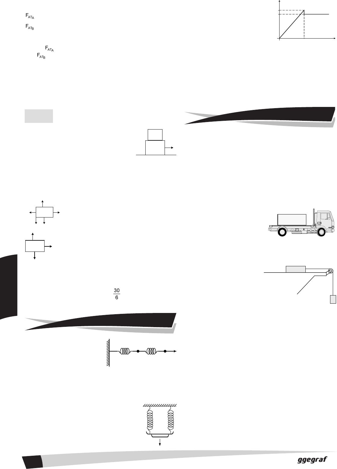 A AATF AN F AP BN B BN ATF BP B A F Questões de Vestibulares 1000kg K 1 K 2 F k F k f2 f1 a fat b F 16 FÍ SI CA I Sabemos que: = µ NA = µ PA = µ mA g = 0,6 · 2 x 10 = 12 N = µ NB = µ PB = µ mB g = 0,6 · 3 x 10 = 18 N Assim, II e IV ficam: F – NAB - = 50 – NAB – 12 = 2a NAB - = NAB – 18 = 3a 38 – NAB = 2a NAB – 18 = 3a Somando as duas equações acima: 38 – 18 = 2a + 3a ⇒ 20 = 5a ⇒ a = 4m/s2 Assim: 38 – NAB = 2 · 4 ⇒ 38 – NAB = 8 ∴ NAB = 38 – 8 ⇒ NAB = 30 N a) a = 4 m/s2 b) 30 N 02. Na situação da figura, A e B têm massas mA = 4,0 kg e mB = 6,0 kg, a aceleração da gra- vidade no local tem módulo 10m/s2, o atrito entre A e o plano horizontal de apoio é desprezível e o coeficiente de atrito estático entre B e A vale m = 0,50. Qual a máxima intensidade da força paralela ao plano, de modo que B não se movimente em relação a A? Solução: Isolando os corpos: Eixo y: FFy = NA – NB - PA = 0 ⇒ NA = NB + PA Eixo x: FRx = F – FAT = mA a (I) Eixo y: FFy = PB – NB = 0 ⇒ PB = NB Eixo x: FRx = FAT = mB a (II) Sabemos que, na situação limite, FAT = FAT MÁX = µE · NB = µE PB = µE mB g = 0,5 · 6 x 10 = 30 N Assim, de II: FAT = 30 = mB a = 6 a ⇒ a = = 5 m/s2 Usando o resultado acima em I: F – FAT = F – 30 = 4a = 4 · 5 = 20 ∴F = 50 N 03. (UPE) No gráfico da figura, re- presenta-se a intensidade da força de atrito em função da intensidade da força solicitadora para um bloco em repouso e, a seguir, em movimento. I II 0 0 A reta a indica que o bloco está em movimento 1 1 A força f 1 é a força de atrito máxima. 2 2 O ângulo que a reta a faz com a horizontal é o ângulo que o plano inclinado, onde se encontra o bloco, faz com a horizontal, quando este se encontra em iminência de movimento. 3 3 A força f2 é a força de atrito estática. 4 4 A reta b indica que o bloco está em repouso. 01. (UFPE/UFRPE) Um corpo de massa igual a 1,5 kg, sujeito à ação de uma força horizontal de 12 N, desloca-se com velocidade constante sobre um plano horizontal rugoso. Em um dado instante, o corpo entra numa região perfeitamente lisa do pano horizontal e passa a executar um movimento uniformemente acelerado. Sendo a aceleração da gravidade local igual a 10m/s2, o coeficiente de atrito cinético na primeira região e a aceleração, em m/s2, na segunda região valem, respectivamente: a) 0,8 e 8 b) 0,4 e 4 c) 0,8 e 4 d) 0,2 e 2 e) 0,2 e 8 02. (UPE) O caminhão altera a velocidade de 54 para 90 km/h num tempo de 10 segundos. O caixão de 1000 kg não desliza sobre a carroceria. Qual a força de atrito, em kgf, na superfície de contato entre o caminhão e o caixão? a) 100 b) 80 c) 60 d) 40 e) 20 03. (UPE) O bloco A sobre uma mesa tem massa 15,0kg, e o bloco B suspenso tem massa 5,0kg. O coeficiente de atrito entre o bloco A e a mesa vale 0,20. Considere que o fio utilizado para unir os blocos é ideal (sem peso e inextensível) e que a aceleração gravitacional vale 10,0 m/s². Analise as afirmações e assinale-as devidamente: I II 0 0 A aceleração adquirida pelos corpos, durante seus movimentos, é de 1,0 m/s². 1 1 No fio ideal, a tração é de 45,0N. 2 2 A velocidade do bloco A, após 3,0s de iniciado o movimento, é de 30,0 m/s. 3 3 A distância percorrida pelo bloco A, após 3,0 s de iniciado o movimento, é de 4,5 m. 4 4 Os blocos A e B têm acelerações diferentes. 04. (UFPE/UFRPE) Um bloco de massa m1 = 2,0 kg é colocado so- bre outro bloco de massa m2 = 4,0 kg que está em repouso sobre uma superfície horizontal lisa. Se o coeficiente de atrito estático entre os dois blocos é 0,1, determine a força horizontal máxima f, em Newtons, que pode ser aplicada ao bloco de massa m1, para que não haja escorrega- mento entre os blocos. Questões Propostas 01 . (UFPE/UFRPE) Uma mola de constante elástica k1 = 24N/m é conectada a uma segunda mola de constante elástica k2 = 45N/m, que, por sua vez, está conectada a uma parede na outra extremidade, conforme a figura. Uma pessoa aplica uma força F à primeira mola, dis- tendendo-a em 15 cm relativo ao seu comprimento em equilíbrio. Calcule a distensão da segunda mola, em cm. 02. (UFPE/UFRPE) Numa academia de musculação, um equipamento de exercício é suspenso do teto por duas molas idênticas de constante elástica k=1600N/m. Se o equipamento é puxado verticalmente para baixo por uma força de 800 N, a distensão de cada mola, em cm, será de… A B Prof. Sérgio Torres Apostila 02 Física Pura 15/05/2010 16/181 Sergio Torres fisica