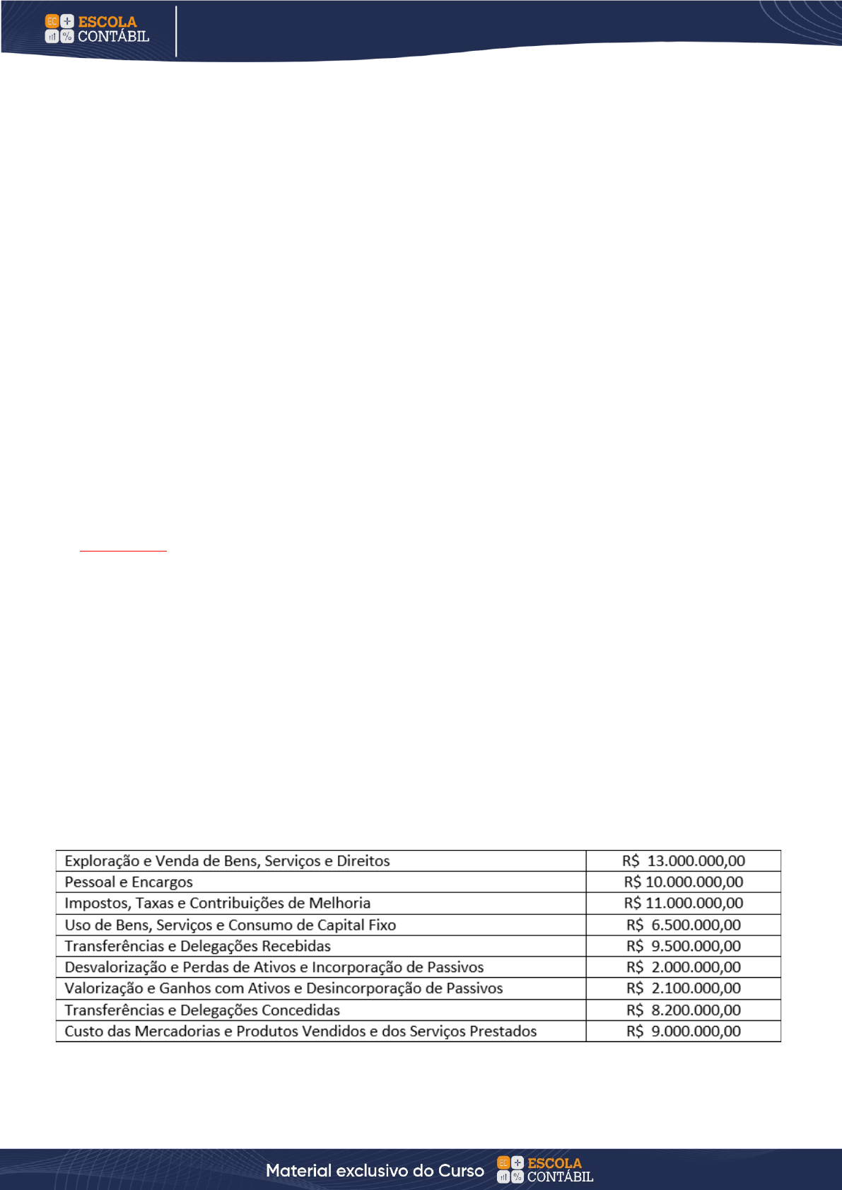 171 CADERNO 300 QUESTÕES COMENTADAS COMENTADAS CADERNO 300 QUESTÕES COMENTADAS COMENTADAS CADERNO 300 QUESTÕES EXAME DE SUFICIÊNCIA 126. (Consulplan/Exame CFC/2020.1) A Norma Brasileira de Contabilidade Aplicada ao Setor Público NBC TSP 07 – Ativo Imobilizado tem como objetivo estabelecer o tratamento contábil para ativos imobilizados, de forma que os usuários das demonstrações contábeis possam discernir a informação sobre o investimento da entidade em seus ativos imobilizados, bem como suas variações. Considerando o que consta nessa norma sobre Ativo Imobilizado, um ente público, por meio do processo licitatório, adquiriu os seguintes bens: - Em 02-01-2020: um microcomputador pelo preço de R$ 5.000,00; - Em 10-01-2020: um armário para um consultório médico pelo preço de R$ 1.200,00; - Em 21-01-2020: livros para doar para estudantes pelo preço de R$ 4.200,00; - Em 25-01-2020: um software de gestão pública pelo preço de R$ 10.000,00. Considerando essas informações, indique o valor que deverá ser registrado no Ativo Imobilizado. A) R$ 10.400,00 B) R$ 20.400,00 C) R$ 6.200,00 D) R$ 16.200,00 Comentários: Dentre os quatro tipos de bens mencionados pela questão, apenas o microcomputador e o armário fazem parte, de acordo com o conceito de ativo imobilizado na NBC TSP 07, do grupo Imobilizado. Logo, a resposta correta é R$ 6.200,00. Os livros para doação ficam como estoque (NBC TSP 04) e o software, como não é parte integrante de um hardware, é considerado um ativo intangível (NBC TSP 08). Gabarito → C. 127. (Consulplan/Exame CFC/2020.1) Um ente público apresentou as seguintes informações na sua Demonstração das Variações Patrimoniais, referente ao exercício financeiro de 2019; observe.