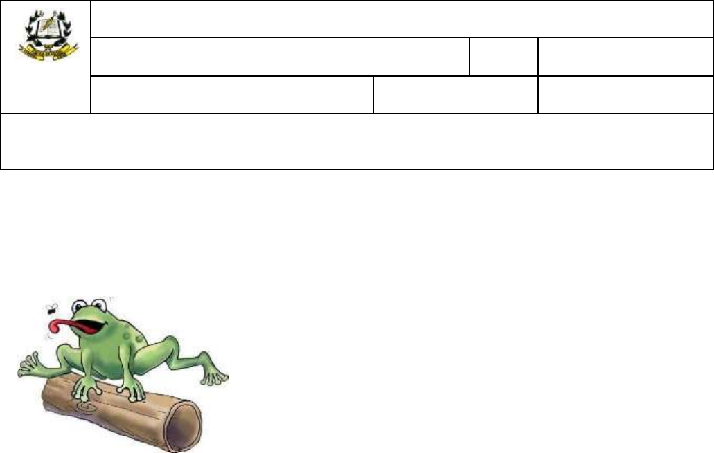 Questão 01: Leia a cantiga de roda e retire dela o que se pede: Sapo cururu da beira do rio Quando sapo grita, ó maninha, Diz que está com frio... A mulher do sapo É que está lá dentro Fazendo rendinha, ó maninha! Pro seu casamento. 9(Cantiga popular) QUESTÃO 01 O gênero textual apresentado é uma: A) ADIVINHAÇÃO B) CANTIGA DE RODA C) BILHETE QUESTÃO 02 SEGUNDO A CANÇÃO, ONDE O SAPO VIVE? A) NA CASA B) NO MAR C) NO RIO QUESTÃO 03 QUEM SÃO OS PERSONAGENS DESSA CANÇÃO? A) O SAPO E A MULHER B) O REI E A RAINHA C) A GALINHA QUESTÃO 04 O QUE A MULHER DO SAPO ESTAVA FAZENDO? A) COMIDA B) RENDINHA C) LAVANDO ESCOLA ESTADUAL CORONEL CRUZ 2º ANO DO I CICLO - AVALIAÇÃO DE PORTUGUÊS ALUNO(A): TURMA: TURNO: matutino PROFESSORA: Viviane DATA:____/____/2015 NOTA: CONCEITOS: Gênero textual - cantigas de roda, adivinhações, parlendas, alfabeto, ordem alfabética, letras e sílabas, rimas, letra maiúscula e minúscula. OBSERVE A CANTIGA DE RODA ABAIXO E RESPONDA AS PERGUNTAS A SEGUIR, MARCANDO A OPÇÃO CORRETA DE ACORDO COM O TEXTO. A barata diz que tem A barata diz que tem,tem,tem sete saias de filó. É mentira da barata Ela tem é uma só. Rá,rá,rá! Ró,ró,ró! Ela tem é uma só. A barata diz que tem,tem,tem Um anel de formatura. É mentira da barata Ela tem é casca dura. Rá,rá,rá! Ró,ró,ró! Ela tem é casca dura. QUESTÃO 05 QUAL O TÍTULO DO TEXTO? ( ) A amiga da barata ( ) A barata diz que tem ( ) A barata é minha amiga QUESTÃO 06 QUANTOS VERSOS TEM A CANTIGA QUE VOCÊ LEU? ( ) 15 ( ) 20 ( ) 28 QUESTÃO 07 QUANTAS ESTROFES TEM ESSE TEXTO? ( ) 1 ( ) 3 ( ) 4 QUESTÃO 08 OBSERVE A PALAVRA BARATA E CONTE QUANTAS SÍLABAS TEM E MARQUE A SEGUIR. ( ) 1 ( ) 2 ( ) 3 OBSERVE O TRECHO DA CANTIGA DE RODA “ A BARATA DIZ QUE TEM” A BARATA DIZ QUE TEM, TEM, TEM UM ANEL DE FORMATURA É MENTIRA DA BARATA ELA TEM É CASCA DURA Questão 09 QUAIS PLAVAVRAS ESTÃO RIMANDO? A)FORMATURA DURA B)FORMATURA BARATA C)FORMATURA Anel A barata diz que tem,tem,tem, Uma cama de marfim. É mentira da barata Ela dorme é no capim. Rá,rá,rá! Ró,ró,ró! Ela dorme é no capim. A barata diz que tem,tem,tem Um sapato de fivela. É mentira da barata O sapato é da mãe dela Rá,rá,rá! Ró,ró,ró! O sapato é da mãe dela. Questão 10 Observe as palavras e marque com x o grupo de palavras que está em ordem alfabética A) B) C) Questão 11 O QUE É O QUE É, QUANTO MAIS SECA, MAIS MOLHADA FICA? A) SECADOR B) TOALHA C) BLUSA Questão 12 O QUE É O QUE É, QUANTO MAIS SE PERDE MAIS SE TEM? A) DINHEIRO B) MOEDA C) SONO Questão 13 MARQUE A ALTERNATIVA EM QUE TODAS AS PALAVRAS ESCRITAS INICIAM COM LETRA MAIÚSCULA A) cadeira, mesa, roda, tesoura B)0 Manaus, Itacoatiara, Amazonas C) suco, pedra, papel, casa QUESTÃO 14 AGORA, MARQUE A ALTERNATIVA EM QUE TODAS AS PALAVRAS ESCRITAS INICIAM COM LETRA MINÚSCULA: A Ana, Pedro, Amazonas B casa, pato, mesa C pipoca, salame, dedo QUESTÃO 15 OBSERVE OS CONJUNTOS DE LETRAS E MARQUE ÀQUELE QUE APRESENTA AS VOGAIS MAIÚSCULAS: QUESTÃO 16 LEIA A PARLENDA ABAIXO E RESPONDA AS QUESTÕES A SEGUIR Hoje é domingo Hoje é domingo, O touro é valente Pé de cachimbo, Bate na gente, O cachimbo é de barro, A gente é fraco, Bate no jarro. Cai no buraco. O jarro é de ouro, o buraco é fundo, Bate no touro. Acabou-se o mundo. QUESTÃO 17 NESSA PARLENDA, AS PALAVRAS QUE SE REPETEM ESTÃO: A Apenas no final dos versos B Apenas no início dos versos C No final de um verso e no início do verso seguinte QUESTÃO 18 QUAL O OBJETIVO DA PARLENDA “Hoje é domingo”? A Memorizar números ou letras B Escolher quem inicia a brincadeira C Divertir QUESTÃO 19 AGORA, MARQUE UM X NO TRAVA-LÍNGUA Traga três Hoje é domingo Pratos de trigo Pé de cachimbo Para três O cachimbo é de barro, Tigres tristes. Bate no jarro. A, E, U, O, I B,C,D,F,G a, e, u, i,o ABACAXI- BANANA- CENOURA- FRANGO- MELANCIA ABACAXI- CENOURA- FRANGO- MELANCIA -BANANA- ABACAXI- BANANA- FRANGO -CENOURA - MELANCIA a