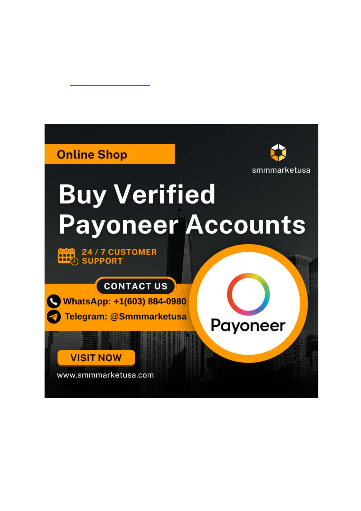 Are you tired of the endless hassle of setting up a Payoneer account? Do you want a quick and reliable solution to streamline your online transactions? Buying a verified Payoneer account could be the game-changer you need. Imagine skipping the tedious verification process and diving straight into managing your finances efficiently. This article will guide you through the benefits of purchasing a verified Payoneer account, ensuring you make a smart and secure choice. Stay with us as we unveil how this can save you time and effort, allowing you to focus on what truly matters—growing your business and simplifying your financial dealings. If you need other information just contact us: we are online 24/7 hours Email: Smmmarketusa@gmail.com https://smmmarketusa.com/product/buy-verified-payoneer-accounts/ WhatsApp: +1(603) 884-0980 Telegram: @Smmmarketusa Importance Of Verified Payoneer Accounts Verified Payoneer accounts offer many benefits. They help in secure online transactions. Users can receive money from clients easily. This is important for freelancers and businesses. Verified accounts add a level of trust. Clients feel safe sending payments. This can lead to more business opportunities. Account verification reduces risks. It prevents fraud and unauthorized access. This keeps your money safe. Additionally, users can withdraw funds to local bank accounts. This makes it easy to access money anytime. Creating a verified account is simple. The process involves submitting identification documents. This ensures your account is genuine. It is crucial for financial security. Verified accounts can handle larger transactions. This is useful for growing businesses. Having a verified account can enhance your professional image. It shows reliability to clients and partners. Overall, a verified Payoneer account is a valuable tool. It helps manage and grow your online finances effectively. Benefits Of Using Payoneer Payoneer lets you send and receive money easily. It is safe and fast. Many people use it for international payments. You can pay for stuff online with it. It works in over 200 countries. It supports many currencies. This makes it handy for global business. With Payoneer, you can save money on fees. It is cheaper than other payment services. You can also get a free Mastercard. This card lets you withdraw cash from ATMs. It is useful for traveling. Payoneer is great for freelancers and small companies. Risks Of Unverified Accounts Unverified accounts can be a big problem. They may face sudden account suspensions. This can cause delays in transactions. Security risks are also higher. Hackers find these accounts easy targets. Money in an unverified account is not safe. Support services may not help with unverified issues. This can lead to more stress and frustration. Transaction limits are often lower. Users may struggle with big payments. Verifying an account offers peace of mind. It's smart to use verified accounts for business. Protect your hard-earned money. Avoid these risks with a verified account. If you need other information just contact us: we are online 24/7 hours Email: Smmmarketusa@gmail.com WhatsApp: +1(603) 884-0980 Telegram: @Smmmarketusa https://api.whatsapp.com/send/?phone=16038840980&text&type=phone_number&app_absent=0 https://t.me/smmmarketusa https://smmmarketusa.com/product/buy-verified-payoneer-accounts/ https://api.whatsapp.com/send/?phone=16038840980&text&type=phone_number&app_absent=0 https://t.me/smmmarketusa How To Identify Verified Accounts Verified accounts have a blue checkmark. It shows authenticity. Payoneer accounts should have clear profiles. Names and photos must match documents. Check the account creation date. Older accounts are often more reliable. Look for transaction history. A detailed history adds trust. Customer reviews are important. They tell a lot about the account. Verified accounts often show contact details. This includes phone numbers or emails. Support options are available. Verified accounts offer better security. They protect your money and data. Be cautious with accounts lacking these features. Ask questions if unsure. Remember, verification means trust. Secure Payment Processing Buying a verified Payoneer account can be smart. These accounts offer safe and reliable payment options. Many people use them for online shopping and money transfers. They help in keeping your financial details secure. Payoneer accounts are used worldwide. This means you can send money to many places. It is easy to use and fast. With a verified account, there is less risk of fraud. This is important for anyone who buys or sells online. Always make sure you are buying from a trusted source. This helps in keeping your money safe. Effortless Account Management Managing accounts can be simple and easy. Verified Payoneer accounts offer a smooth experience. Users enjoy safe and secure transactions. Every step is clear and direct. No hidden fees confuse users. Efficient customer support is always ready to assist. The interface is user-friendly and simple to navigate. Funds can be transferred quickly and securely. Instant notifications keep users informed about activities. This ensures users are always aware of their account status. Multiple currency options are available for global transactions. This makes it easy for users to pay and get paid worldwide. Regular updates ensure the system runs smoothly. Steps To Purchase Verified Accounts Verified Payoneer accounts offer safety and trust. They help in smooth transactions. Always ensure the account is truly verified. Verified means the account has passed checks. It is safe to use. Search for sellers with good feedback. Check their reviews online. Trust sellers with many positive reviews. Avoid sellers with bad ratings. They may not be reliable. https://smmmarketusa.com/product/buy-verified-payoneer-accounts/ Examine the account details carefully. Ensure the information matches what you need. Double-check the verification
