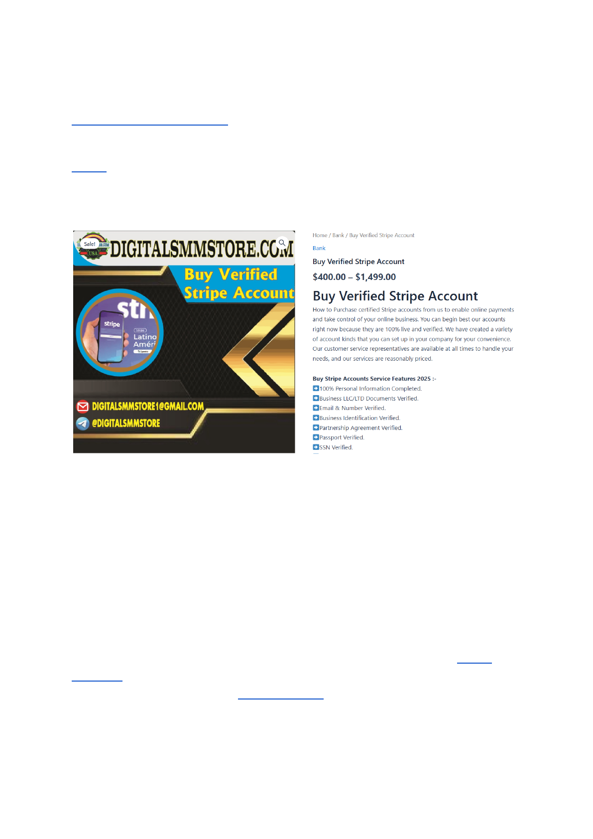 Why.. Your Business Needs a Verified Stripe Account 5412 Buy Verified Stripe Account: A Comprehensive Guide for Seamless Transactions Stripe stands out as a top platform for processing online payments. Having a verified account is key for any business, small or large. It lets you accept money from customers worldwide easily. Without proper verification, your business cannot truly grow online. If you want to more information just contact now. 24 Hours Reply/Contact Telegram: @digitalsmmstore WhatsApp: +1 (631) 6338-555 Email: digitalsmmstore1@gmail.com Many businesses hit roadblocks when setting up or proving their Stripe account. This can be a long process, sometimes holding back sales. For some, buying a pre-verified Stripe account seems like a quick way around these issues. It promises faster access to accepting payments. https://digitalsmmstore.com/product/buy-verified-stripe-account/ https://digitalsmmstore.com/product/buy-verified-stripe-account/ https://digitalsmmstore.com/product/buy-verified-stripe-account/ https://digitalsmmstore.com/product/buy-verified-stripe-account/ https://digitalsmmstore.com/product/buy-verified-stripe-account/ This article guides you through the process of buying a verified Stripe account. We will look at its benefits and important things to think about. You will learn the best ways to keep your business safe while making smart choices. If you want to more information just contact now. 24 Hours Reply/Contact Telegram: @digitalsmmstore WhatsApp: +1 (631) 6338-555 Email: digitalsmmstore1@gmail.com The Advantages of Using a Verified Stripe Account Streamlined Payment Processing A verified Stripe account makes accepting payments much smoother. You can expect fewer issues and almost no delays. Your funds get to you faster, which is great for cash flow. This also lowers the chance of your account being put on hold. Businesses often find this helps their daily operations run without a hitch. https://www.youtube.com/watch?v=BqcxAAMrMh4 https://digitalsmmstore.com/product/buy-verified-stripe-account/ https://www.youtube.com/watch?v=BqcxAAMrMh4 Enhanced Credibility and Trust Having a verified account shows customers you are a real business. It builds trust, both with shoppers and banks. People feel safer buying from a store they know is legitimate. This trust can lead to more sales and a better reputation. A strong, verified presence makes a big difference. Buy Stripe Accounts Service Features 2025 :- 100% Personal Information Completed. Business LLC/LTD Documents Verified. Email & Number Verified. Business Identification Verified. Partnership Agreement Verified. Passport Verified. SSN Verified. Active Account. Instant Withdrawal. Fast Delivery & Use Immediately. 24/7 Customer Support. Access to Advanced Features and Higher Limits Verification unlocks many powerful tools on Stripe. You gain access to features that improve your payment system. Your account limits for transactions and payouts also tend to go up. This means you can handle more sales and move larger amounts of money. More advanced tools help your business scale up. What to Look for When Buying a Verified Stripe Account Seller Reputation and Reliability Choosing a seller with a good name is very important. You want to pick someone known for being honest and reliable. Always look for reviews and testimonials from other buyers. A seller with a long history in the market is often a safer choice. Take time to check them out on trusted forums and review sites before any deal. Telegram: @digitalsmmstore WhatsApp: +1 (631) 6338-555 Email: digitalsmmstore1@gmail.com Account Verification Status and Documentation A "verified" Stripe account means all the necessary checks are complete. This usually includes proof of identity and business details. You should expect the seller to provide copies of documents used for verification. This might be a passport, utility bill, or business registration papers. Make sure these match what Stripe requires for full account status. Account History and Compliance An account's past can tell you a lot. Accounts with old problems, like many chargebacks, carry big risks. Ask about the account's past usage and how well it followed Stripe's rules. For example, an account previously flagged for suspicious activity could get suspended again. Knowing its history helps you avoid future trouble. The Process of Acquiring a Verified Stripe Account Finding a Trusted Vendor Finding a reliable source for a Stripe account takes a little effort. You can look at special online marketplaces or work with agencies known for this service. Some trusted people act as go-betweens, helping connect buyers https://digitalsmmstore.com/product/buy-verified-stripe-account/ https://digitalsmmstore.com/product/buy-verified-stripe-account/ https://www.youtube.com/watch?v=BqcxAAMrMh4 https://digitalsmmstore.com/product/buy-verified-stripe-account/ https://digitalsmmstore.com/product/buy-verified-stripe-account/ https://digitalsmmstore.com/product/buy-verified-stripe-account/ and sellers. Always do your research to find a vendor who has a good track record. Secure Transaction and Handover A safe purchase protects both your money and your information. Use payment methods that offer buyer protection. Consider using escrow services; they hold funds until you get the account safely. Make sure all account details are passed on in a secure way. Vendors offering secure payment gateways often provide more peace of mind. Initial Account Setup and Integration Once you have the account, you need to set it up for your business. Link your bank details for payouts right away. Then, add your products or services to the Stripe dashboard. Do some small test payments to ensure everything works correctly. This helps you smoothly bring the new account into your current business flow. Potential Risks and How to Mitigate Them Compliance with Stripe's Terms of Service Buying or selling Stripe accounts can go against Stripe's rules. Their o