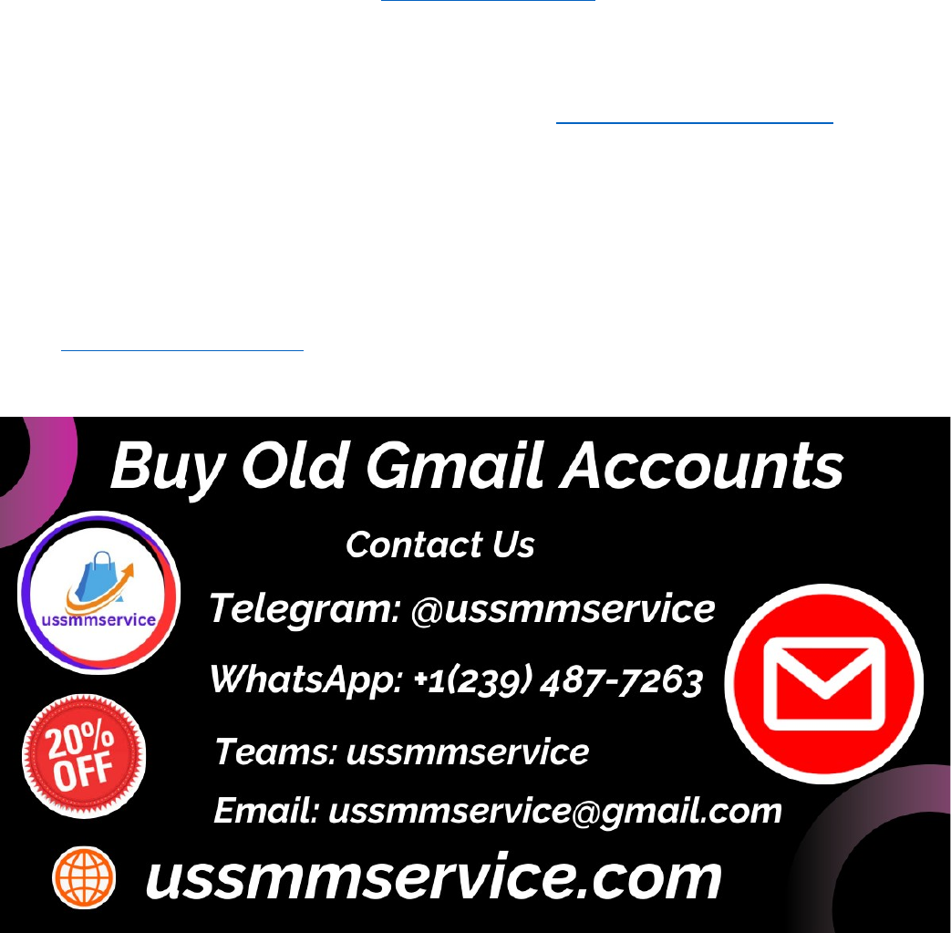 Purchase Old Gmail Accounts – Safe, Verified & Secure in the USA In the digital world, having access to an old, verified Gmail account can offer numerous benefits, especially for businesses, marketers, and individuals looking to establish credibility online. In the USA, the demand for aged Gmail accounts has steadily increased due to their reputation for being more trustworthy, secure, and less likely to trigger security flags on platforms like Google Ads, YouTube, and other online services. Purchasing old Gmail accounts can be a smart move—if done safely and responsibly. 24/7 customer service. Telegram: @ussmmservice WhatsApp: +1 (239) 487-7263 Email: ussmmservice@gmail.com Why Buy Old Gmail Accounts? Older Gmail accounts are considered more reliable than newly created ones. These accounts have a longer history and are often “warmed up,” meaning they’ve been in use for a while and are less likely to be flagged or banned by Google. This makes them ideal for marketers, advertisers, and entrepreneurs who want to bypass restrictions that are often placed on new accounts. 24/7 customer service. Telegram: @ussmmservice WhatsApp: +1 (239) 487-7263 Email: ussmmservice@gmail.com For example, businesses running Google Ads prefer old accounts because they’re less likely to be suspended during campaigns. Similarly, social media managers and content creators use old Gmail accounts to open and manage multiple YouTube channels without being flagged for spam or suspicious activity. Key Benefits of Old, Verified Gmail Accounts 1. Increased Trust & Deliverability: Emails sent from older accounts are more likely to land in inboxes instead of spam folders. This is essential for email marketers and outreach campaigns. 2. 24/7 customer service. 3. Telegram: @ussmmservice WhatsApp: +1 (239) 487-7263 Email: ussmmservice@gmail.com 4. Reduced Verification Hurdles: Verified accounts—those with phone numbers and recovery options added—are more secure and trusted by Google, reducing the chances of forced re-verification or account suspension. 5. Improved Platform Access: With an old Gmail account, users can easily access various Google services like Google Drive, Docs, Calendar, and YouTube without the typical restrictions that come with new accounts. 6. Enhanced Security: Verified Gmail accounts often come with two-factor authentication (2FA) and backup recovery options, offering better protection against unauthorized access. 7. 24/7 customer service. 8. Telegram: @ussmmservice WhatsApp: +1 (239) 487-7263 Email: ussmmservice@gmail.com How to Purchase Safely 1. Buy from Trusted Sellers: Always purchase accounts from reputable sources that offer customer support and guarantee the authenticity of the accounts. 2. Check Verification Status: Make sure the Gmail account is phone-verified and has a recovery email added. 3. Ensure Clean History: The account should not be previously used for spamming, hacking, or any activity that could lead to suspension. 4. Secure the Transfer: Change all login credentials and update recovery options immediately after purchase. Conclusion Purchasing old Gmail accounts in the USA is a secure and practical option for those looking to enhance their online credibility and expand their digital operations. Verified and aged accounts provide better deliverability, access to Google services, and reduced risk of suspension. However, it's important to deal with trustworthy sellers and handle the transfer process securely to ensure long-term account usability and compliance. 24/7 customer service. Telegram: @ussmmservice WhatsApp: +1 (239) 487-7263 Email: ussmmservice@gmail.com image1.png image2.jpeg image3.png