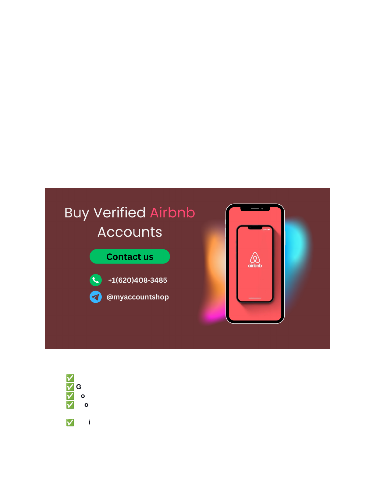 Buy Verified Airbnb Accounts for Guests and Hosts CONTACT US: WhatsApp:+1(620)408-3485 Telegram:@myaccountshop Airbnb has revolutionized travel and short-term rentals worldwide. Whether you are a guest looking for safe accommodations or a host wanting to manage properties efficiently, having a verified Airbnb account is essential. However, creating and verifying an Airbnb account can be challenging, especially for newcomers or international users. That’s why many people look to buy verified Airbnb accounts for guests and hosts. In this guide, we’ll explore why buying an account is beneficial, how to do it safely, and tips to make the process smooth. Why You Should Buy Verified Airbnb Accounts Buying a verified account has several advantages: ● ✅ Instant Access – No waiting for email or phone verification. ● ✅ Guest Safety – Verified accounts ensure secure bookings. ● ✅ Host Opportunities – Start listing properties immediately. ● ✅ Avoid Verification Issues – No delays caused by missing documents or country restrictions. ● ✅ Business-Friendly – Ideal for property managers or vacation rental companies. Whether you are a guest or a host, a verified account provides confidence and full access to Airbnb’s features. Benefits for Guests For travelers, verified Airbnb accounts offer: 1. Quick Booking – Skip verification steps and book accommodations faster. 2. Trust and Safety – Verified accounts are more likely to be accepted by hosts. 3. Access to Reviews and Recommendations – Use all of Airbnb’s social features without restrictions. 4. Seamless Communication – Contact hosts directly and securely. With a verified account, your travel experience becomes smooth, reliable, and secure. Benefits for Hosts For property owners or managers, verified Airbnb accounts allow: 1. Instant Listing Activation – Start listing properties immediately. 2. Enhanced Credibility – Guests trust verified hosts more. 3. Full Access to Features – Manage bookings, payments, and reviews without limitations. 4. Business Growth – Expand your Airbnb portfolio faster with a ready-to-use account. A verified account ensures that hosting operations run efficiently and professionally. How to Buy Verified Airbnb Accounts Safely 1. Choose a Trusted Seller ● Look for reviews and ratings. ● Ensure the seller provides verified, active accounts. ● Avoid unknown platforms or social media offers. 2. Check Verification Status ● Confirm that the account is verified by Airbnb. ● Ensure all recovery options, emails, and phone numbers are included. ● Ask for screenshots or proof if necessary. 3. Secure Your Account ● Change the password immediately after purchase. ● Enable two-factor authentication (2FA). ● Update personal details and recovery information. 4. Avoid Free Accounts Free accounts often come with risks: suspended status, fake emails, or stolen information. Always buy verified accounts from reputable sellers to avoid losing money or access. 5. Test the Account ● Log in and verify you can access all features. ● Check messaging, booking, and listing options (if hosting). ● Ensure Airbnb recognizes the account as verified. Tips for Guests and Hosts ● Guests: Always use your account for bookings and reviews responsibly. Verified accounts increase acceptance chances with hosts. ● Hosts: Update listings and contact information after purchase. Maintain a good response rate to enhance Airbnb credibility. ● Security: Never share your purchased account with others. Use it exclusively to prevent complications. Frequently Asked Questions Q1: Is it legal to buy Airbnb accounts? A1: Yes, if the account is legitimate and verified. Avoid accounts that are stolen or hacked. Q2: Can I change personal information on a purchased account? A2: Yes, after securing the account, update emails, phone numbers, and payment details. Q3: Can foreigners buy verified Airbnb accounts? A3: Absolutely. Buying verified accounts helps bypass verification issues for international users. Q4: How do I ensure the account is safe? A4: Change passwords, enable 2FA, and avoid sharing the account. Buy only from reputable sources. Conclusion Whether you are a guest or a host, buying verified Airbnb accounts offers a fast, reliable, and secure solution for accessing Airbnb services. With a verified account, guests can book accommodations quickly, and hosts can start listing properties immediately without facing verification delays. By purchasing from trusted sources and following security practices, you can enjoy a hassle-free Airbnb experience. Buying verified Airbnb accounts is the smartest way to save time, avoid issues, and maximize opportunities on the platform. Buy Verified Airbnb Accounts for Guests and Hosts Why You Should Buy Verified Airbnb Accounts Benefits for Guests Benefits for Hosts How to Buy Verified Airbnb Accounts Safely 1. Choose a Trusted Seller 2. Check Verification Status 3. Secure Your Account 4. Avoid Free Accounts 5. Test the Account Tips for Guests and Hosts Frequently Asked Questions Conclusion