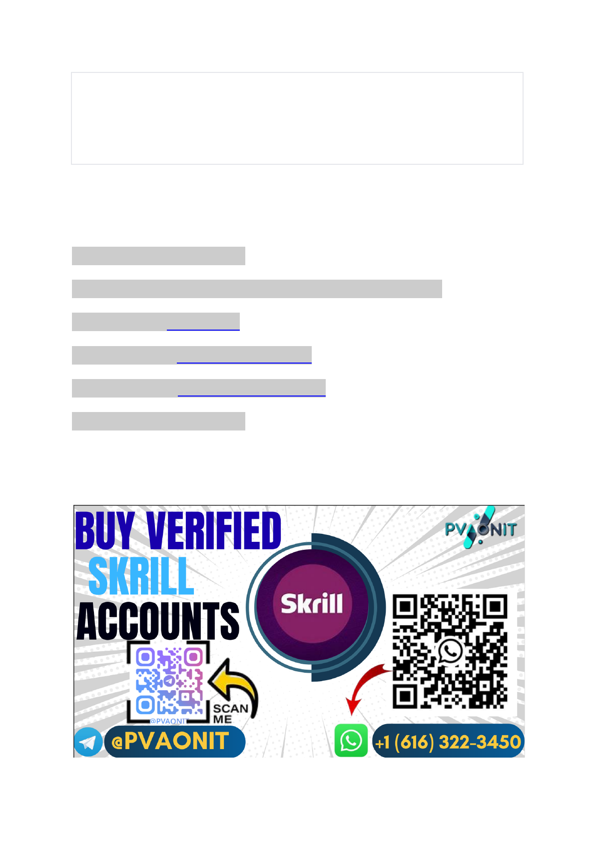 Buy Old Verified Skrill Accounts With Transaction History (Aged): Secure & Reliable Deals Are you looking to buy old verified Skrill accounts with transaction history that truly make a difference? Having an aged Skrill account with a solid transaction record can open doors to smoother online transactions, better credibility, and faster access to services. — — — — — — — — — — ➤If you want to more information just knock us– ➤Telegram: @pvaonit ➤WhatsApp: +1 (616) 322–3450 ▣Website link:https://pvaonit.com — — — — — — — — — — But finding reliable, verified accounts with genuine activity isn’t always easy. What if you could get Skrill accounts that come with verified activity, positive balances, and a long history—all ready for instant use? You’ll discover how buying aged Skrill accounts with transaction logs can boost your business, e-commerce ventures, or marketing efforts. https://t.me/Pvaonit https://api.whatsapp.com/send?phone=16163223450 https://pvaonit.com Stay with us, and learn how to secure authentic, trusted Skrill accounts that fit your needs perfectly. Buy Aged Skrill Accounts Fast Buying aged Skrill accounts with transaction history can save time and effort for those needing a ready-to-use account. These accounts have been active for a long time, making them more trusted and less likely to face restrictions. Having a verified status means the account is fully checked and ready for use. This can be useful for online payments, business transactions, or other financial activities. Accounts with a history of transactions show reliability and make it easier to carry out future payments. Fast delivery of these accounts helps users start their work quickly. Choosing the right seller ensures the account is safe and legitimate. This way, users avoid the hassle of creating and verifying new accounts from scratch. Aged Skrill accounts with transaction history offer a simple and quick solution for anyone needing a reliable online payment method. Purchase Verified Skrill Accounts Verified Skrill accounts with transaction history offer a reliable way to manage online payments. These accounts have been used before, which means they come with a history showing real activity. This makes them more trusted by many websites and services. Buying an aged account can save time compared to creating a new one from scratch. It also helps avoid the waiting period for verification. These accounts are useful for people who want to start using Skrill quickly and smoothly. Each account is checked to ensure it works properly and meets security standards. Having a verified account reduces the chance of problems during transactions. This can be important for those who use Skrill for business or regular payments. Choosing an account with a solid history can bring peace of mind and make online money transfers easier. Buy Aged Skrill Accounts Online Aged Skrill accounts with transaction history offer a trusted way to handle online payments. These accounts have been used over time, making them appear more reliable and less likely to be flagged for suspicious activity. Buying such accounts saves time compared to creating a new one and waiting for verification. They come with verified details, which means fewer chances of problems during transactions. Many people prefer these accounts for smoother money transfers and online purchases. Choosing an account with a good transaction record can help build confidence when using Skrill services. This option suits those who want a ready-to-use account without the usual waiting period. Old Skrill Accounts With Transaction History Old Skrill accounts with transaction history are valuable for many reasons. They show a history of activity, which can help build trust when using the account for payments or transfers. These accounts have been used before, so they are less likely to face restrictions or hold-ups. Having transaction history means the account has a track record, making it easier to use for different online services. People often prefer aged accounts because they seem more reliable. Buying such accounts can save time since setting up a new account and verifying it takes effort. With an old verified Skrill account, users can quickly start sending or receiving money without waiting for long verification processes. These accounts are ready to use and already linked to payment methods, which is helpful for smooth transactions. Reliable Skrill Accounts For Sale Old Skrill accounts with verified status and transaction history offer a trustworthy option for those needing established digital wallets. These accounts have been active for a long time, showing real activity and making them less likely to face restrictions. Buyers can benefit from the credibility that comes with aged accounts, which often pass verification checks more easily. Using accounts with a proven transaction record can save time and reduce risks, especially for users who want a smooth experience. Such accounts are ideal for various online payments and transfers, providing a reliable way to handle money digitally without starting from scratch. Choosing verified accounts means fewer surprises and more confidence in every transaction. Skrill Accounts With Positive Balance Owning a Skrill account with a positive balance can save time and effort. These accounts show a history of real transactions, making them reliable for immediate use. Users can benefit from the trust that comes with an aged account, as it often faces fewer restrictions. Transactions in the past prove the account’s activity, which helps in smoother payments and transfers. Such accounts are useful for people who want to start using Skrill quickly without waiting for verification or account approval. The balance included means funds are ready for spending or transferring, providing extra convenience. Choosing an account with a good transaction history can also reduce the risk of fraud or 